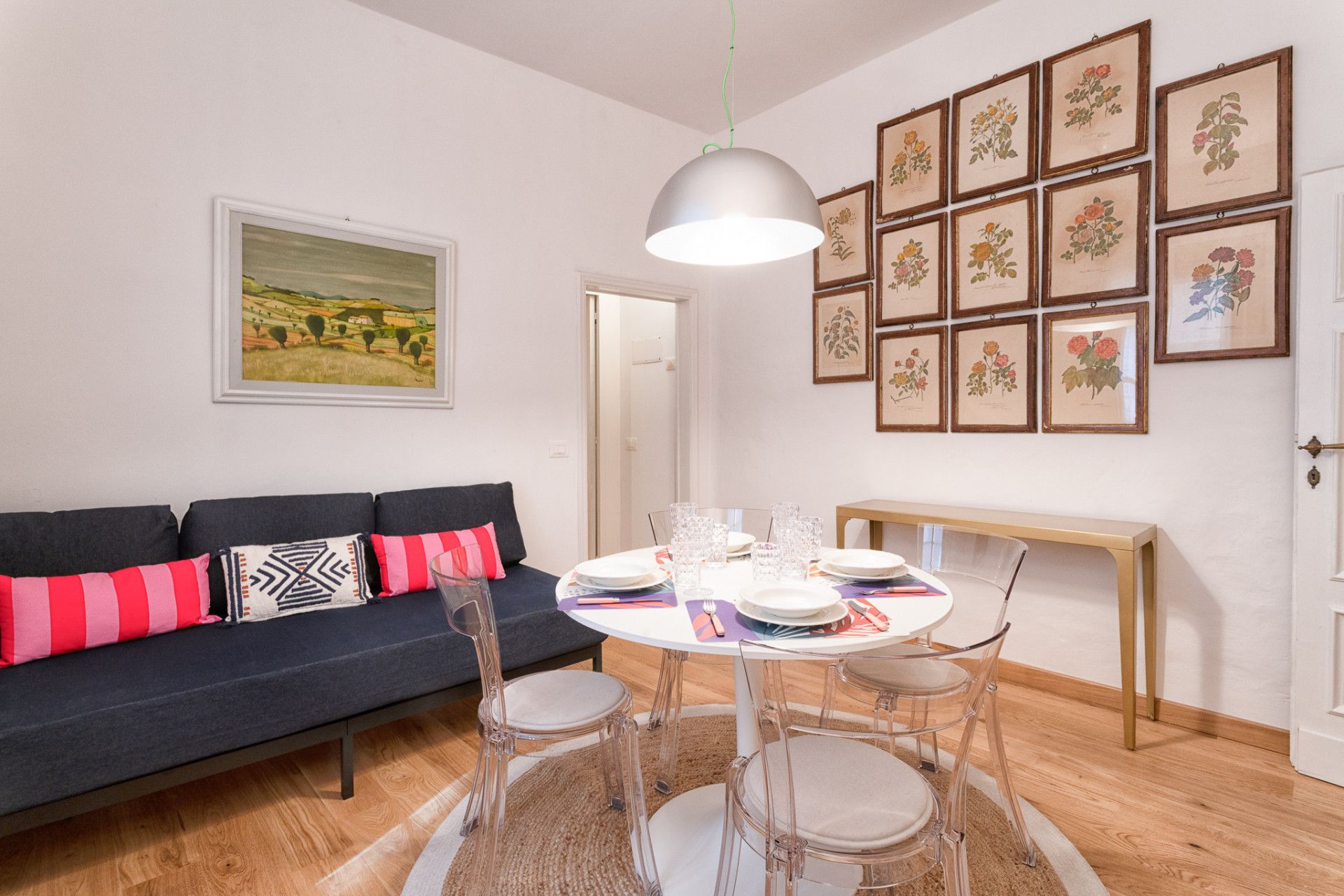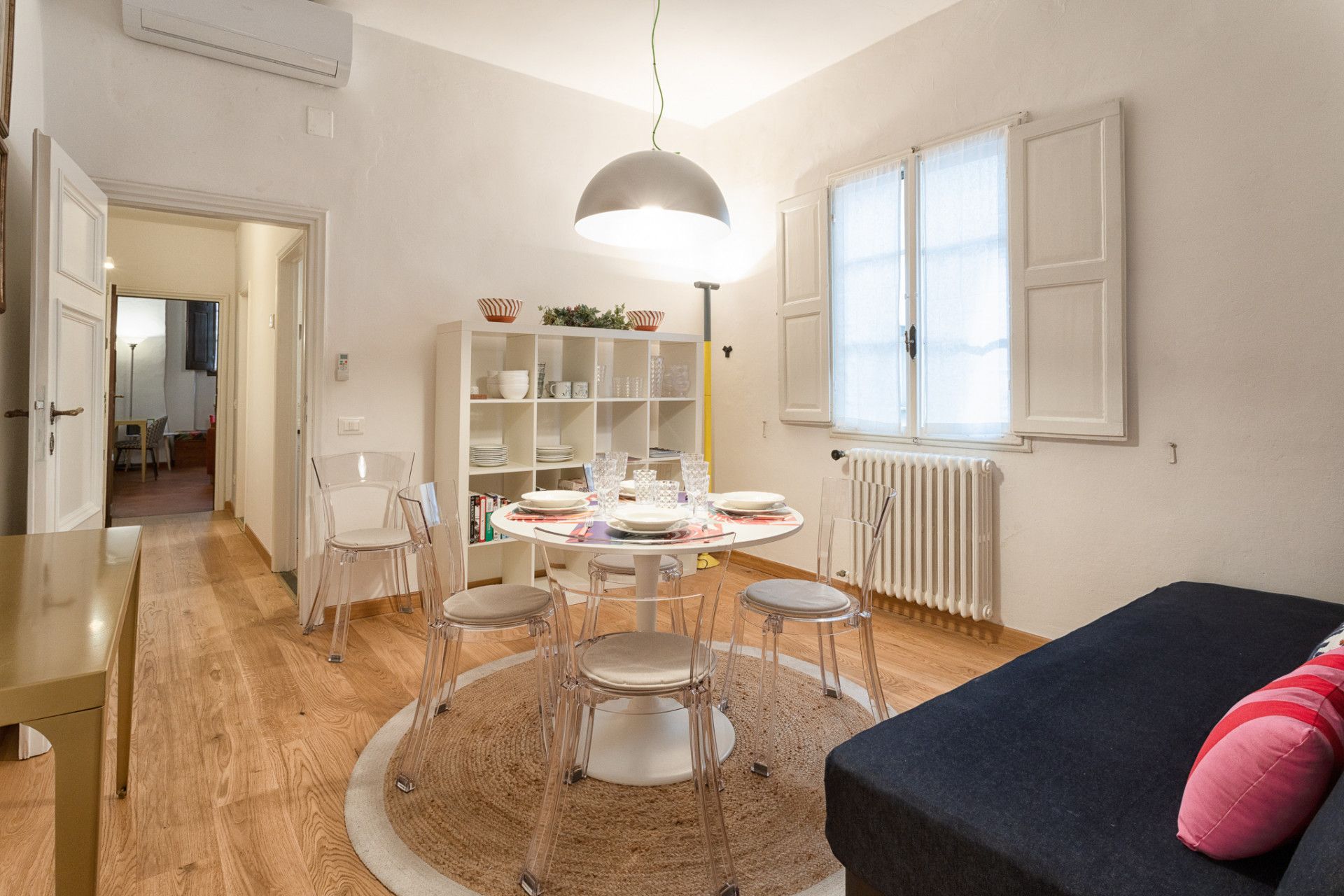 Located near Piazza della Passera and within a very short stroll of the Ponte Vecchio and Palazzo Pitti, this apartment has a fantastic address. Other places of interest within easy walking distance include the Uffizi Galleries, Museo Galileo and Palazzo Vecchio. There are a variety of shops, restaurants and cafes to explore here too. Back at the apartment housed in a historic building, there’s a living room and a dining room to relax in. One thing we should mention – one of the bedrooms is on a mezzanine level, with a fairly steep staircase. This home will suit guests looking for a prime location.