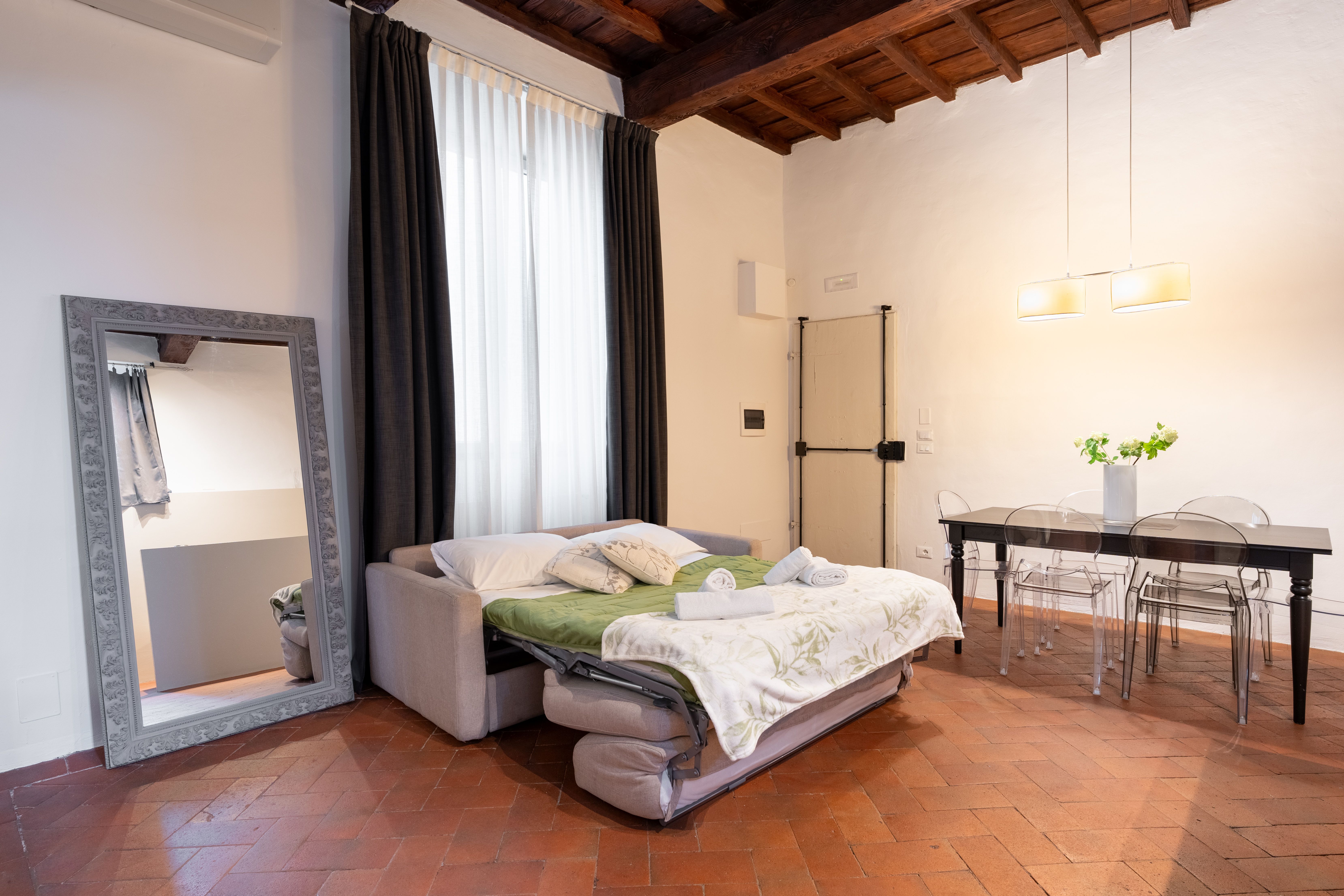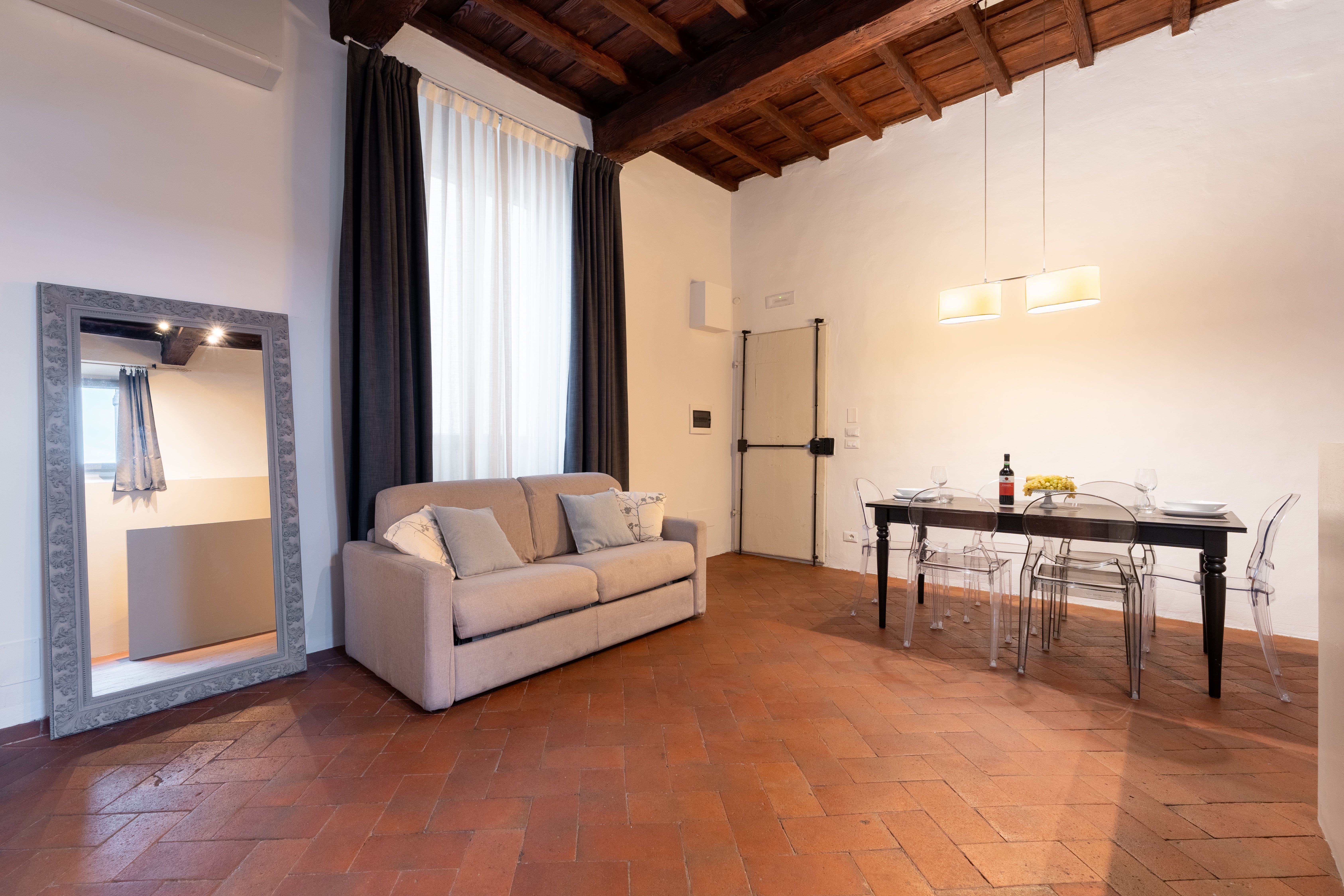 This fuss-free apartment is perfect for practical travellers. It's right near Santa Maria Novella station, so if you're arriving by train, you won't have to venture far. The design is a little simple, but we love the traditional wooden ceilings and terracotta floors. Just note that it's on the second floor of a walk-up building, and at full capacity, two guests will sleep on a sofa bed. When you're ready to start sightseeing, you'll find all the attractions within walking distance, from the red-domed Duomo to the art-filled Uffizi Galleries.