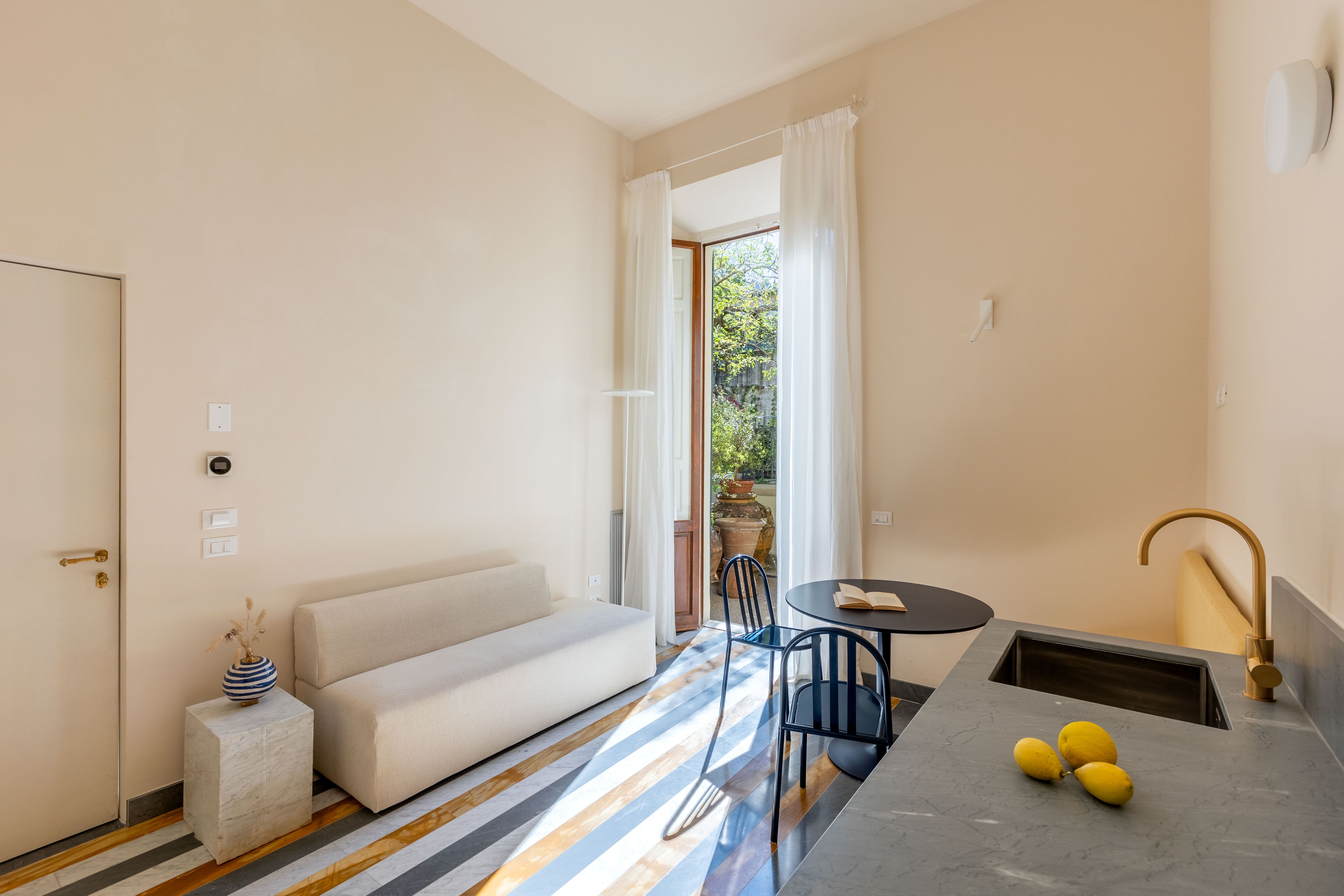This apartment is a short stroll from the Porta Romana and Boboli Gardens. The Palazzo Pitti and Florence city centre are also within walking distance. Set in a historic building, this home’s colourful interior of blues and ochres was created by a local designer. We love the private terrace surrounded by gardens filled with citrus and olive trees – it’s a great place to relax. This home is ideal for couples and solo travellers looking to stay away from the hustle and bustle of the city.