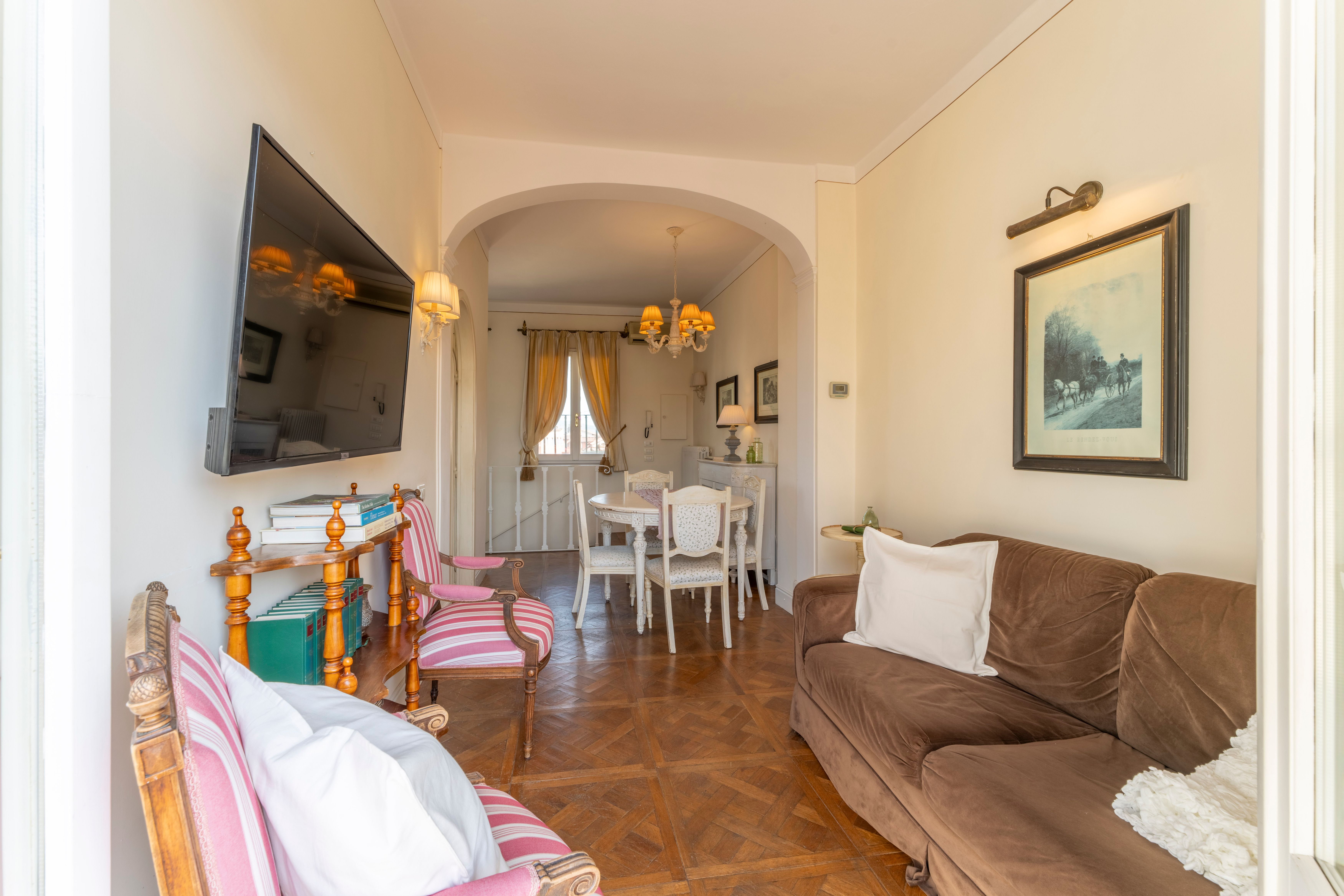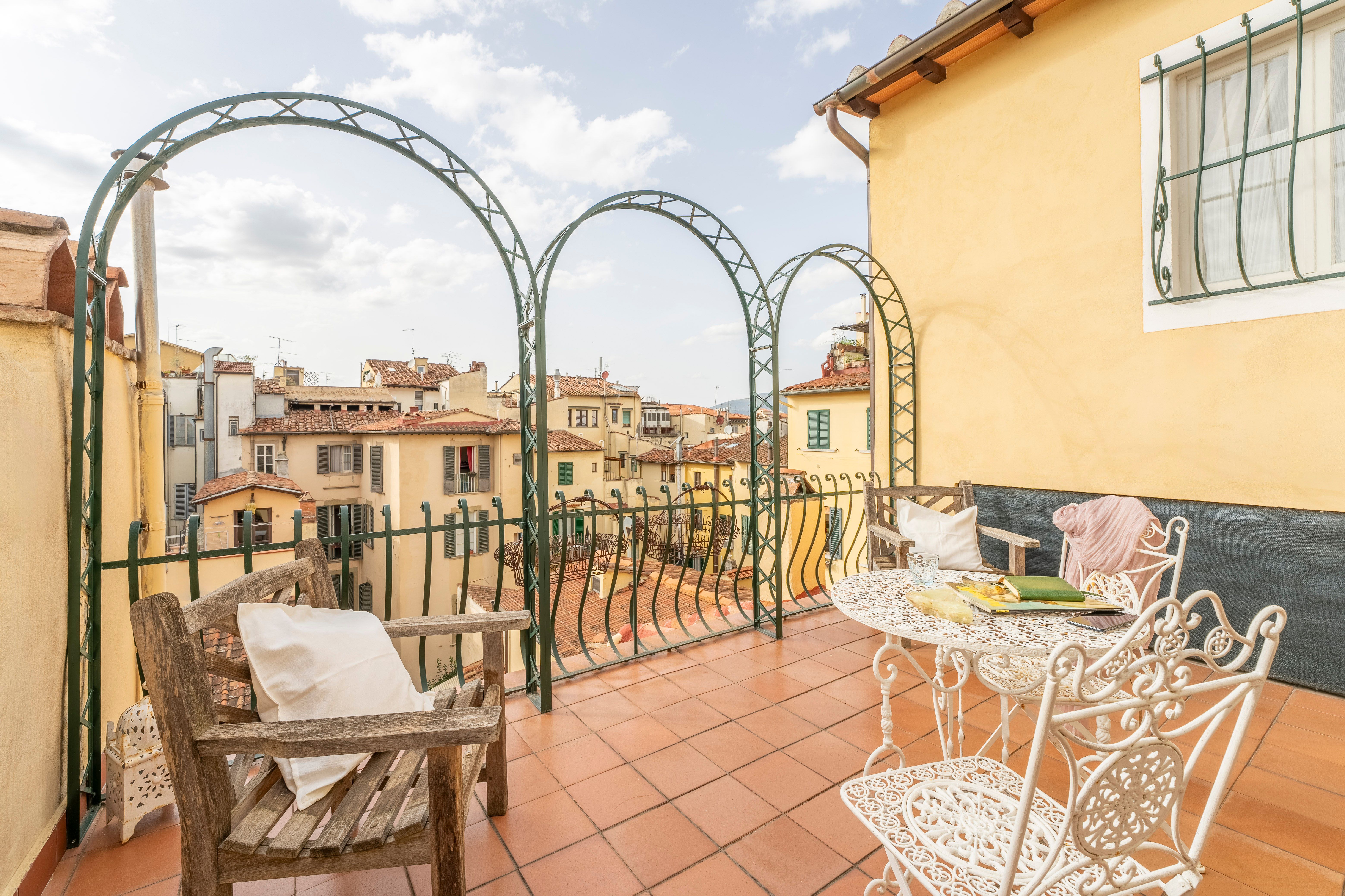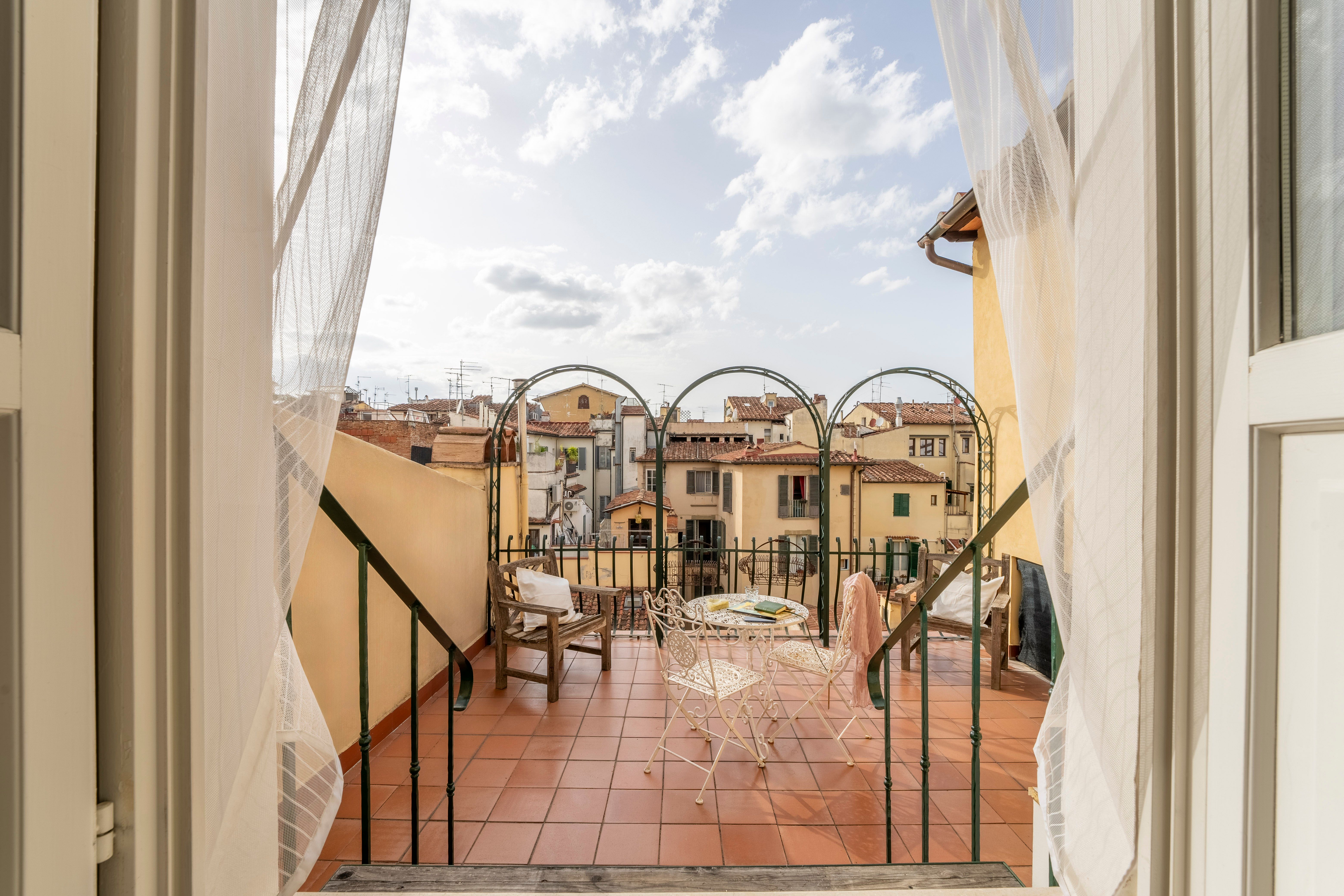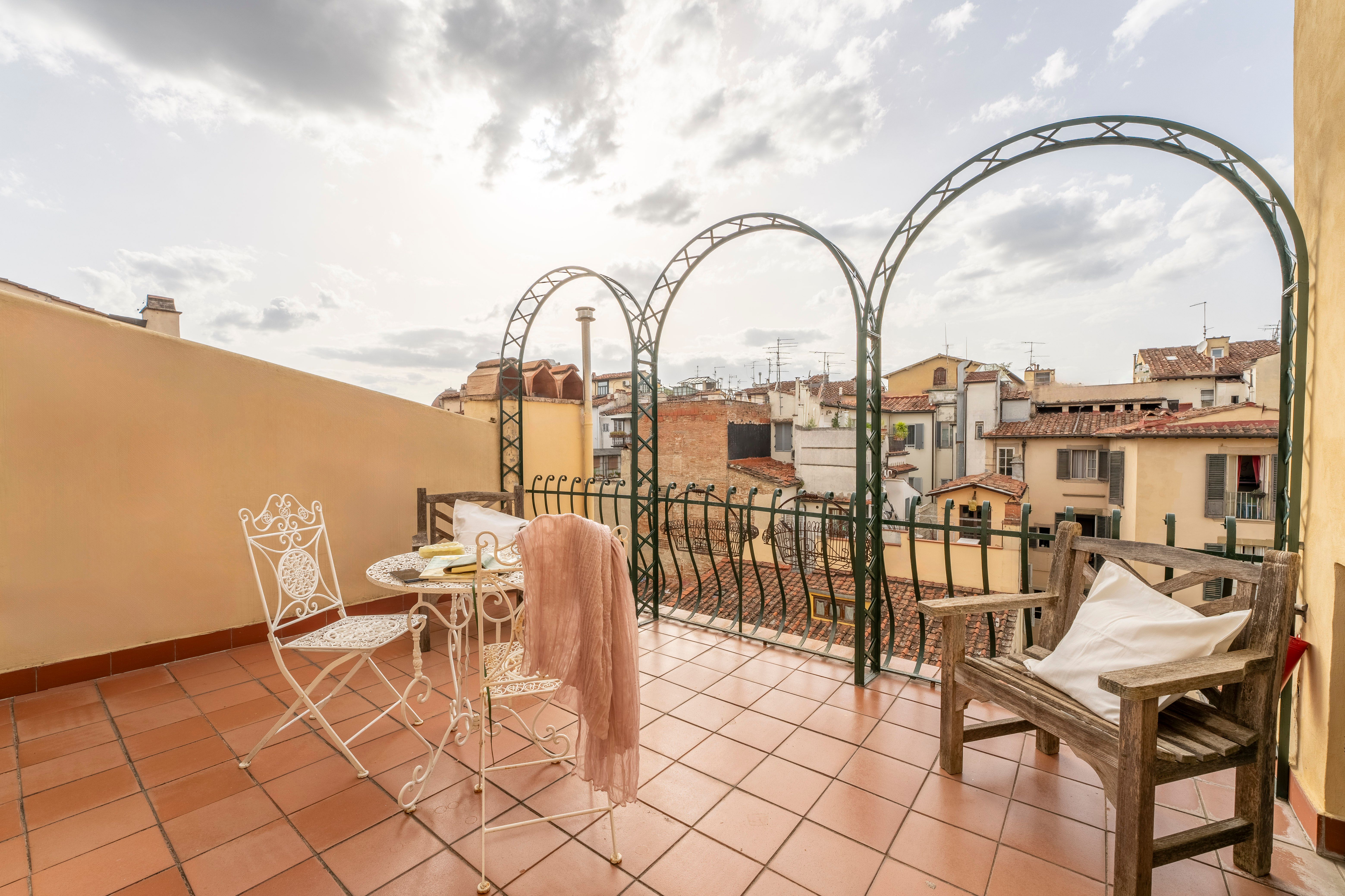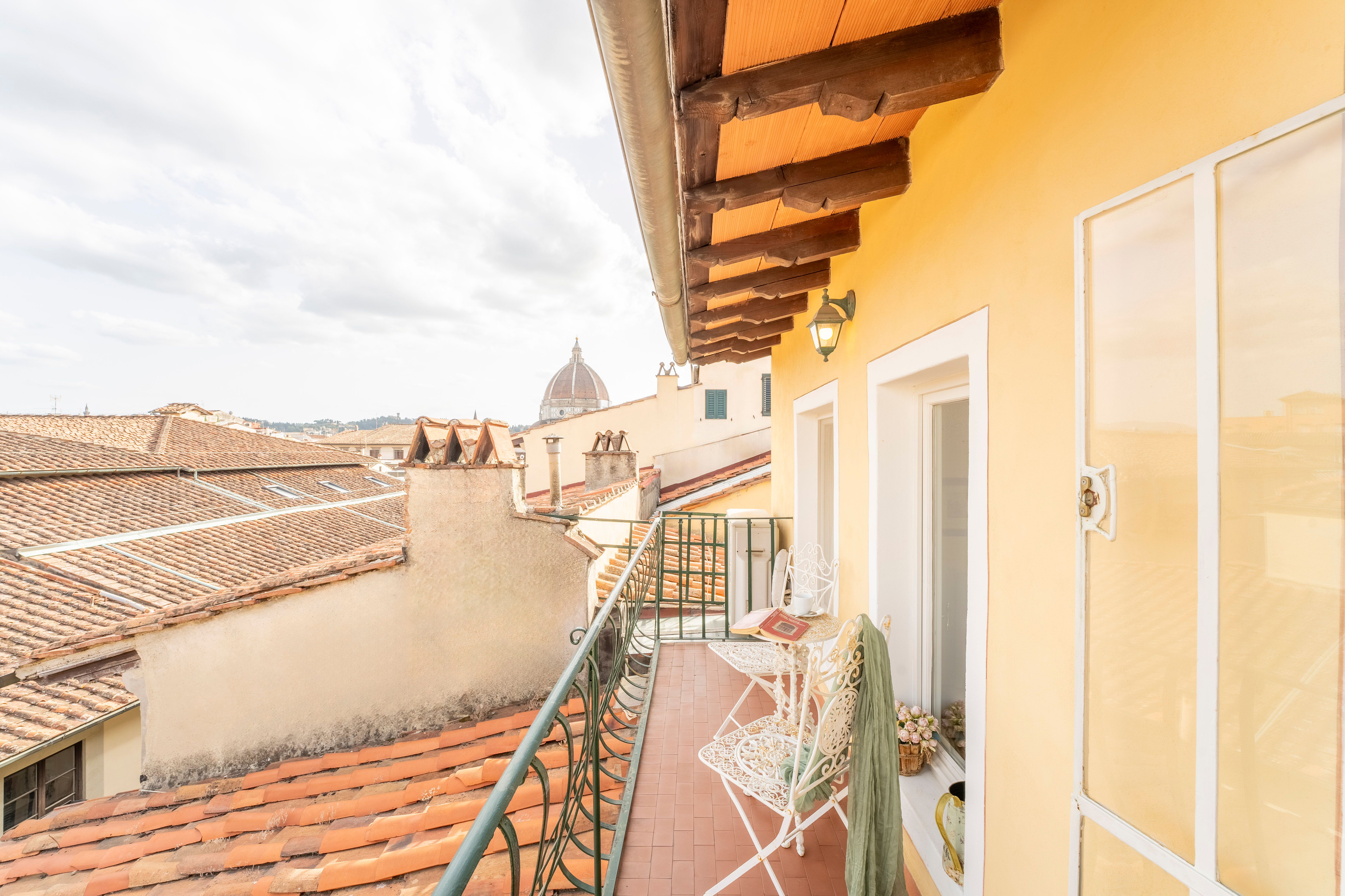 With views over the rooftops to Florence’s cathedral from the private balcony, this apartment has a special setting. There’s a larger terrace with more vistas over the city too. The traditionally styled living room sleeps one guest at full capacity on a comfy sofa bed – this place is ideal for a couple or family. The location is fantastic too – the home is set in one of the oldest streets in Florence, between the Cathedral of Santa Maria del Fiore and the Accademia Gallery. You’ll also be just a few steps away from Piazza della Signoria, the Uffizi, and many more of the city’s attractions.