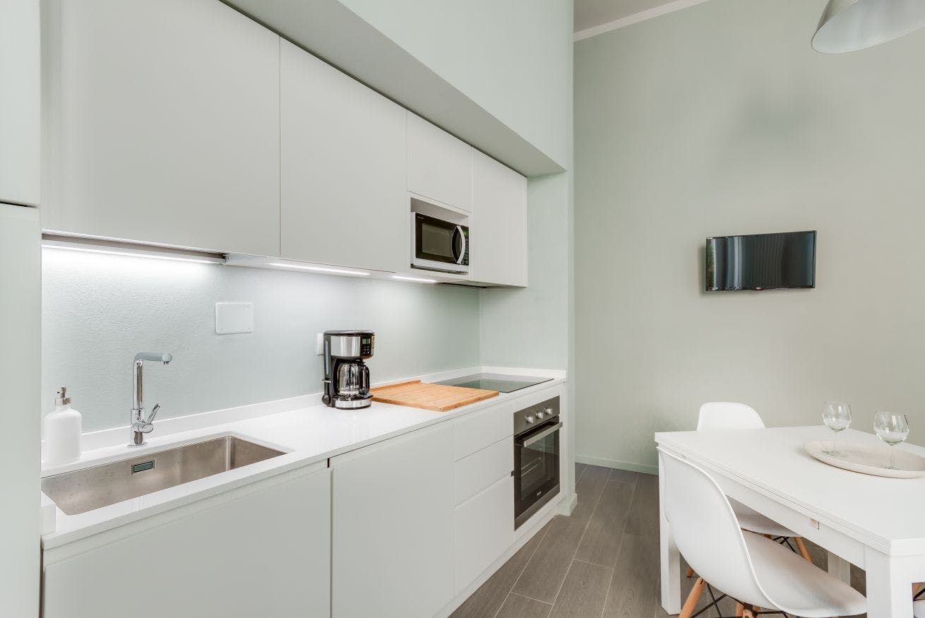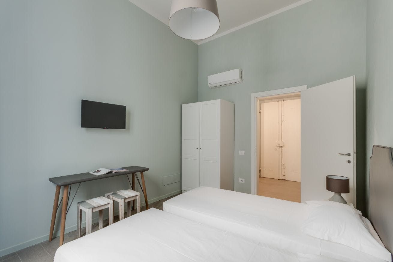 Home truths: *The terrace is divided into two sections by a hedge. The other area belongs to the neighbours. *At full occupancy, one person will be sleeping on a sofa bed in the living area. *The double bedroom is made up of two single beds pushed together. This is the bigger bedroom, so we think it's best for adults. *Given the home's central spot, expect to hear some noise throughout your stay. *You'll find laptop-friendly spaces for remote working here. *The entrance to this home is shared with the building's other residents. *This apartment can feel a little dark.