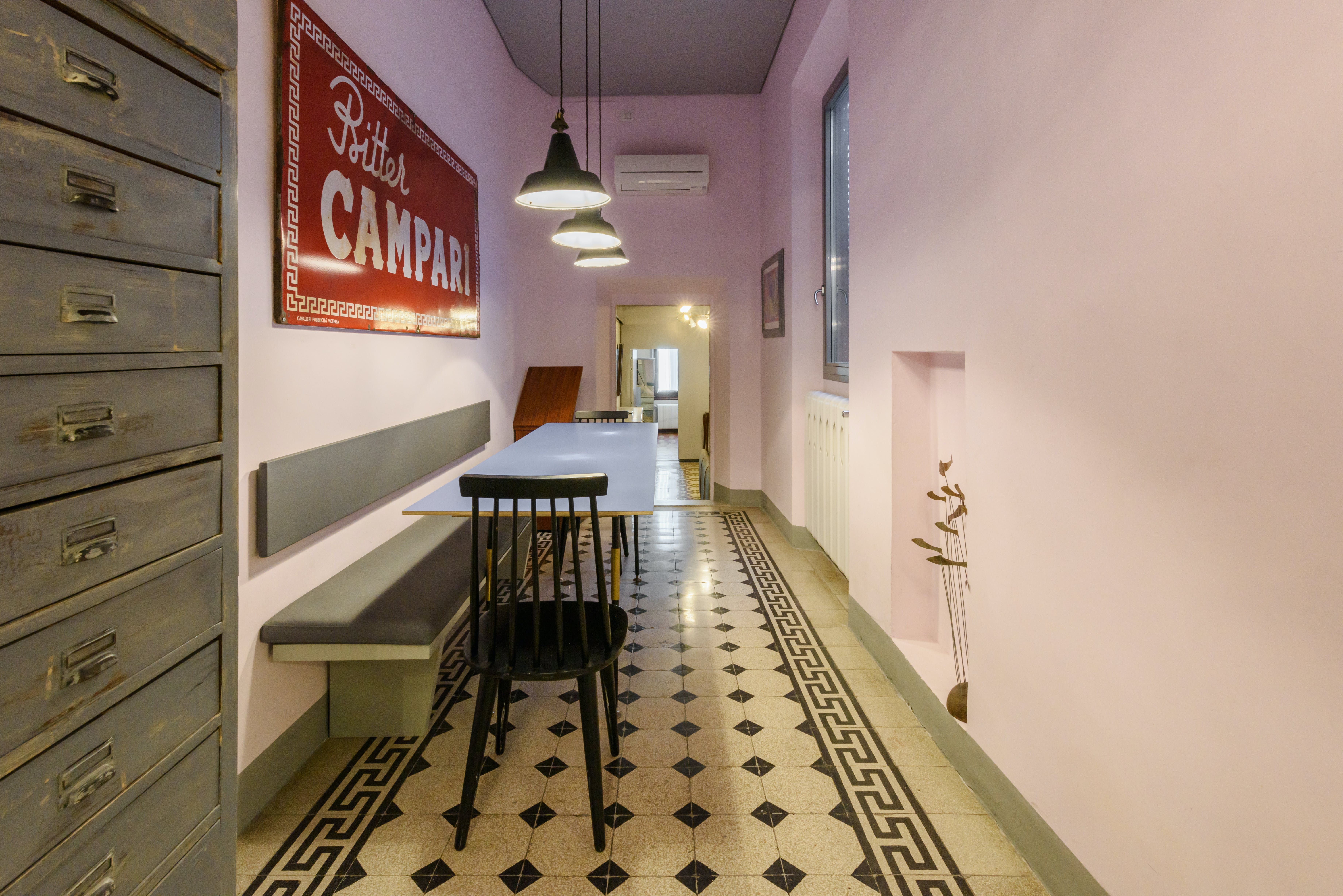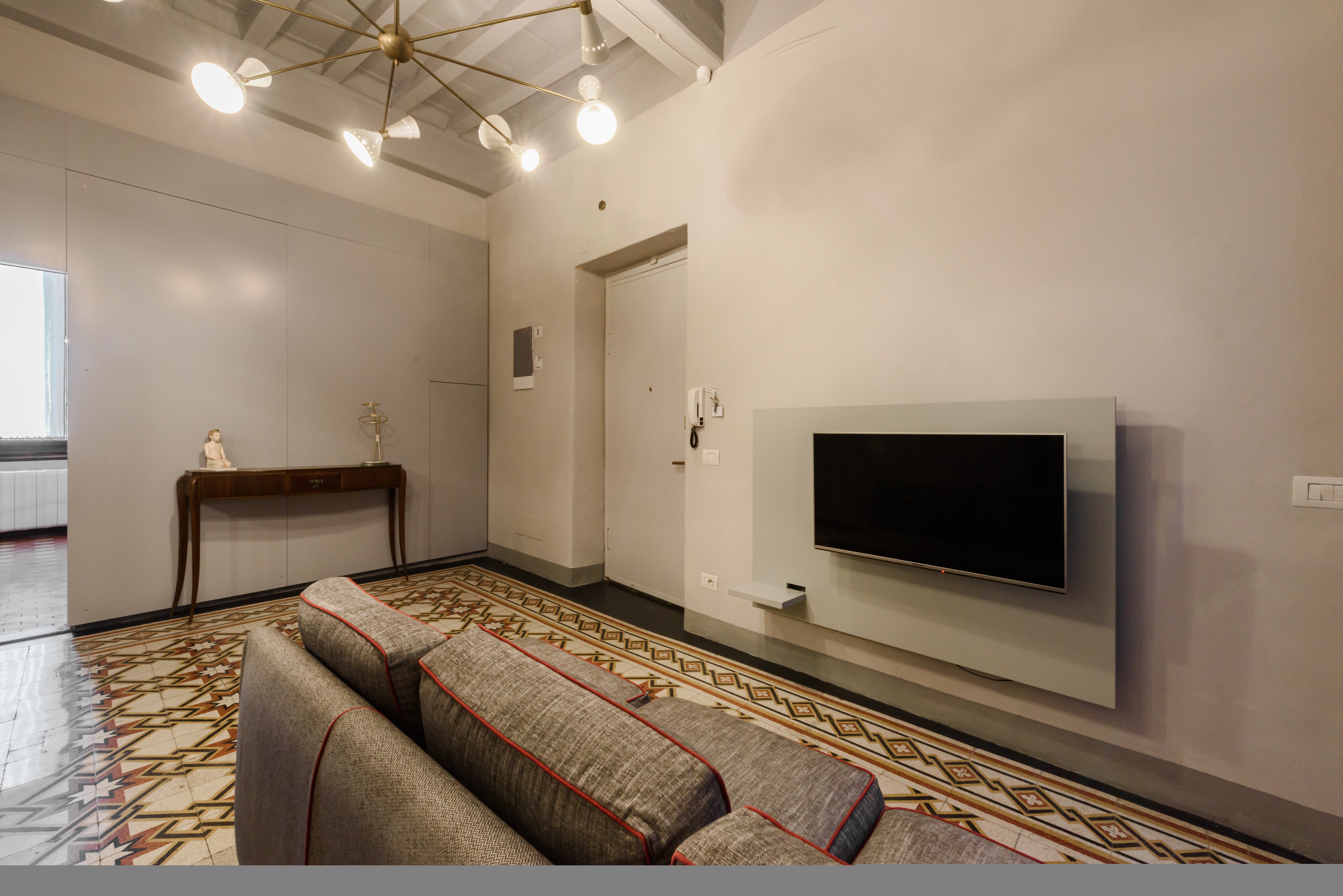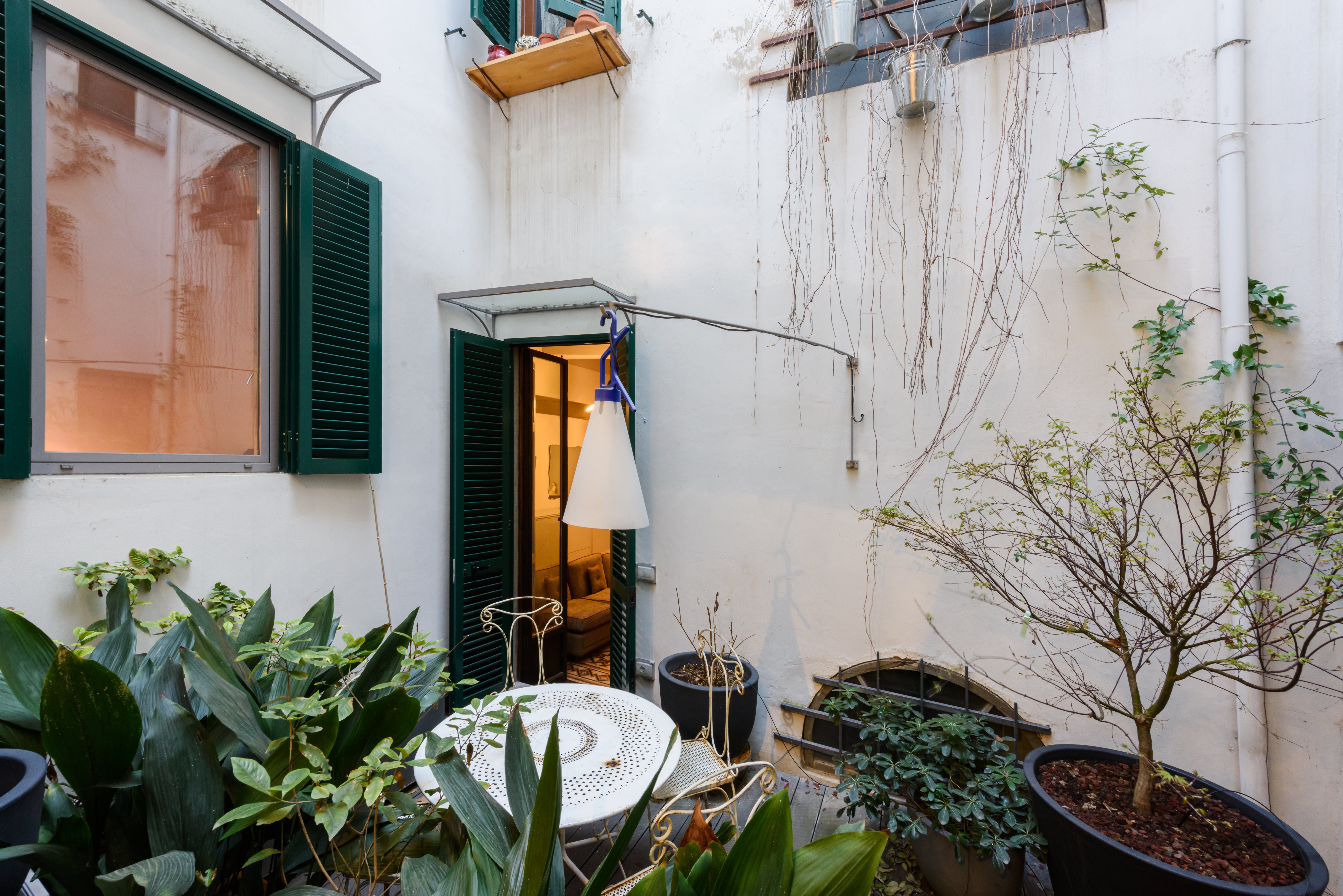 Stay in the heart of romantic Florence, steps from Piazza dei Ciompi, Piazza Santa Croce, and more. If a central location is your priority, then this apartment is an excellent choice. It’s not the cosiest space, with a bare living area lacking in homeliness. However, this won’t bother those visiting Florence on a city break, where sightseeing and eating in amazing restaurants take up most of your time. If you do eat at home, you’ll notice the dining table in the hallway – it’s a little quirky, but we’re fans of unique touches. Especially the tiled floors. The charming courtyard is a fantastic touch, too.
