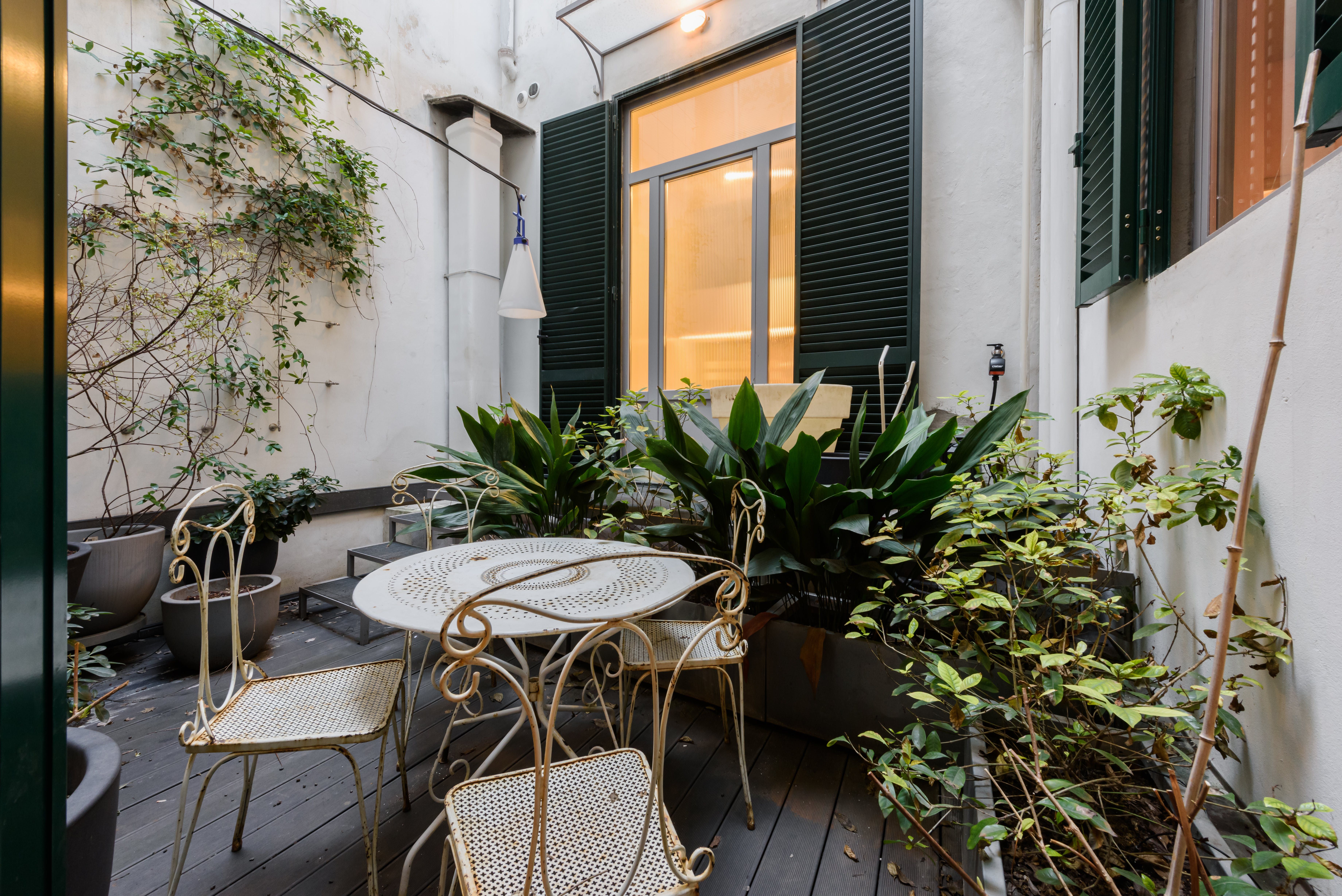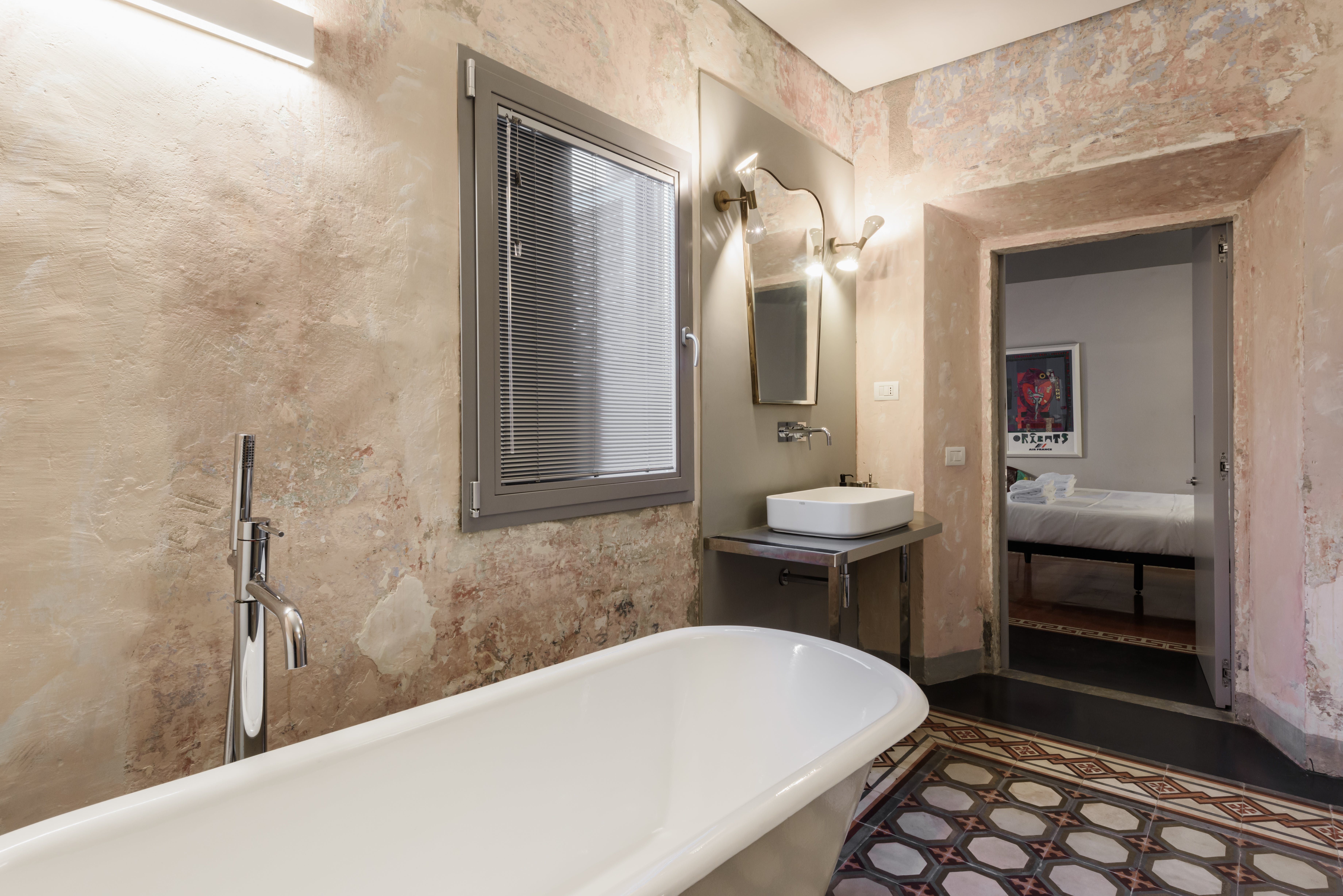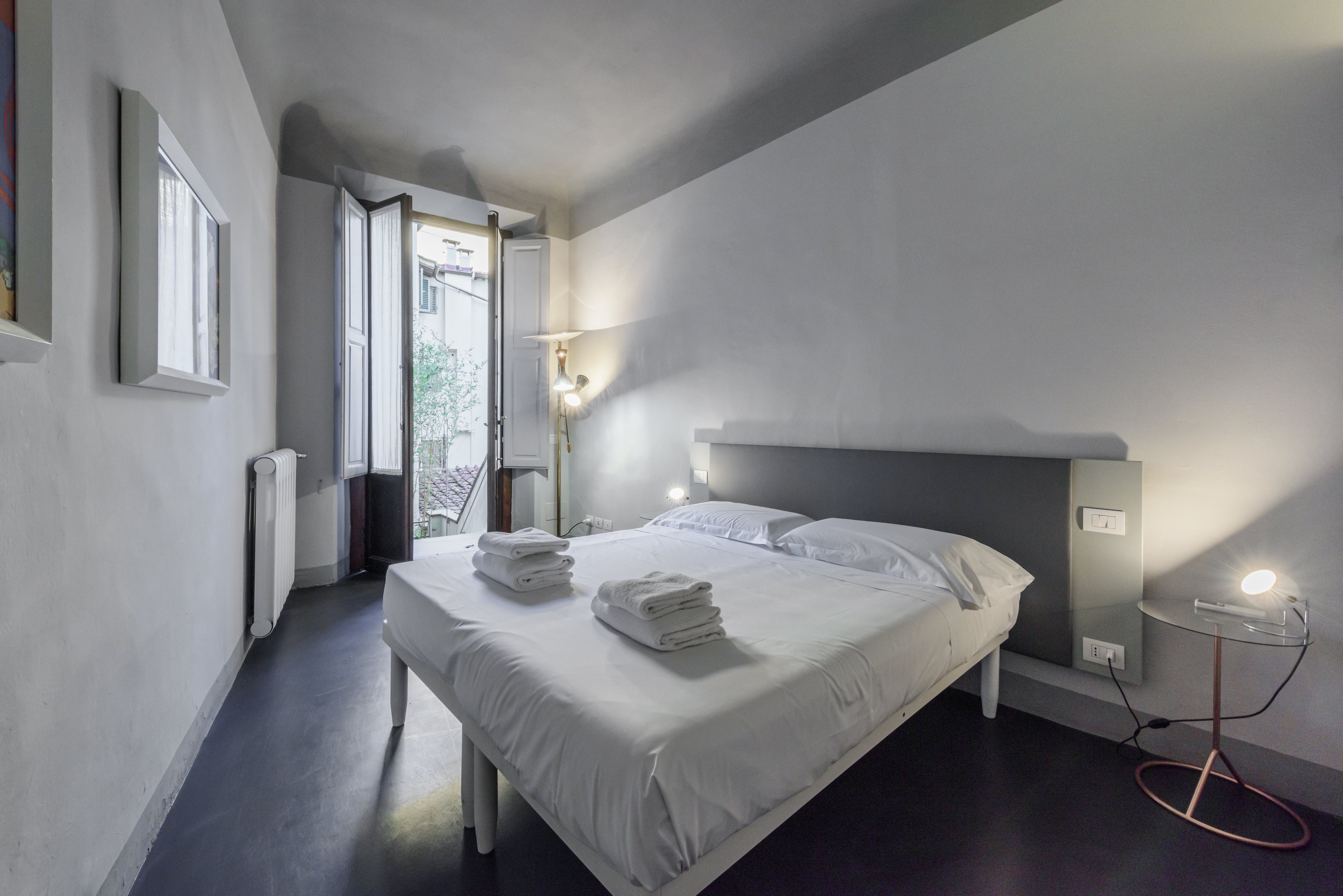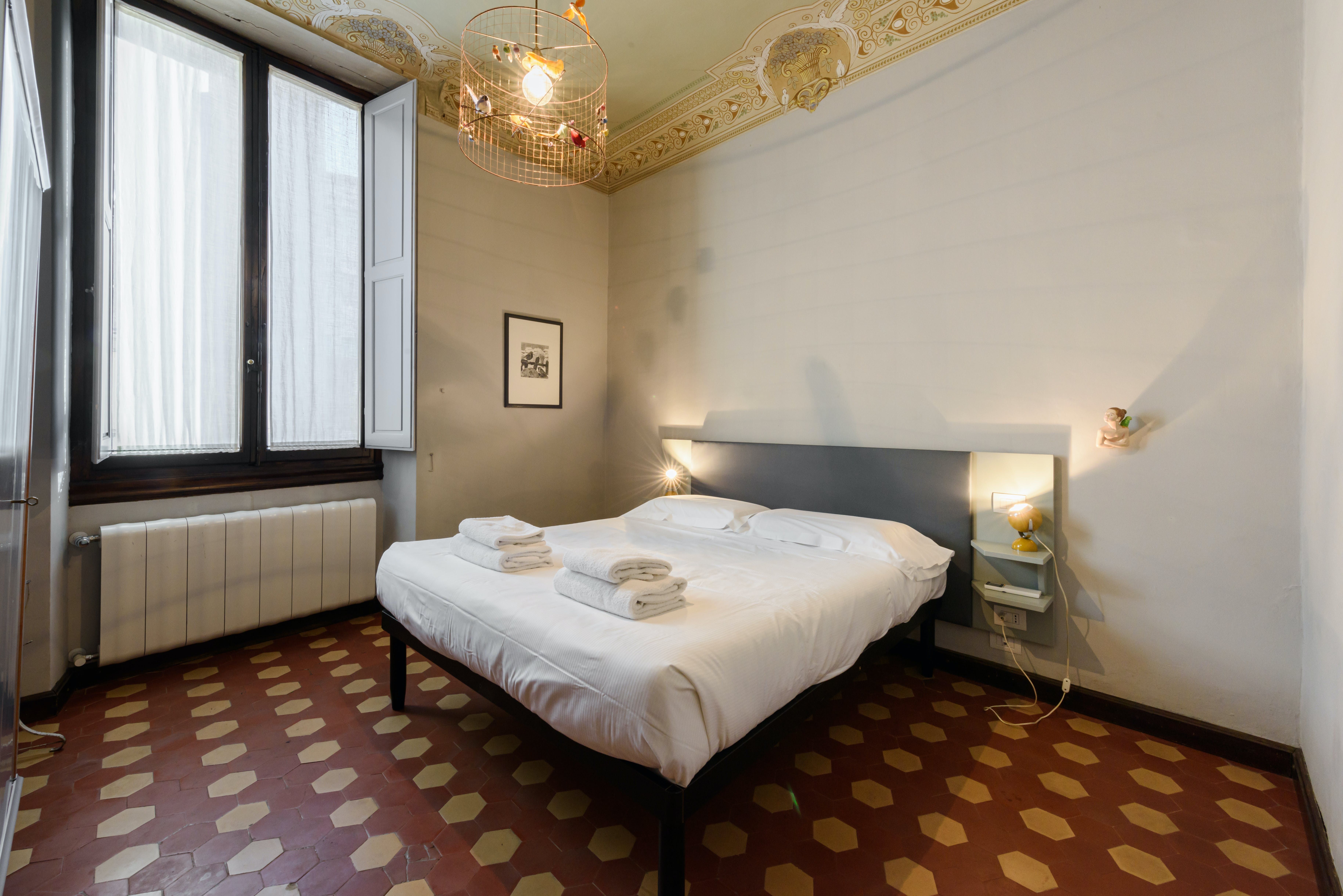 Stay in the heart of romantic Florence, steps from Piazza dei Ciompi, Piazza Santa Croce, and more. If a central location is your priority, then this apartment is an excellent choice. It’s not the cosiest space, with a bare living area lacking in homeliness. However, this won’t bother those visiting Florence on a city break, where sightseeing and eating in amazing restaurants take up most of your time. If you do eat at home, you’ll notice the dining table in the hallway – it’s a little quirky, but we’re fans of unique touches. Especially the tiled floors. The charming courtyard is a fantastic touch, too.