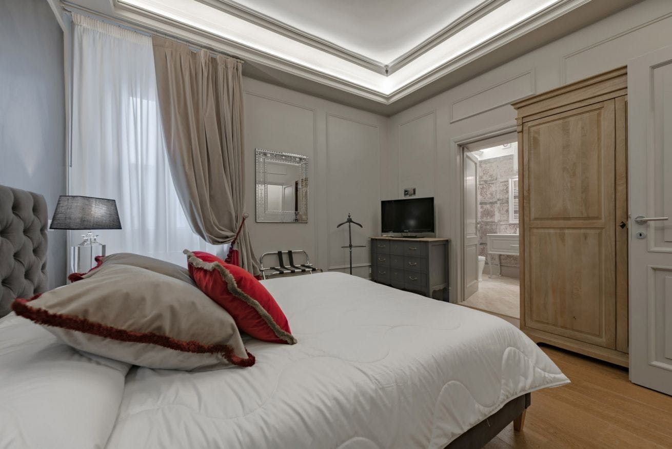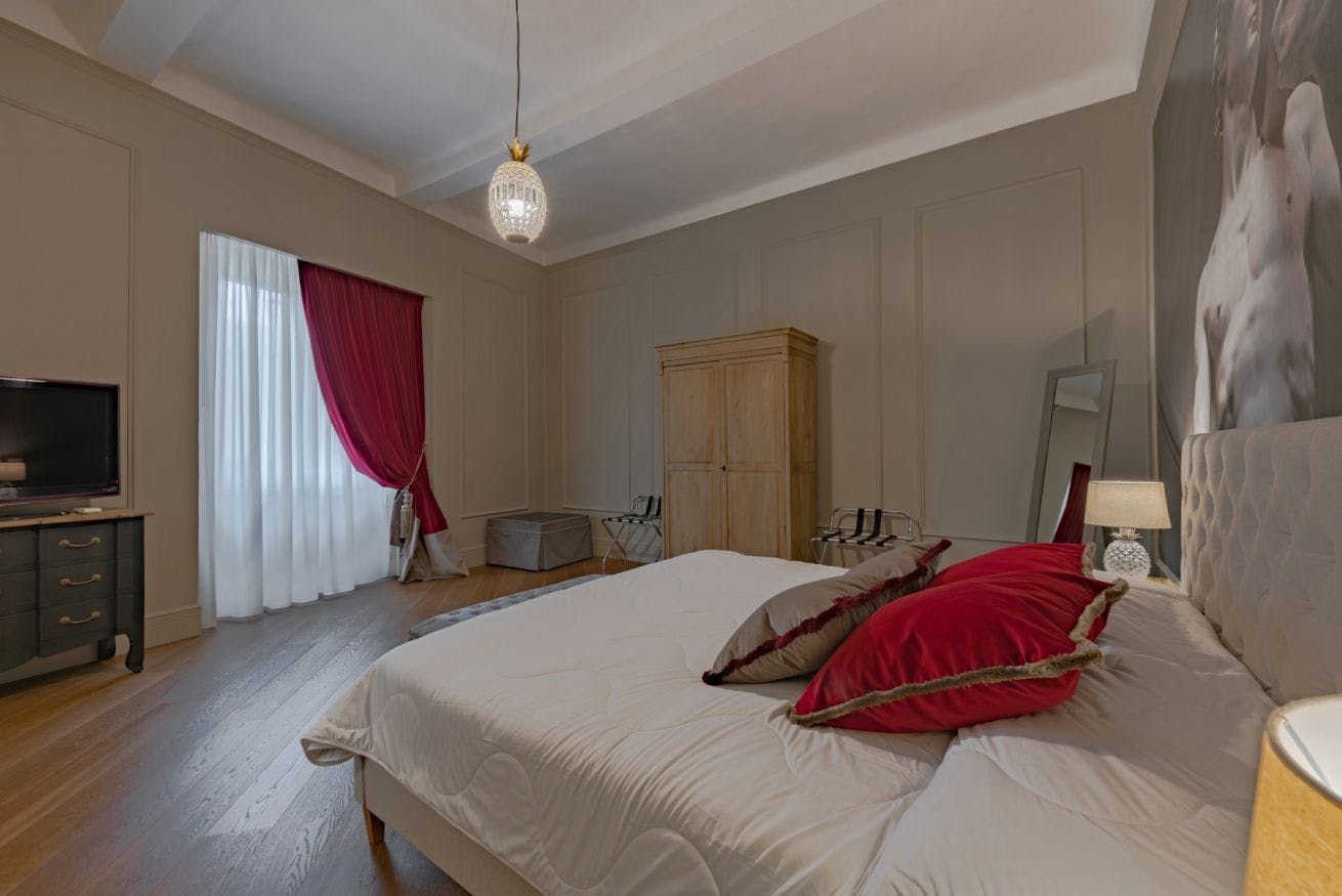 Right above Florence's Teatro Verdi, this two-bedroom apartment is ideal for families and friends, with a sofa bed in the living room for an extra two guests. The gorgeous art of famous works like Michelangelo's David above the beds really make this home stand out, and while you can expect some outside noise here due to the location, we think it's more than worth it. You'll be just steps from attractions like the Cathedral of Santa Maria del Fiore, as well as plenty of shops and restaurants for stocking up on essentials and trying the local cuisine.