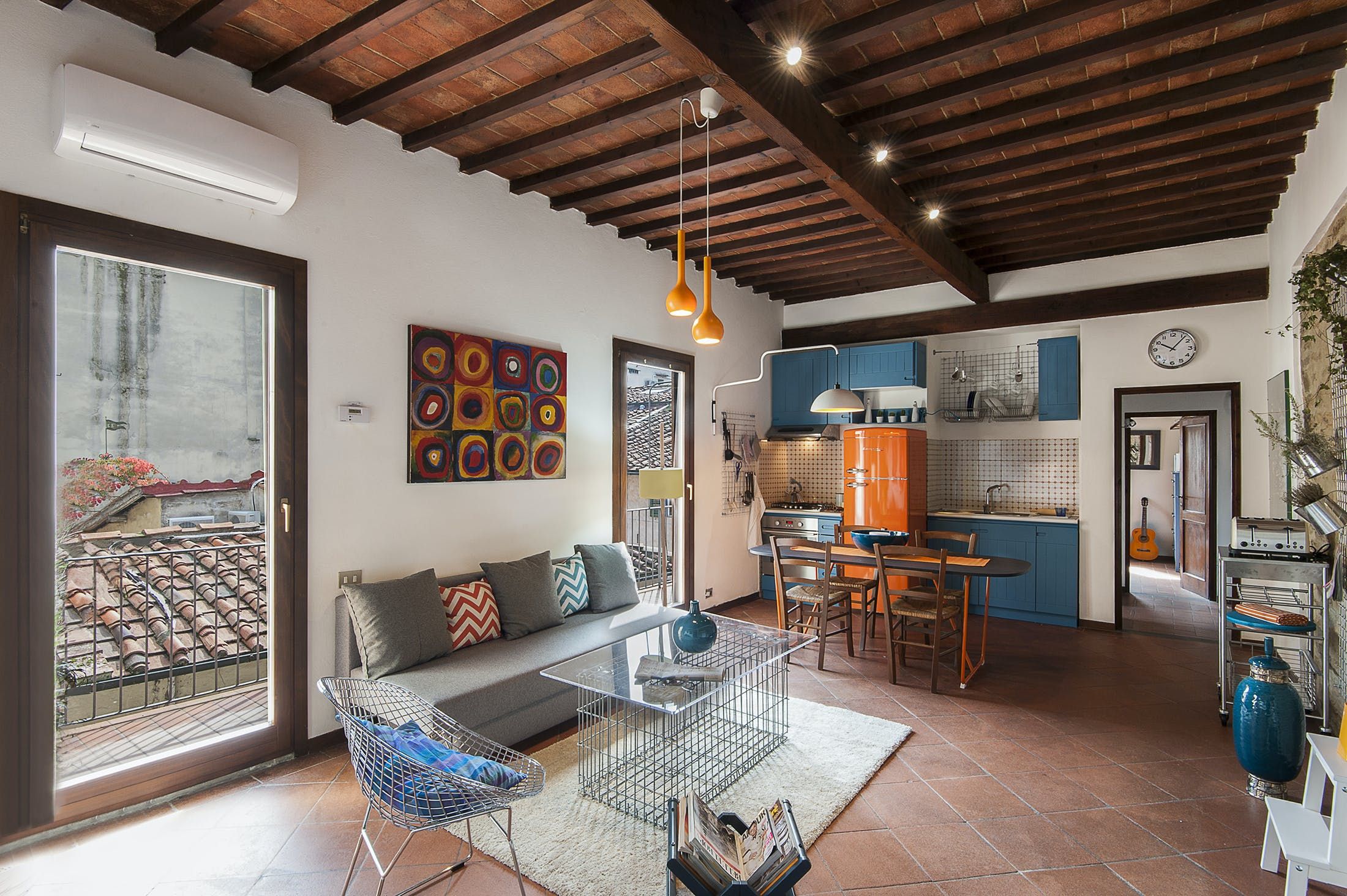 Florence's most famous landmarks are mere steps from this apartment. Ponte Vecchio, Piazza Signoria, Florence Cathedral, and plenty more are less than ten minutes away on foot. Of course, being in the heart of the city has its quirks. Noise is likely here, and a climb to the third floor is required as the building doesn't have a lift. But once inside, we reckon you'll appreciate the traditional features on offer. The open-plan living area has just enough room to decompress after sightseeing as well as a compact (yet well-appointed) kitchen to rustle up Italian dishes. Two guests will sleep on a sofa bed, though – fine for short stays, but may not suit everyone.