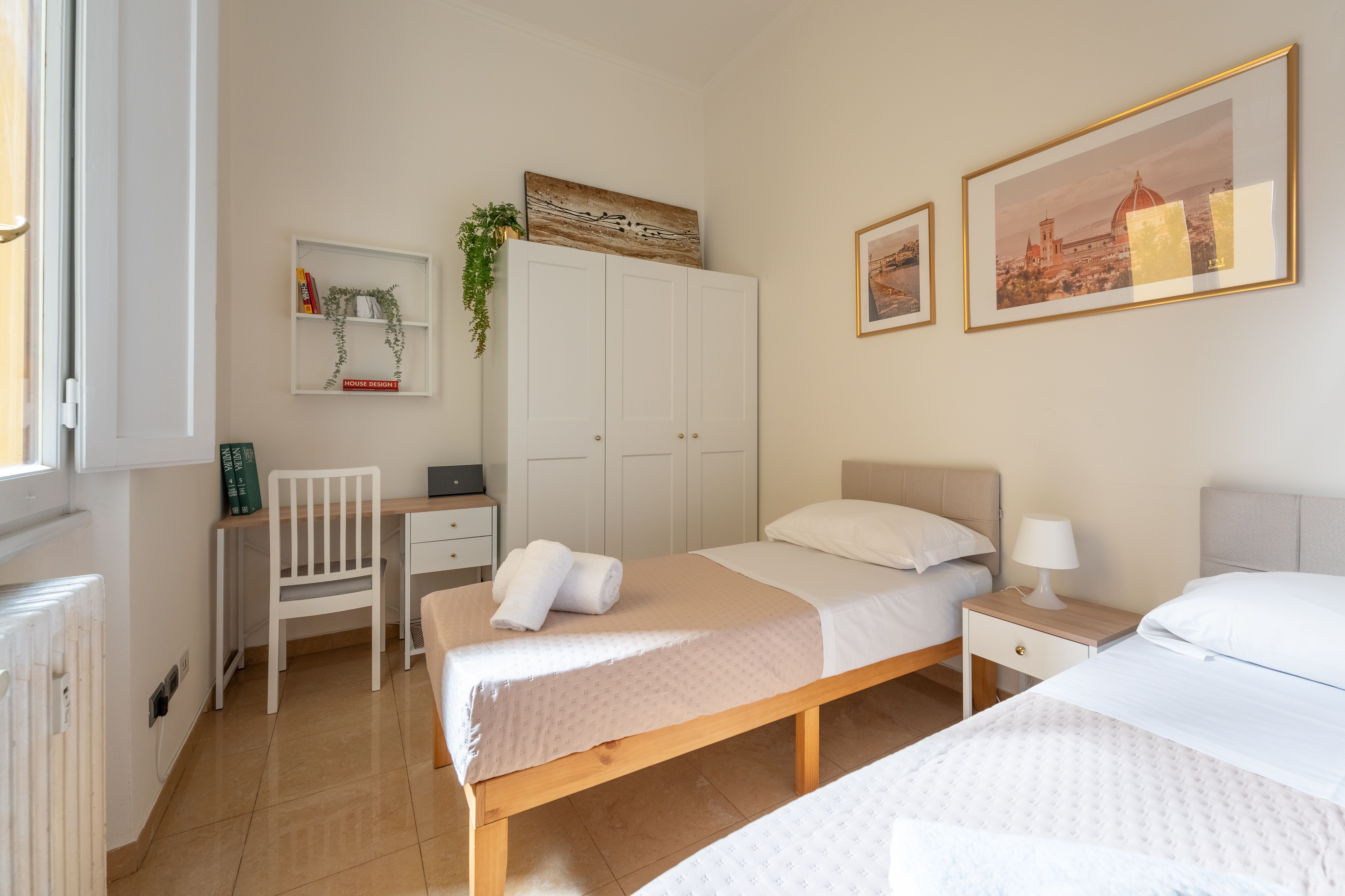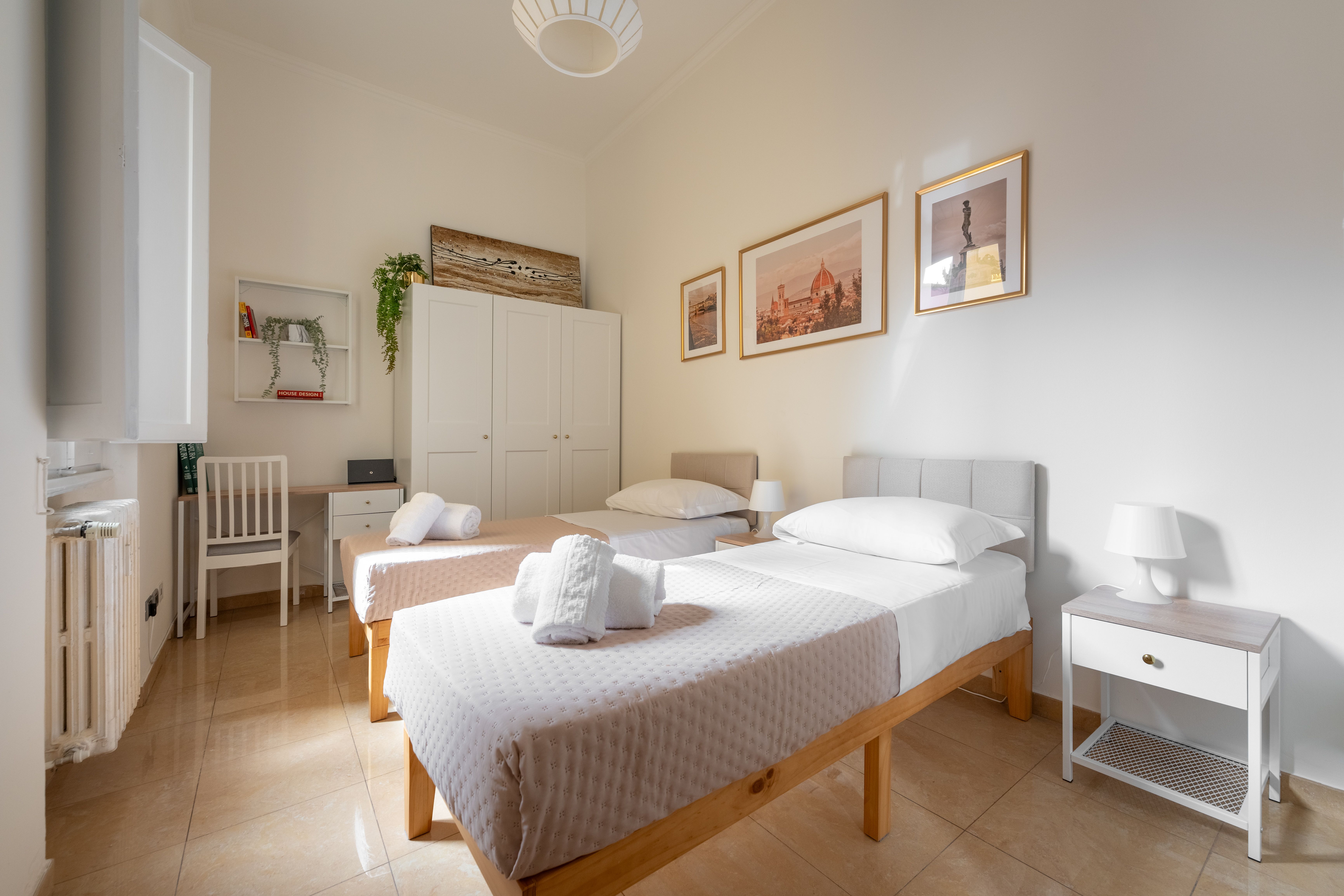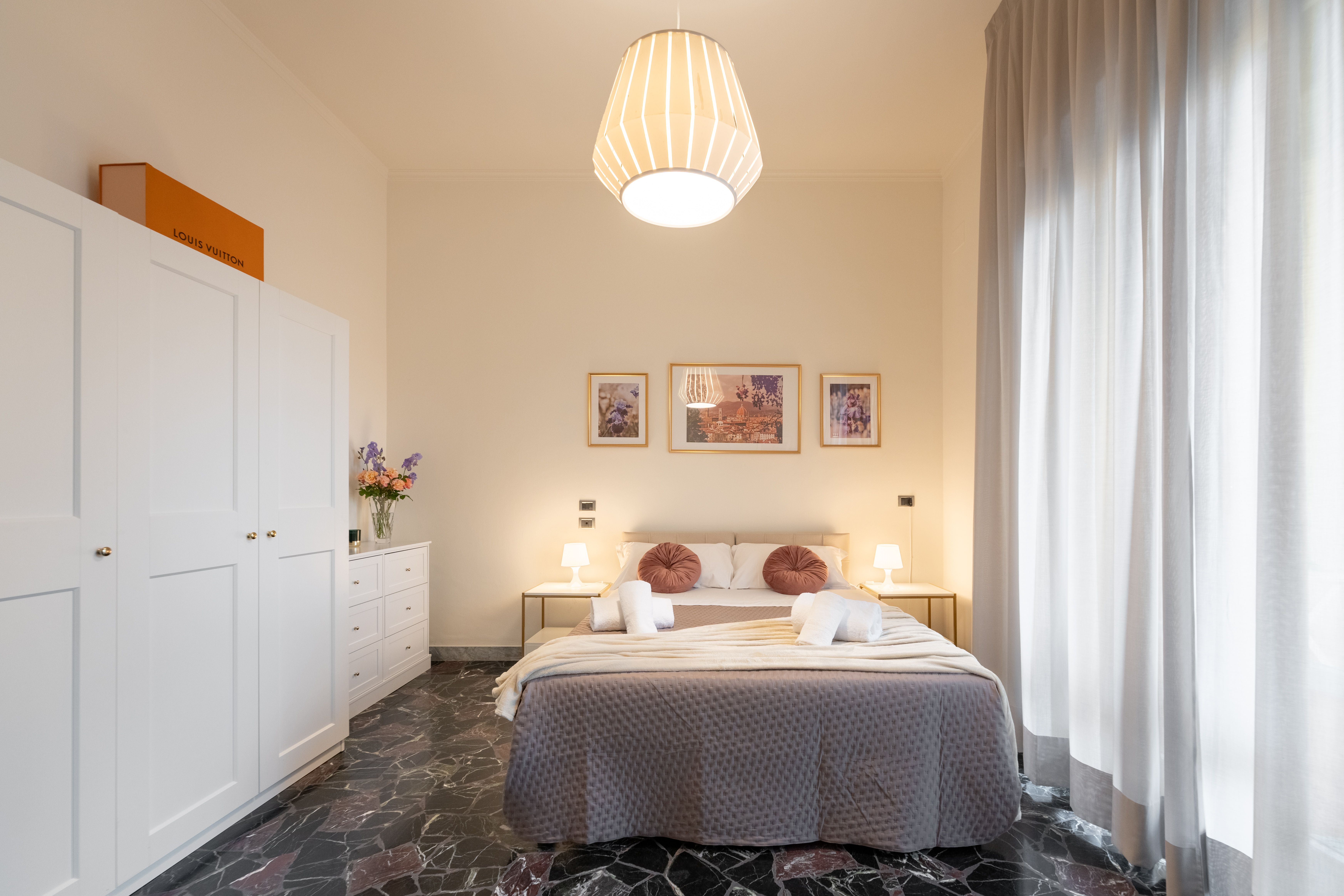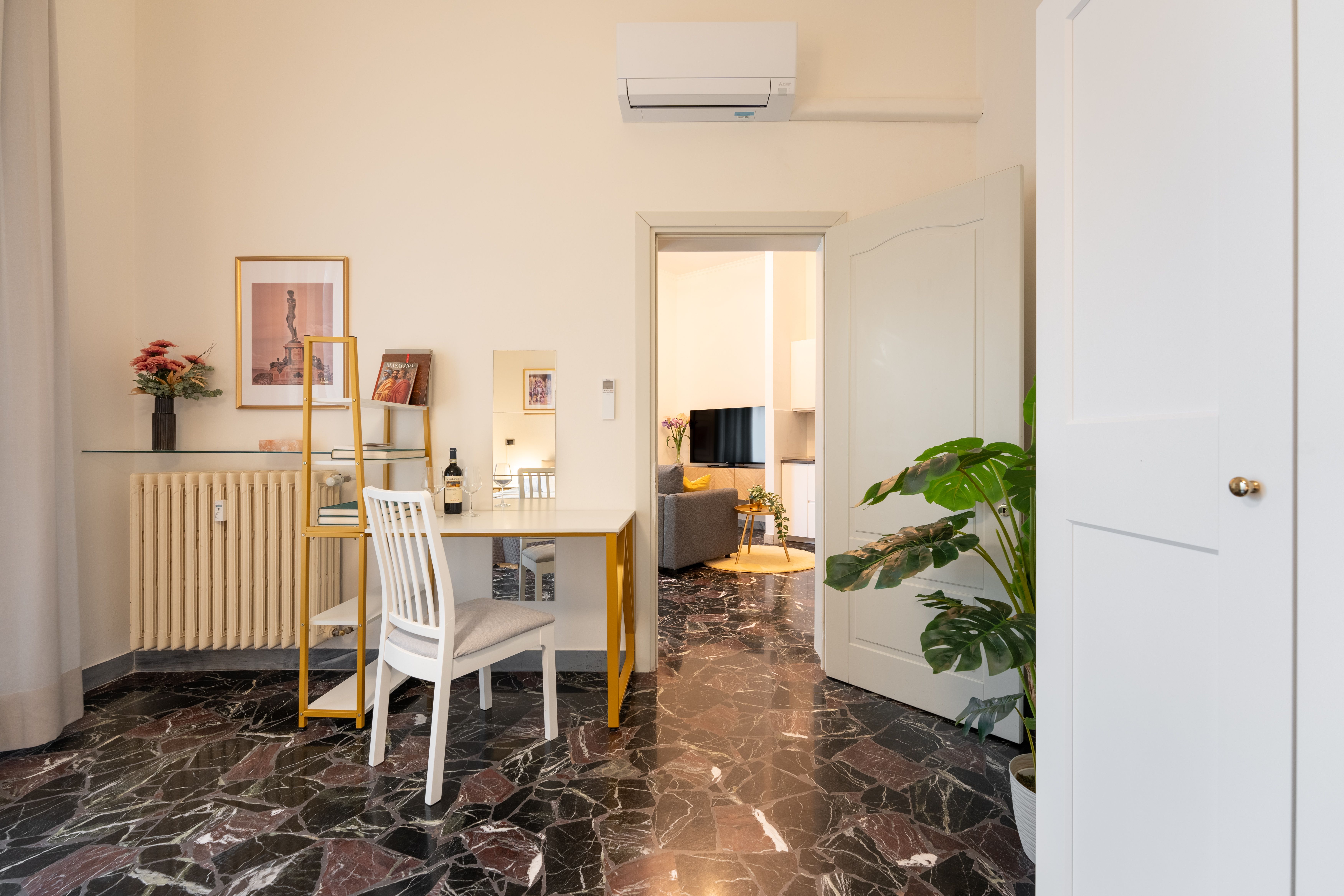 Many of Florence's key landmarks are within walking distance of this apartment. This includes Basilica di San Lorenzo, the cathedral and Piazza San Marco. This home is also a short stroll from a stop on the Florentine tramway, so exploring the rest of this special city is easy. Back at this home, there’s a private balcony to relax on after a busy day. The apartment is decorated with art by the owners, who are both creatives, and the large living room has a sofa bed. Each bedroom also has a desk if you need to catch up on work while away. This is a great base for getting around Florence.