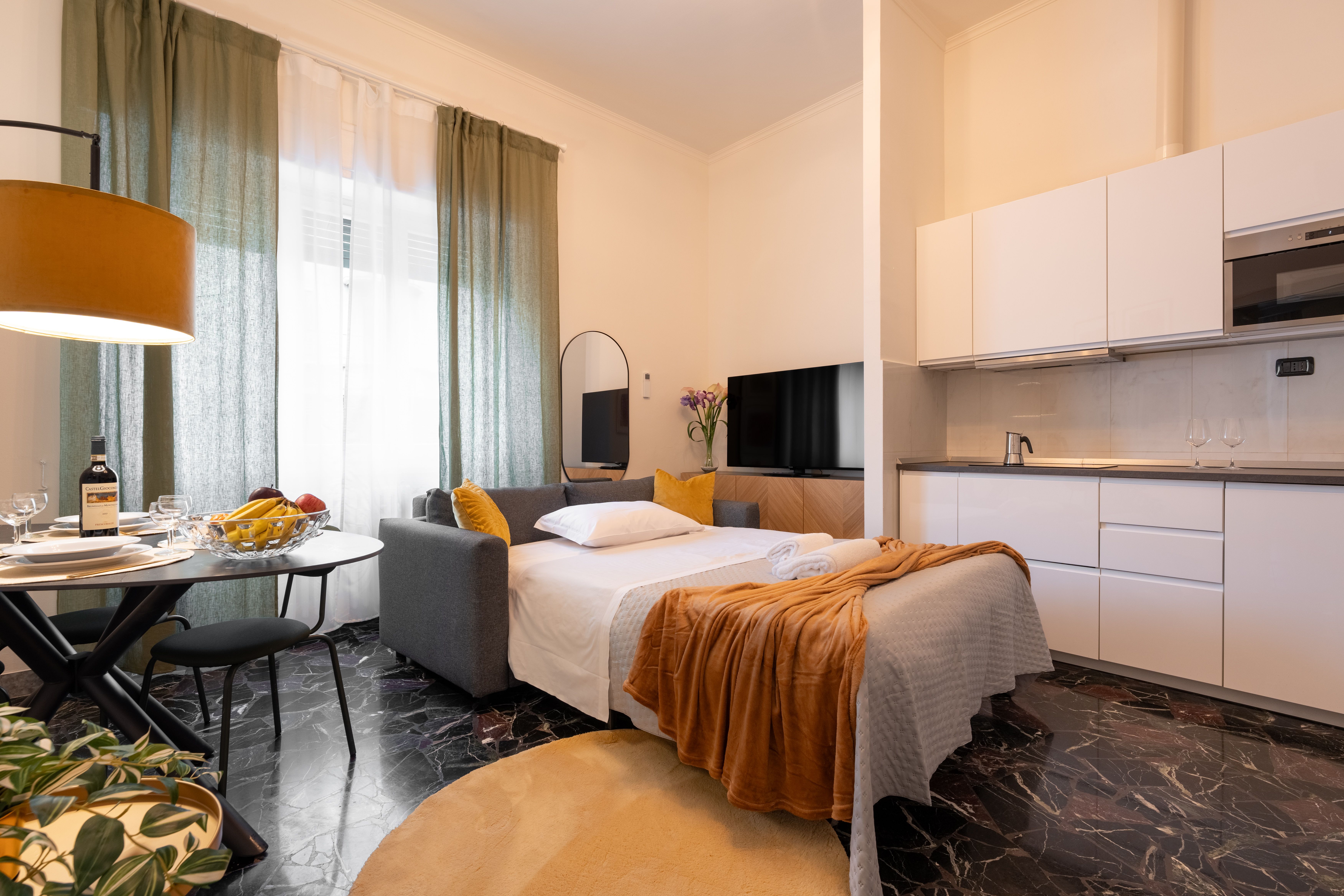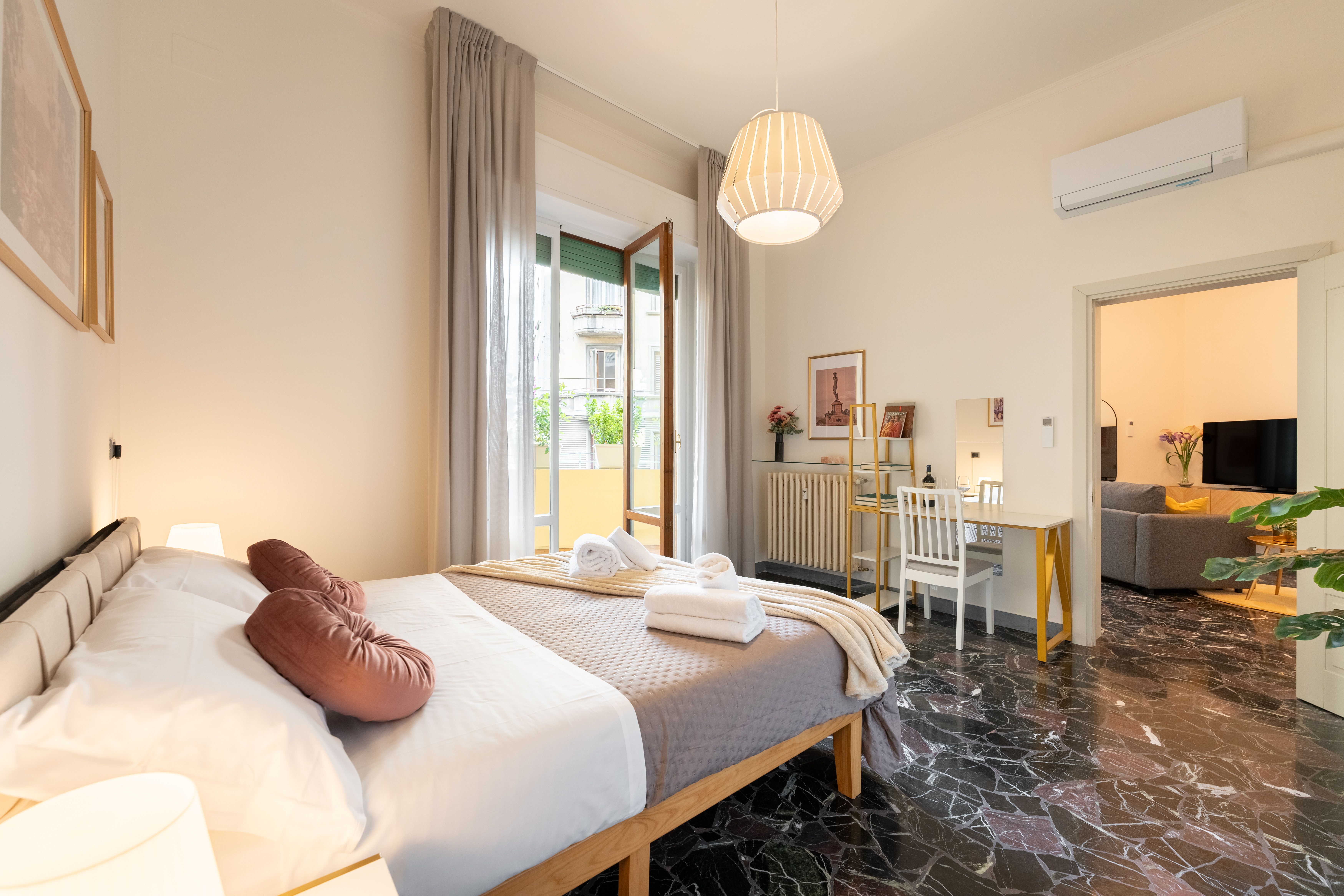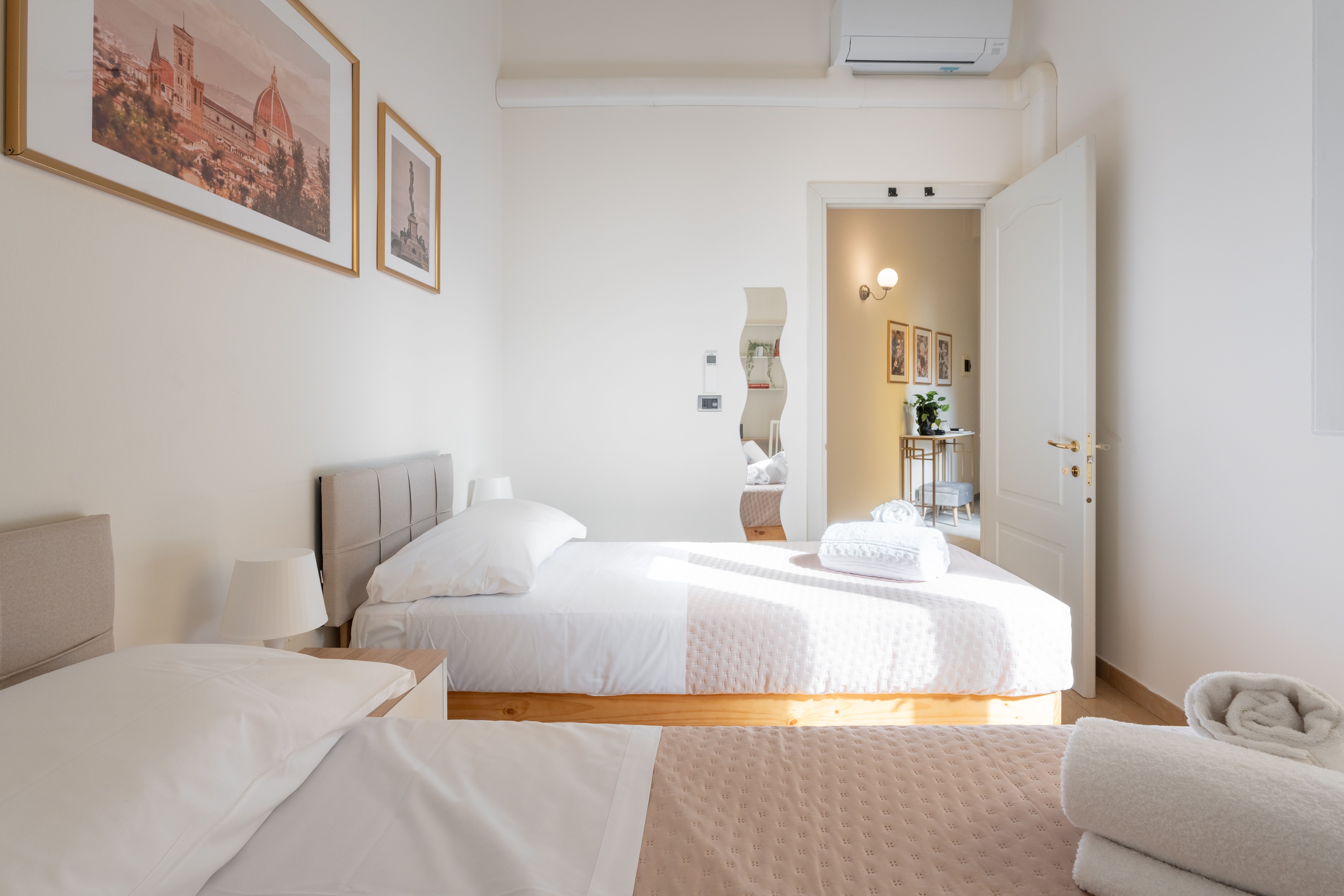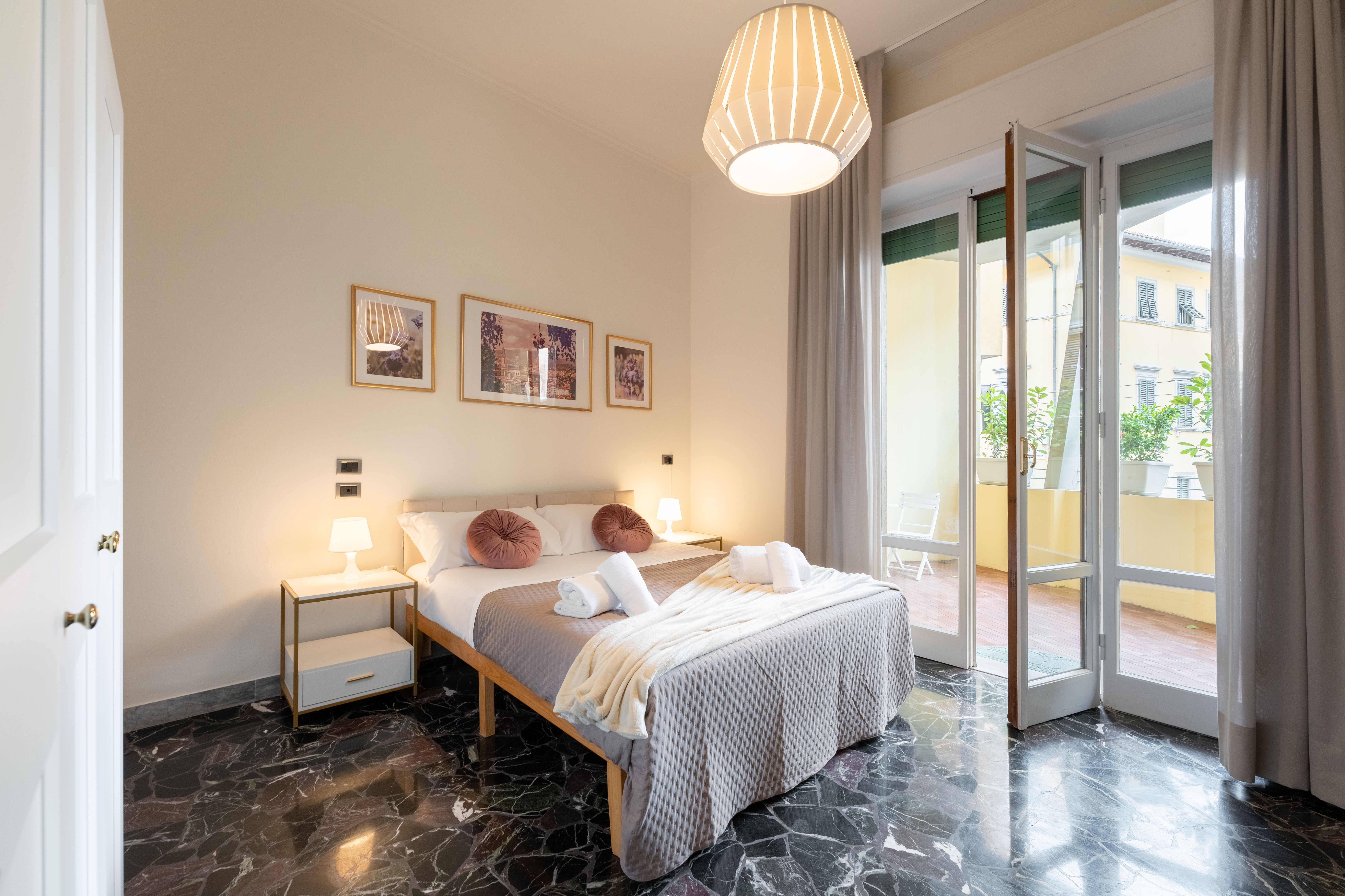 Many of Florence's key landmarks are within walking distance of this apartment. This includes Basilica di San Lorenzo, the cathedral and Piazza San Marco. This home is also a short stroll from a stop on the Florentine tramway, so exploring the rest of this special city is easy. Back at this home, there’s a private balcony to relax on after a busy day. The apartment is decorated with art by the owners, who are both creatives, and the large living room has a sofa bed. Each bedroom also has a desk if you need to catch up on work while away. This is a great base for getting around Florence.