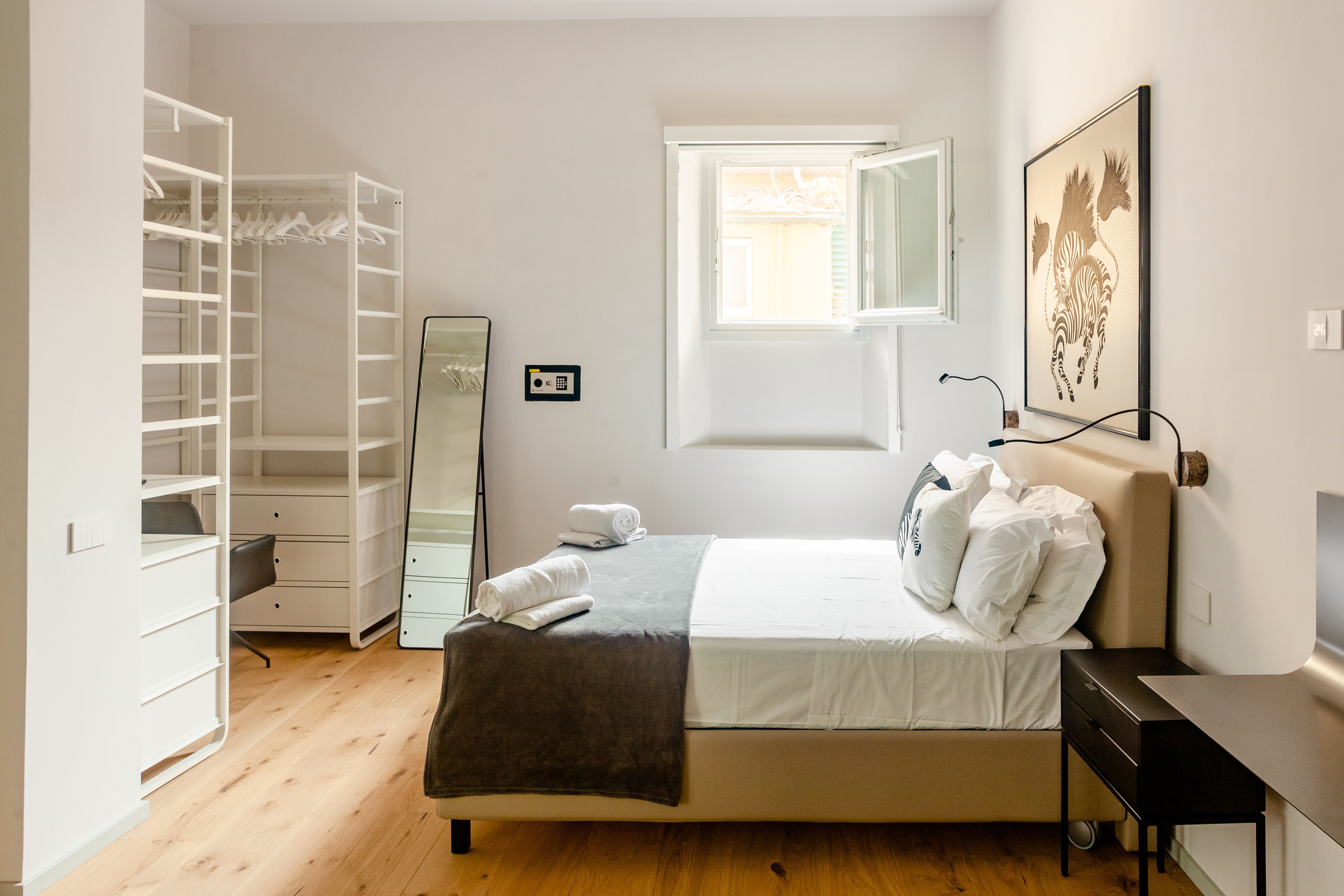 Set at the foot of Piazzale Michelangelo, this loft lies in one of Florence’s greenest and most sought-after pockets – quiet, elevated and still walkable to the historic centre. The Rose Garden is directly opposite (free to enter), making morning strolls and sunset views part of the routine, while Ponte Vecchio is around fifteen minutes on foot. Inside, the layout is open and airy, with a glass-partitioned bedroom, additional sleeping in a walk-through studio, two bathrooms with chromotherapy features, and a private courtyard for downtime away from the crowds. It’s best suited to guests who don't mind sharing their space and who love walking everywhere – parking is possible nearby on the street, but having a car isn’t essential here.