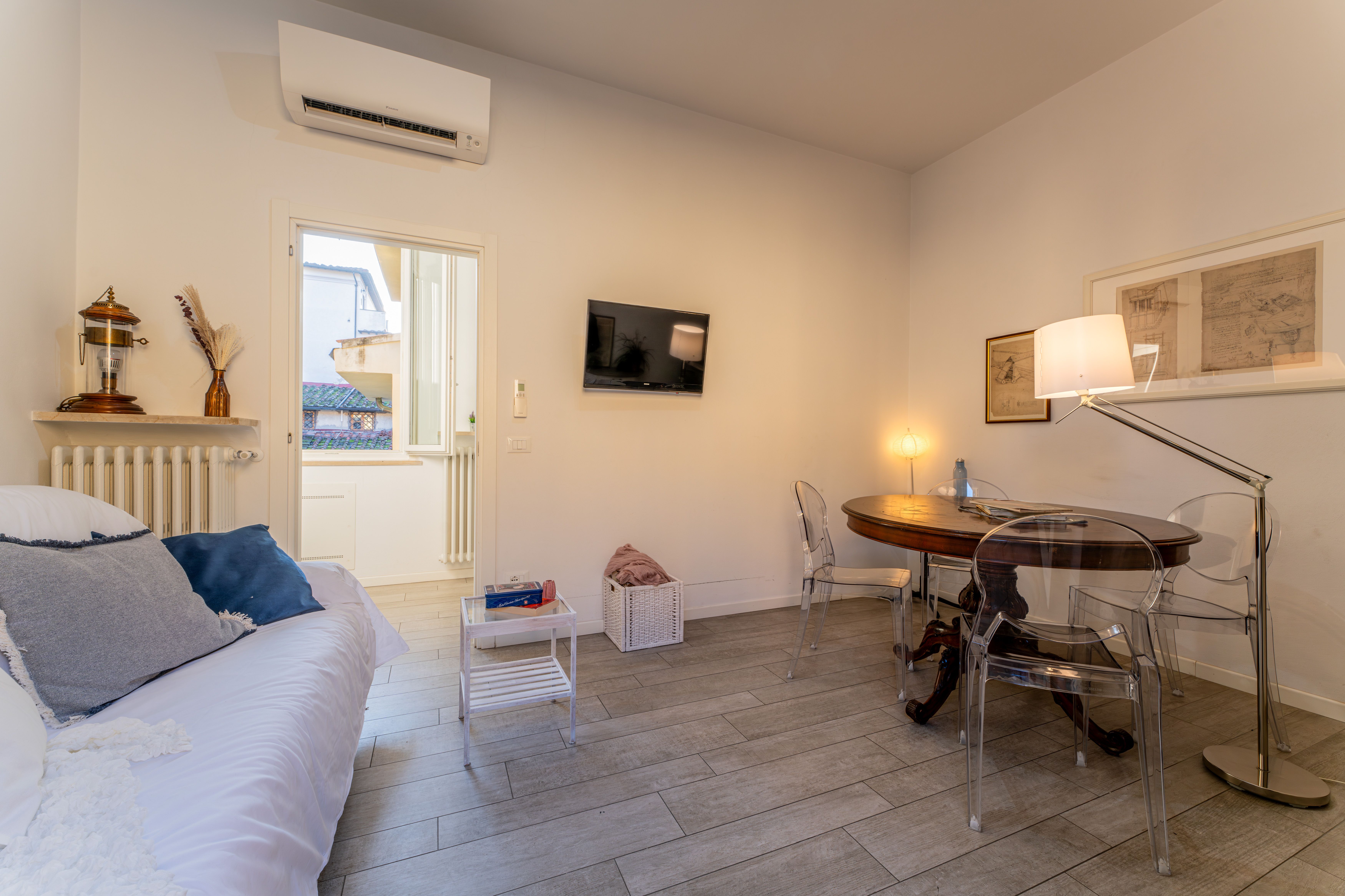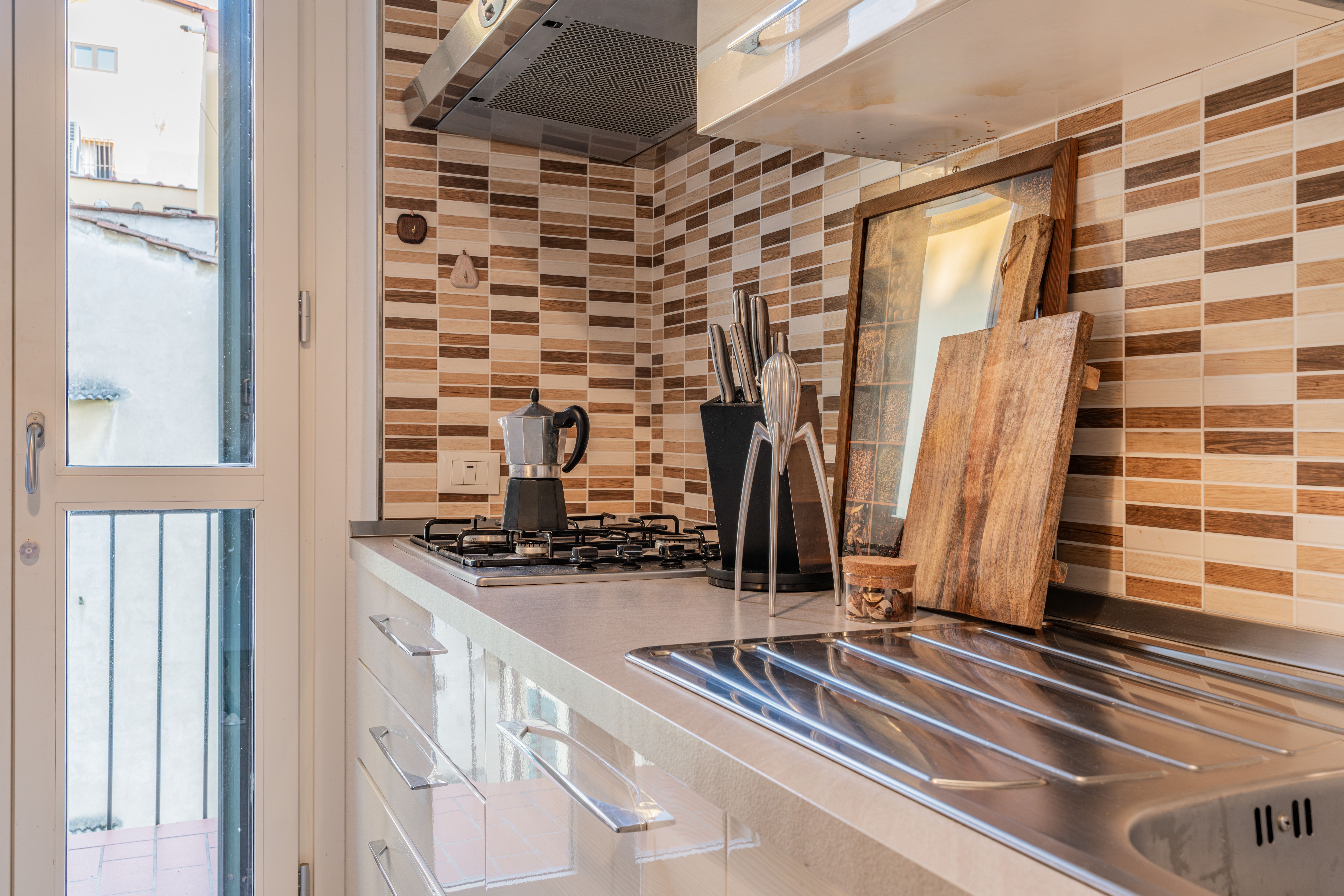 With two rooftop terraces overlooking Via della Colonna, this apartment is a great place to relax and soak in the atmosphere of Florence. The living room and the well-appointed kitchen, as well as both bedrooms, open onto the balconies, keeping this home light and airy. The location is fantastic too – it’s a few steps to the historic Spedale degli Innocenti and a short stroll to the Museo di San Marco. Other key attractions such as the Cathedral of Santa Maria del Fiore and Galleria dell’Accademia are within easy walking distance.