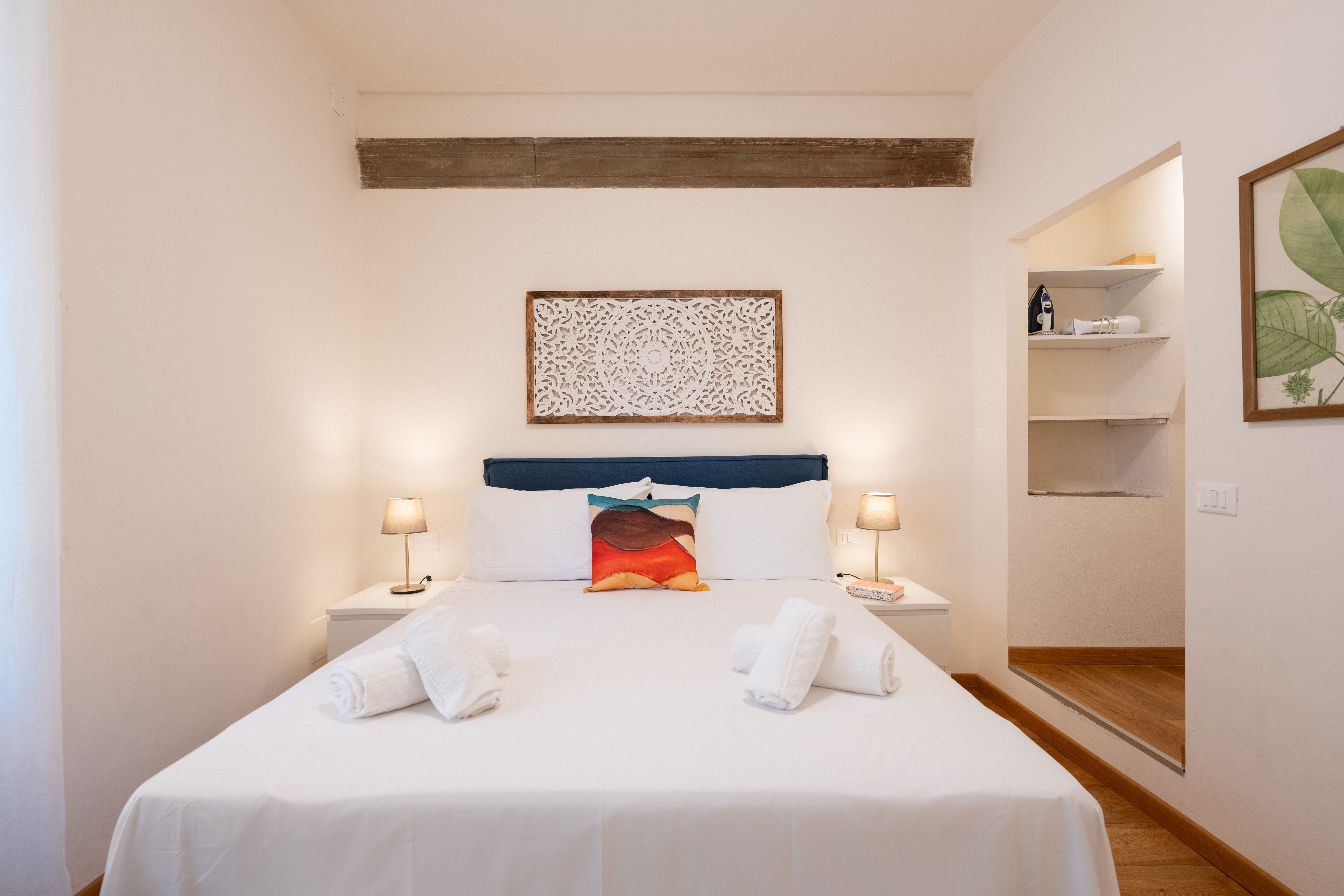 Space won't be an issue with a stay at this Santa Croce district apartment. Spread across two floors in a fresco-adorned former palazzo, expect two great-sized bedrooms and bathrooms upstairs. While downstairs, there's a light-filled living room and a dining kitchen to rustle up brunch with goodies picked up from the nearby Sant'Ambrogio Market. Accessed via an internal courtyard, guests rave about how quiet this apartment feels. But when it's time to soak in the bustle, the authentic restaurants of Santa Croce's piazza are 30 seconds from your door, and all the must-sees, including Ponte Vecchio and the Duomo, are a stroll away.