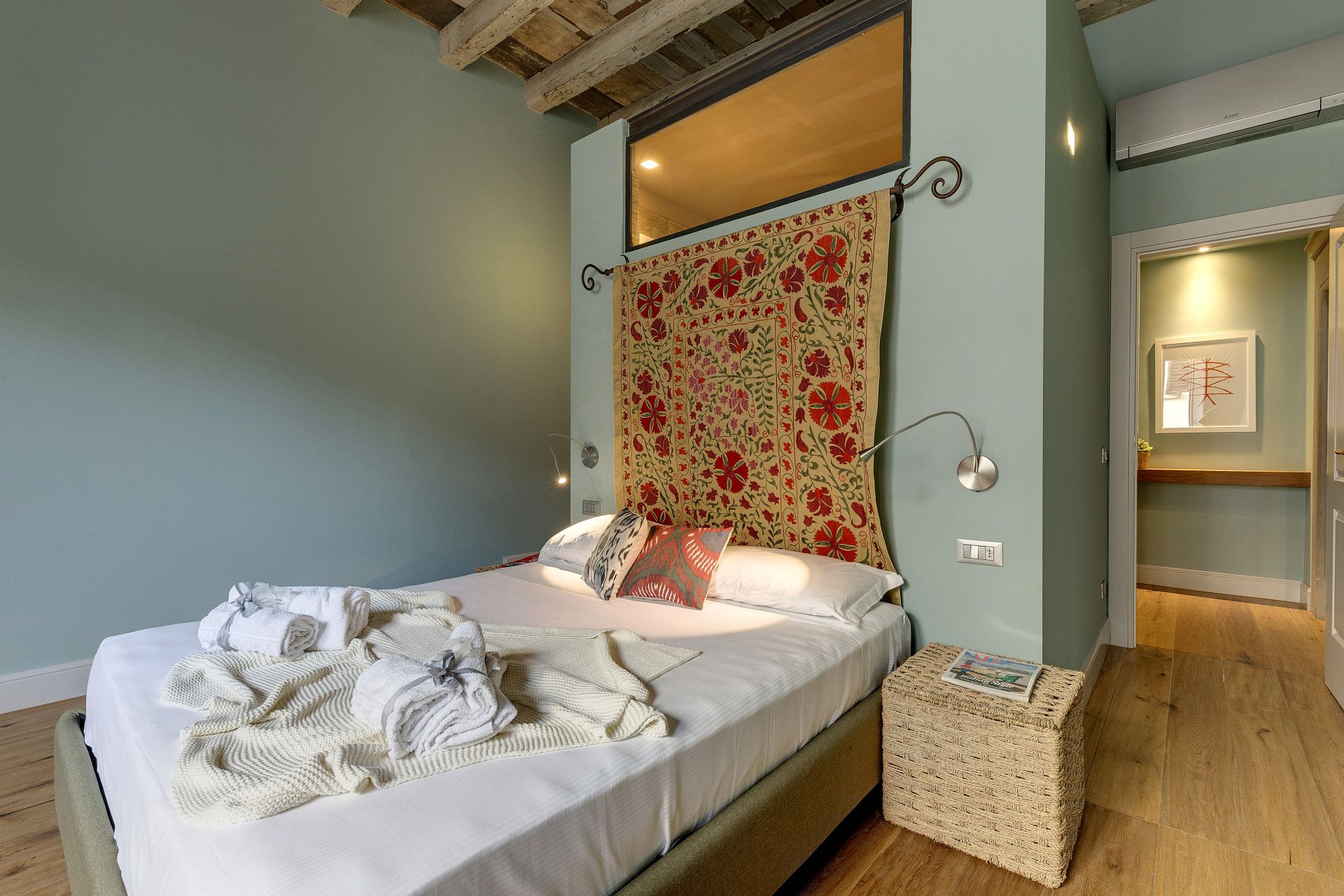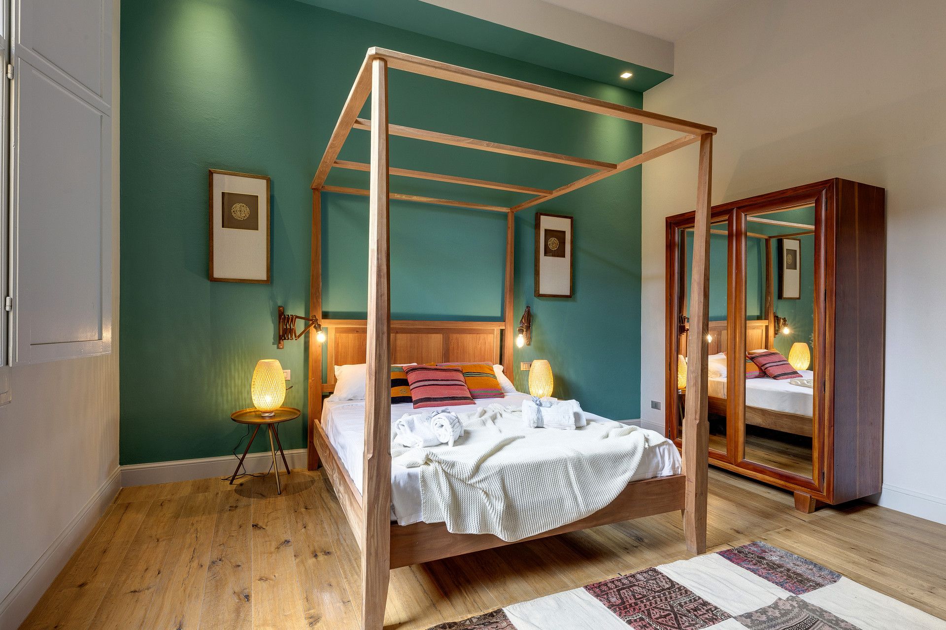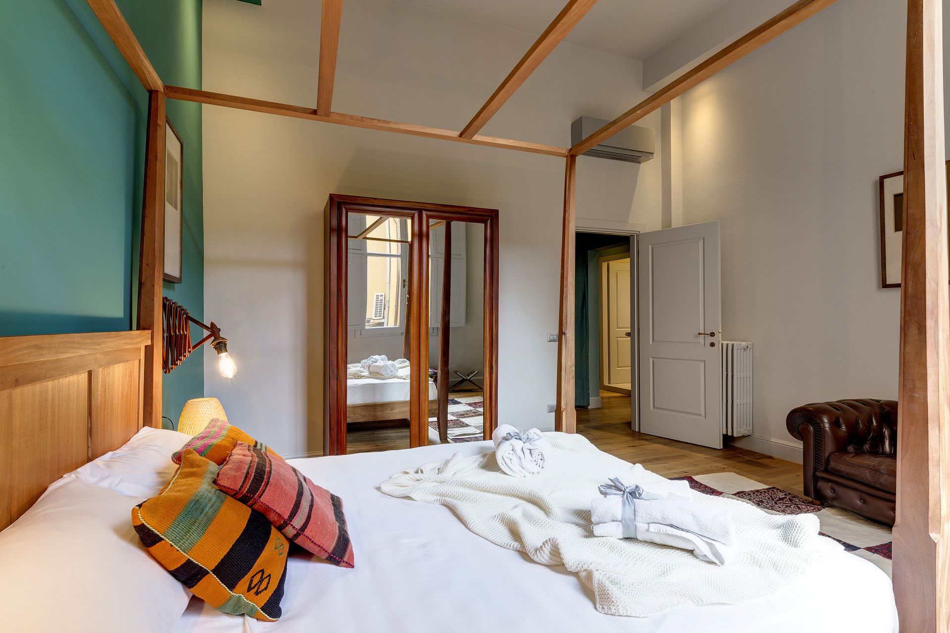 Immerse yourself in Florence’s rich history and culture at this elegant apartment located in the historic Spinelli Palace. We love the elegant living space with its grand fireplace (two people will be sleeping on a sofa bed in this room at full occupancy). One of the bedrooms has a four-poster bed to relax in too. Just a short stroll away, you'll find iconic landmarks like the Uffizi Gallery and the Duomo. Even nearer, the magnificent Piazza Santa Croce and the Basilica are right on your doorstep.