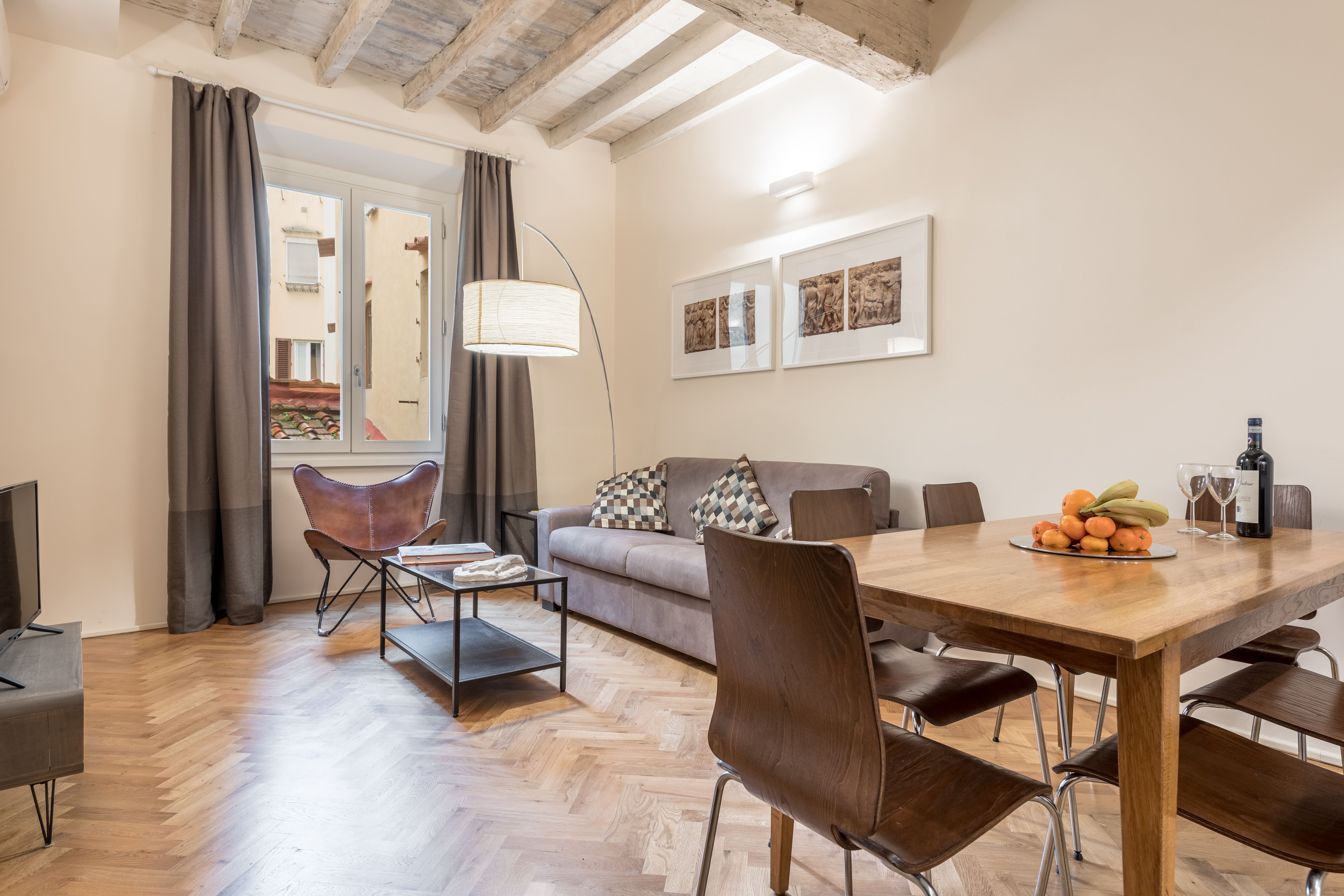 This apartment is great option if you’re in search of a simple base in a fantastic location. Overlooking Via Panzani, you’ll find it’s just a short walk to the Duomo and Santa Maria Novella. There are also great public transport links and a range of restaurants, cafes, bars and galleries within easy walking distance. The interiors are basic but the rooms are well suited to families with the handy addition of a sofa bed for two guests in the living area. There is also a dedicated desk in the main bedroom – making this an ideal spot for remote workers.
