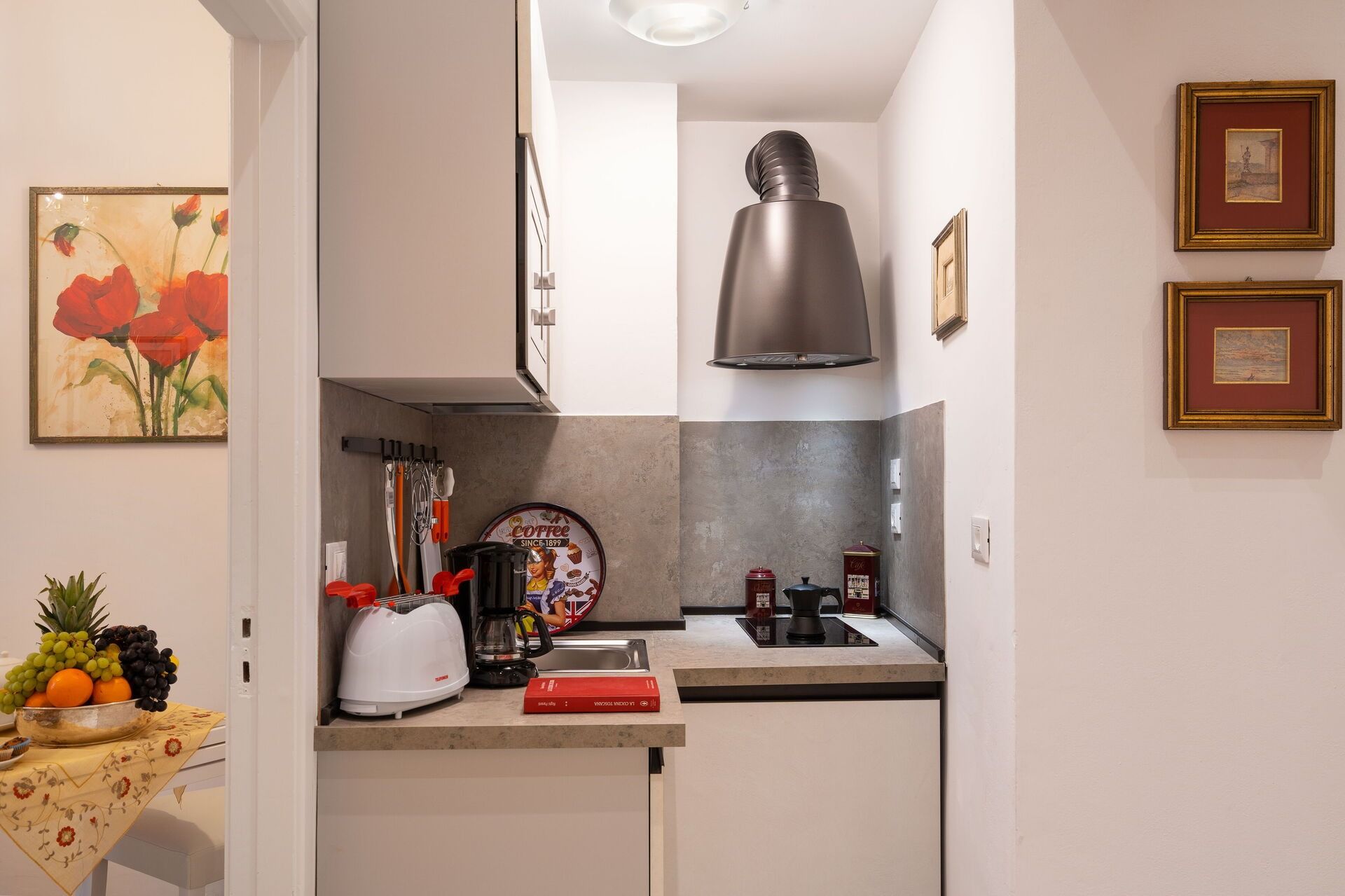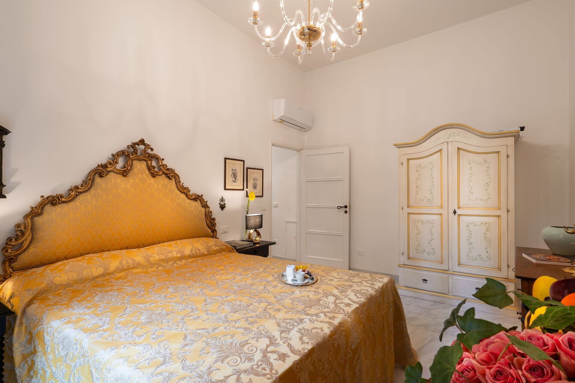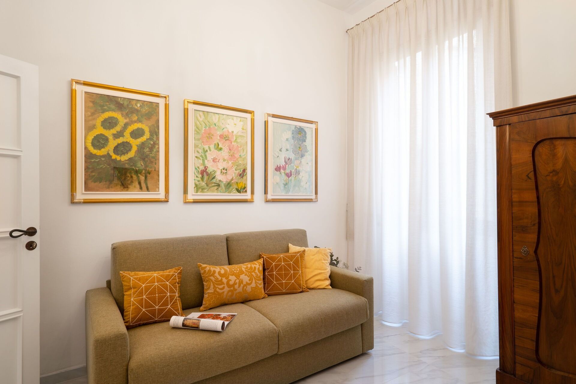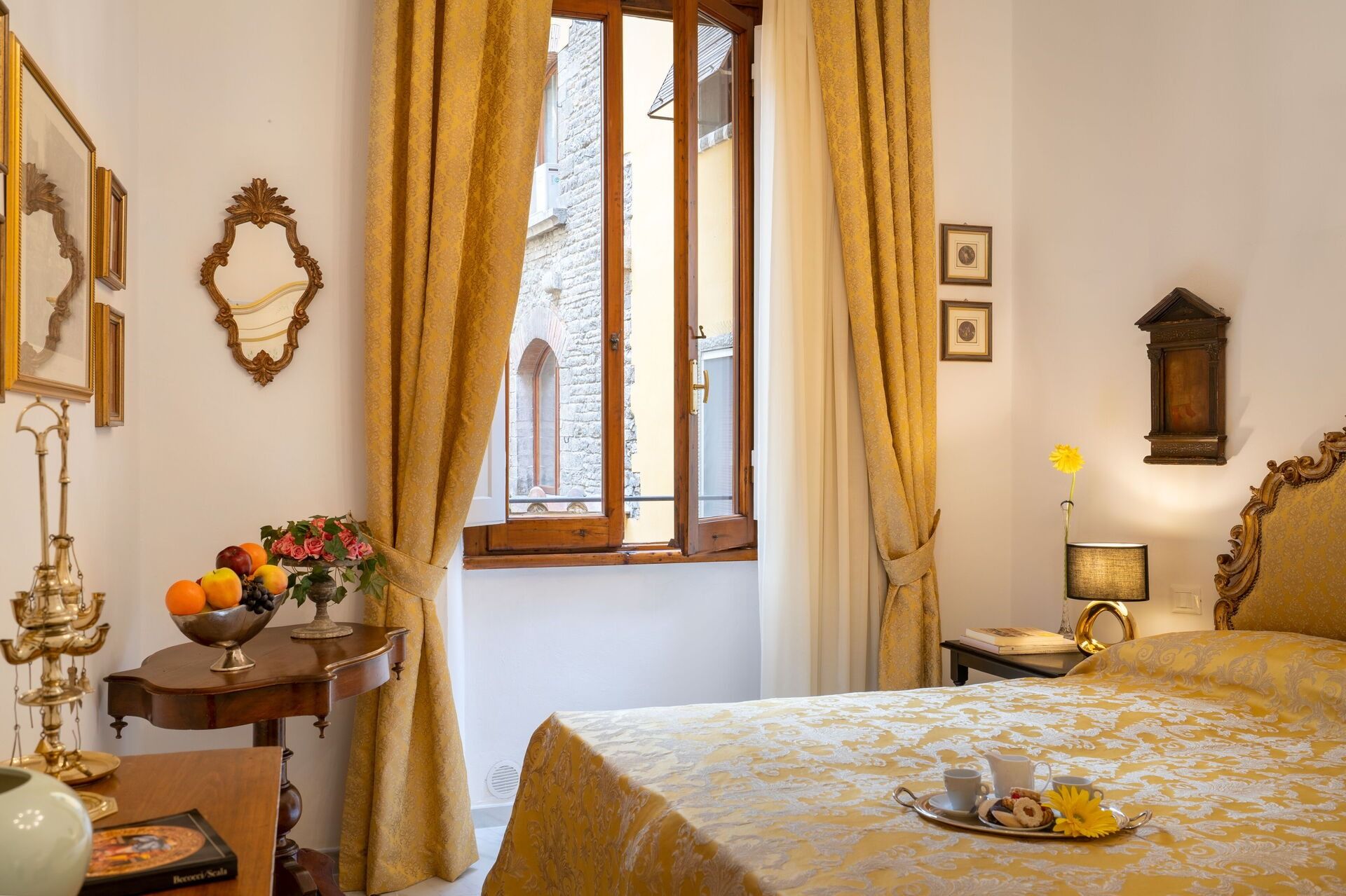 If you’re looking for a fantastic location in Florence, then consider this apartment. It’s just a short stroll to Ponte Vecchio and the Uffizi Galleries. And Piazza della Signoria is virtually on your doorstep, so the address is a real highlight. We should also mention that there is an array of cafes and restaurants surrounding this home. This is handy, as the apartment has a very compact kitchen with no oven, though there’s a microwave and stove here. The cosy, traditionally styled living room also sleeps two guests on a sofa bed at full occupancy. This home will suit couples and families looking to be within walking distance of many of the city’s main attractions.