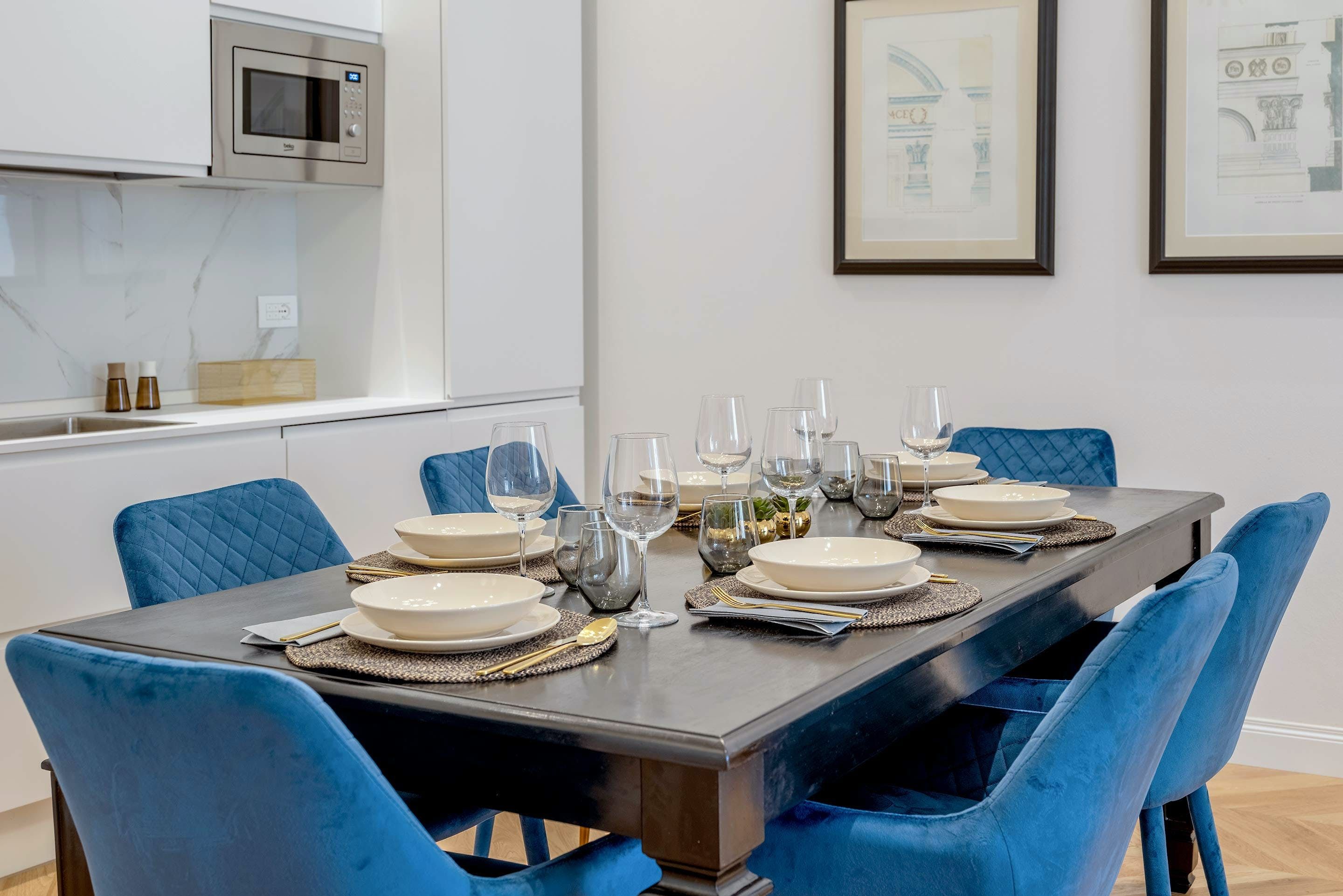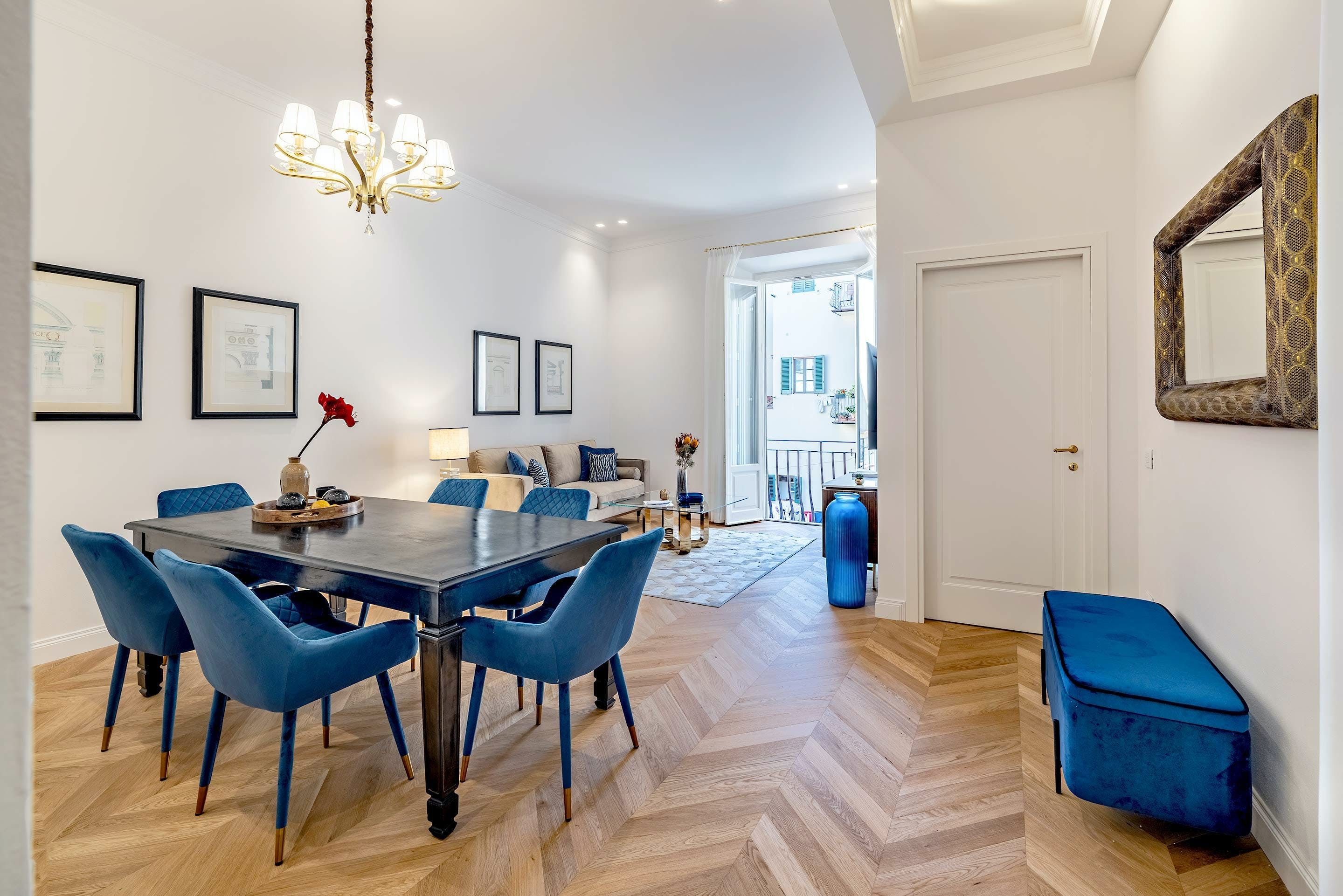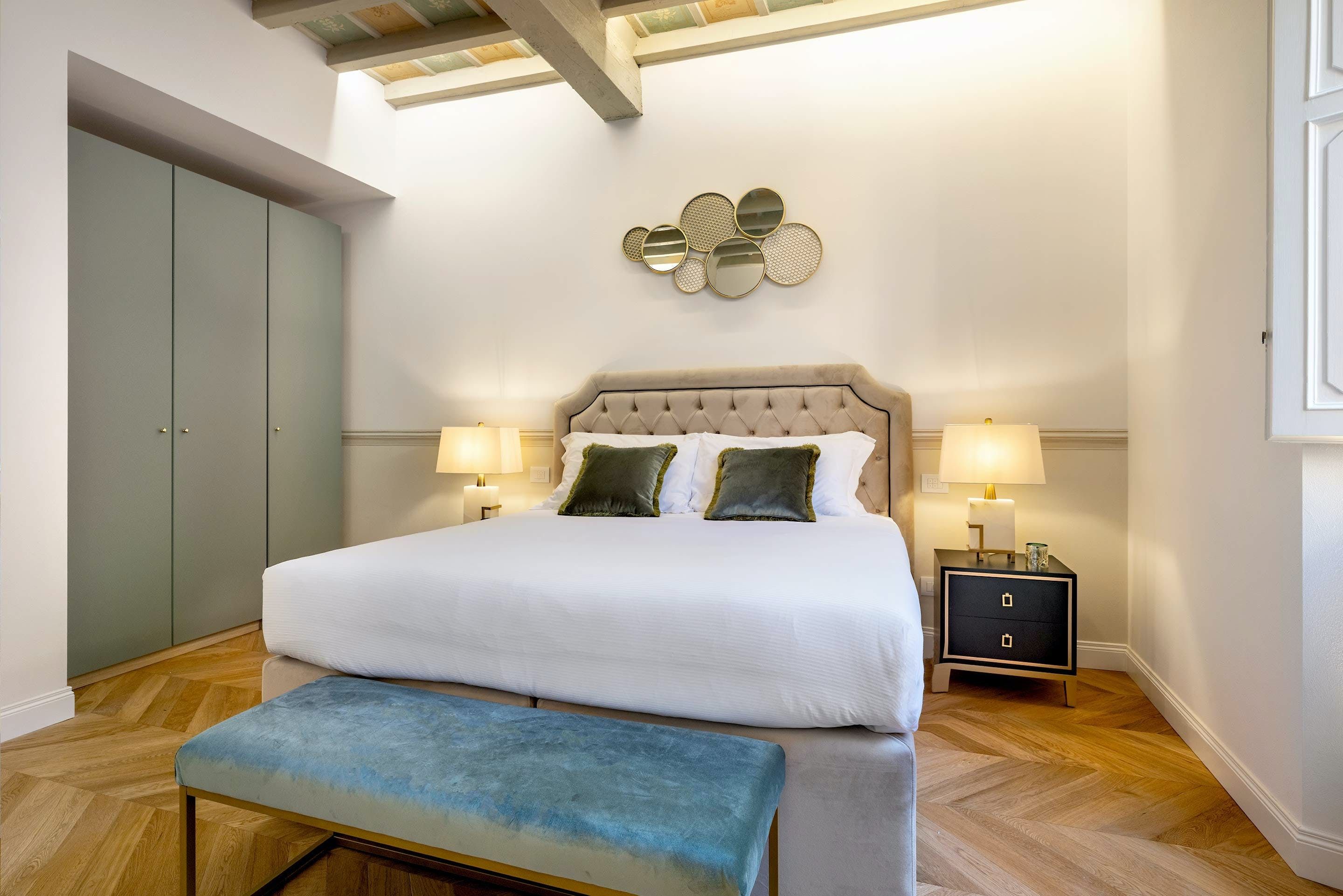 Elegance meets comfort at this apartment in the heart of Florence. There are shops, restaurants, bars and gelaterias on your doorstep and the striking facade of the city’s famous Duomo is just a short stroll away. It’s on the second floor of a historic building, so you’ll need to be ok with a few steps to the entrance, but once inside you can forget about the rush of the city. The plush dining table is big enough for the whole group and traditional touches like the coffered wood ceiling and French-style windows keep things feeling typically Tuscan.