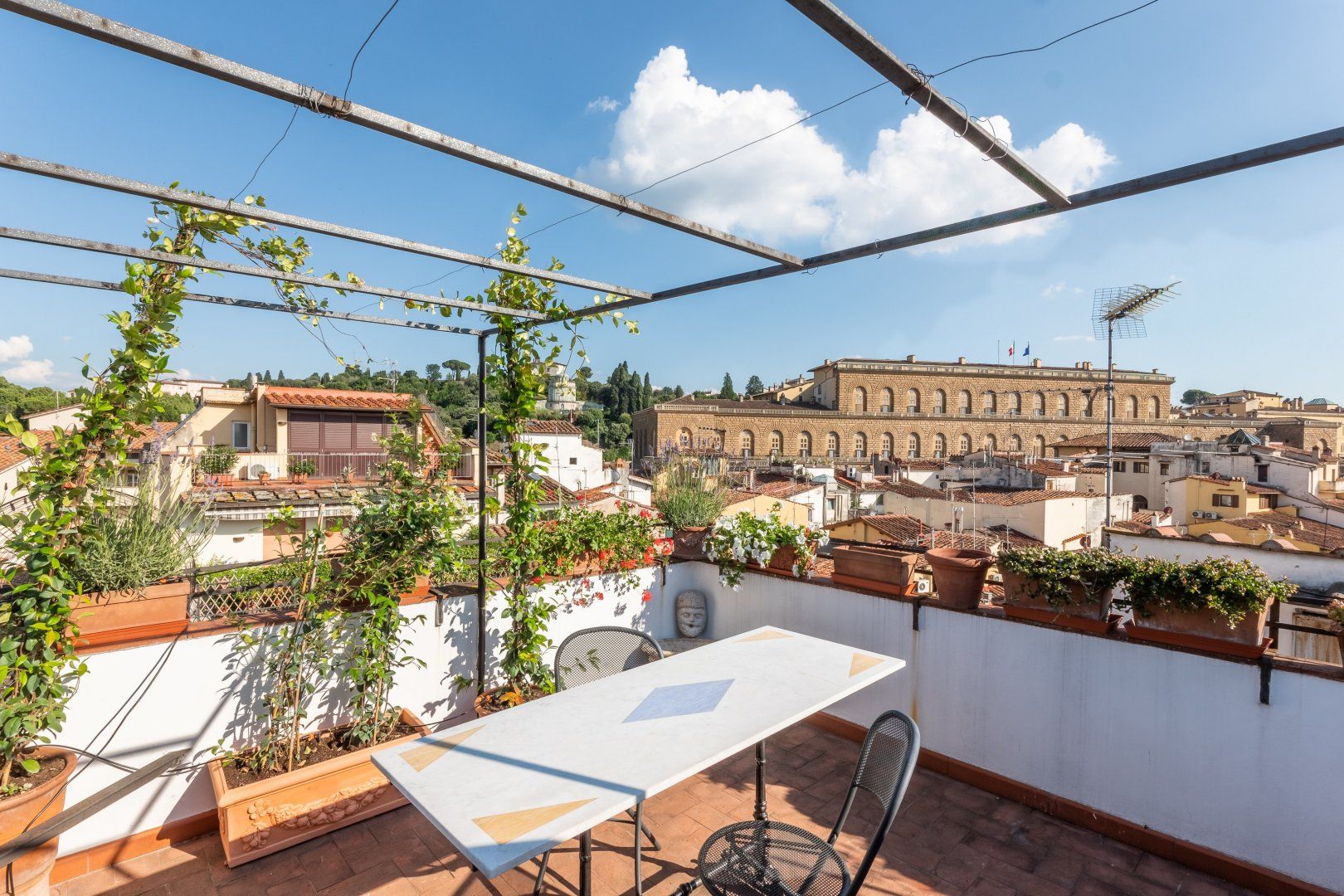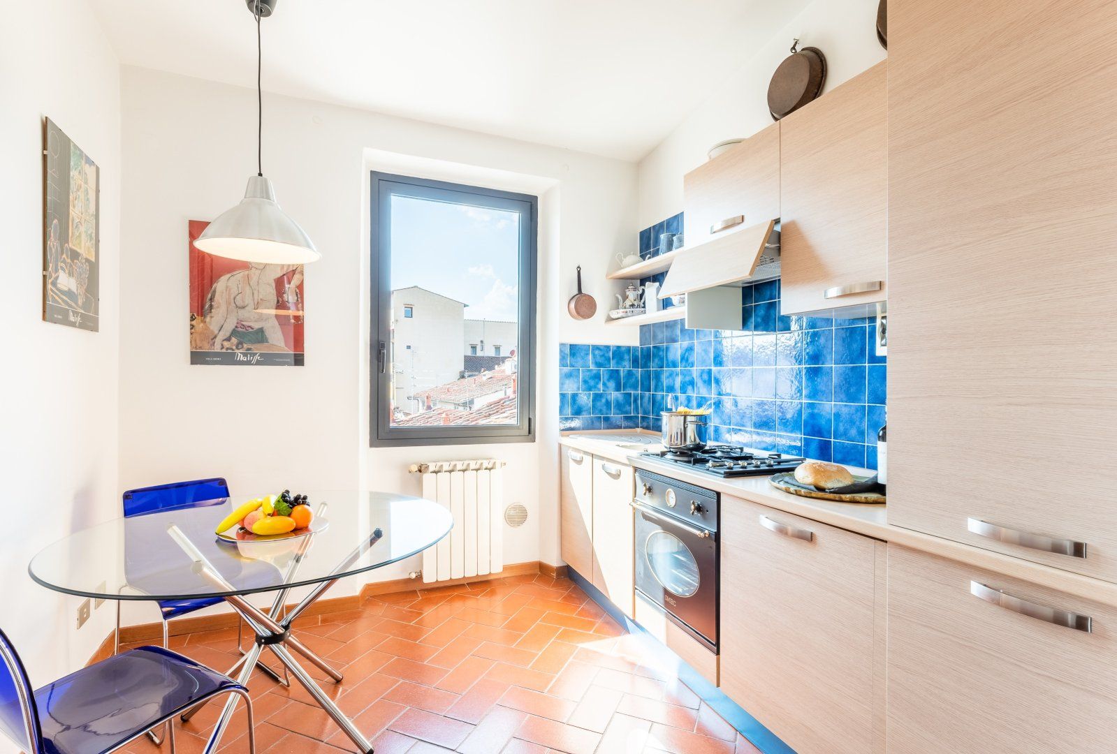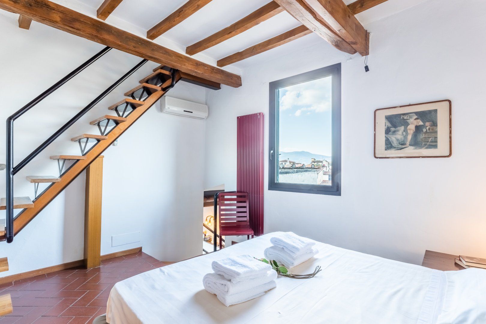 You’ll find this top floor apartment in Florence’s ultra-cool San Frediano neighbourhood. Inside, the living area is soothing yet chic with its soft blues and light greys. We love how the modern art deco chairs, brimming bookcase, antique mirrors and crystal chandeliers slot right in amongst the terracotta tiled floors and high beamed ceilings. Views of Florence are framed by the windows, sitting on the walls like works of art – you can find similar masterpieces in the Palazzo Pitti just across the road. If you can sacrifice a lie in – a hard decision to make with beds this comfy – Florence’s headline landmarks are mere minutes from your apartment. And that’s not to mention the eight Michelin-starred restaurants dotted about the city. Before dusk falls, head home to your roof terrace with a bottle of something fizzy. The panoramic views of the city beneath a pastel sky are certainly something to write home about.