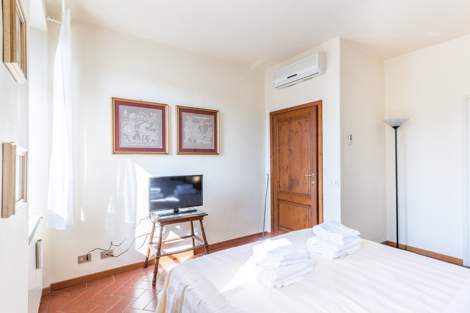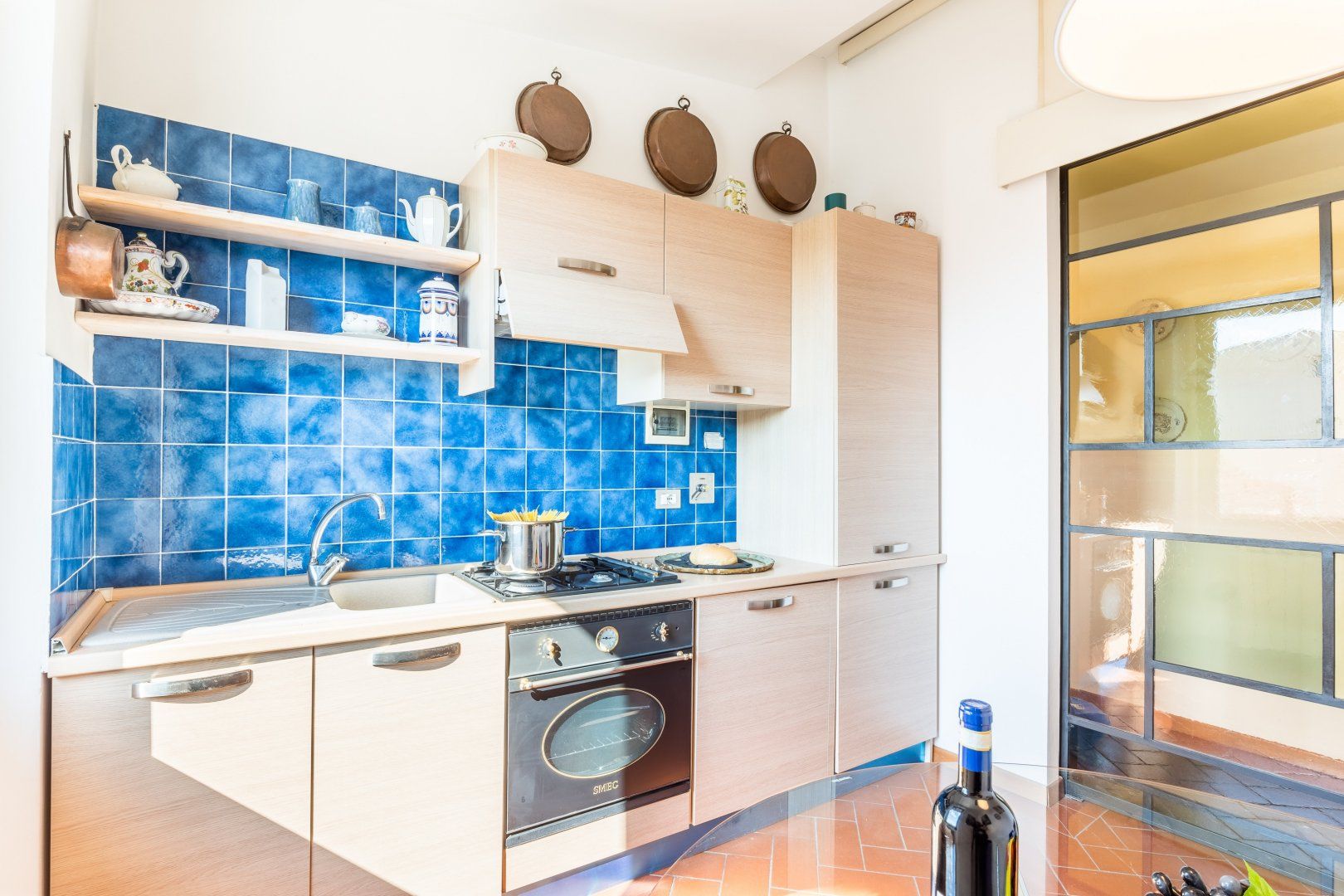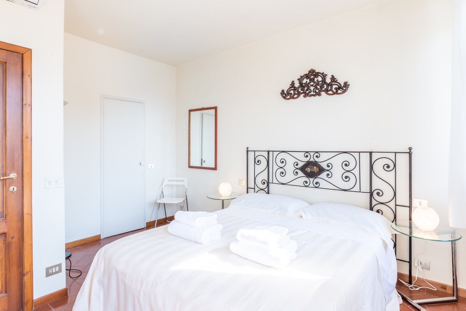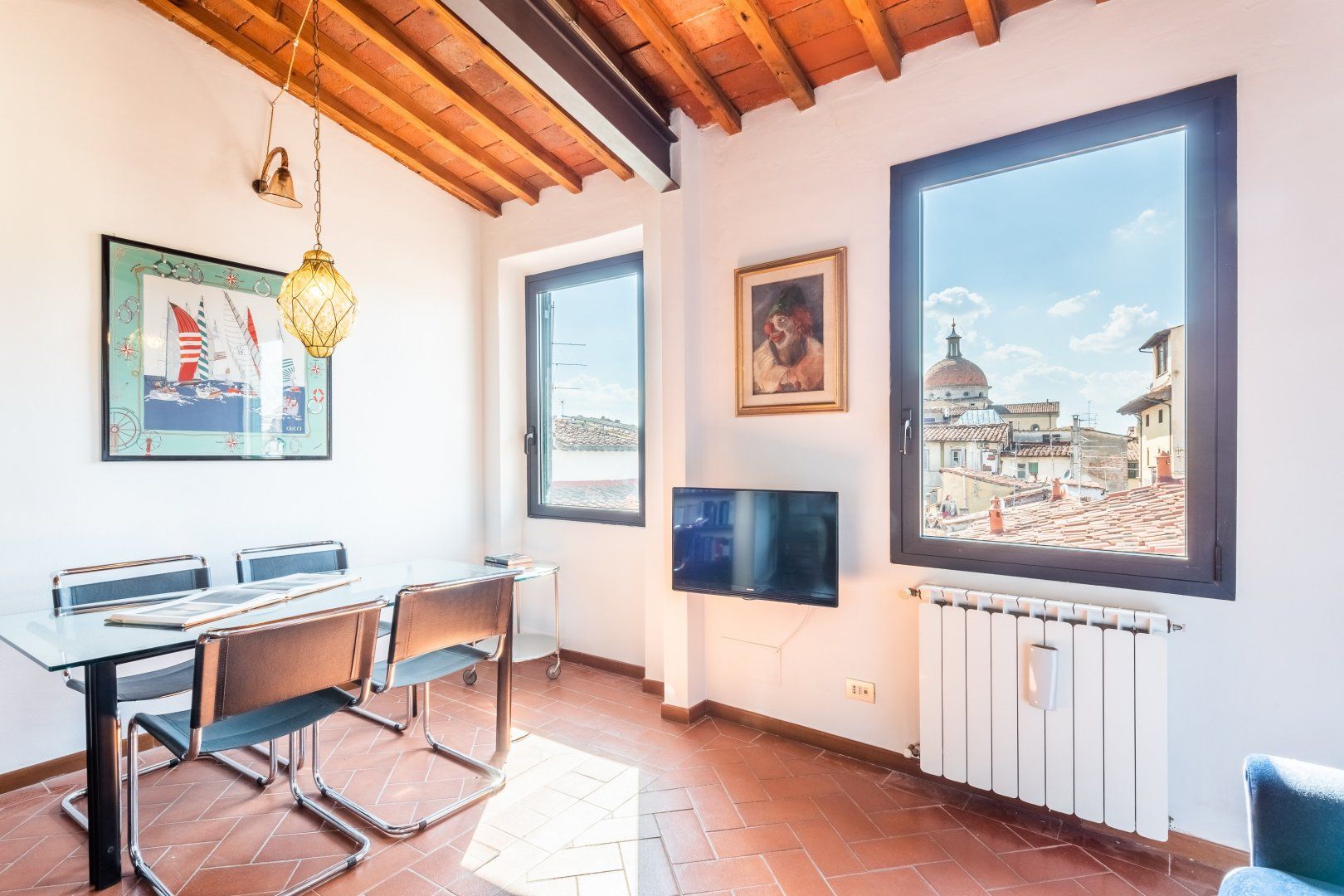 You’ll find this top floor apartment in Florence’s ultra-cool San Frediano neighbourhood. Inside, the living area is soothing yet chic with its soft blues and light greys. We love how the modern art deco chairs, brimming bookcase, antique mirrors and crystal chandeliers slot right in amongst the terracotta tiled floors and high beamed ceilings. Views of Florence are framed by the windows, sitting on the walls like works of art – you can find similar masterpieces in the Palazzo Pitti just across the road. If you can sacrifice a lie in – a hard decision to make with beds this comfy – Florence’s headline landmarks are mere minutes from your apartment. And that’s not to mention the eight Michelin-starred restaurants dotted about the city. Before dusk falls, head home to your roof terrace with a bottle of something fizzy. The panoramic views of the city beneath a pastel sky are certainly something to write home about.