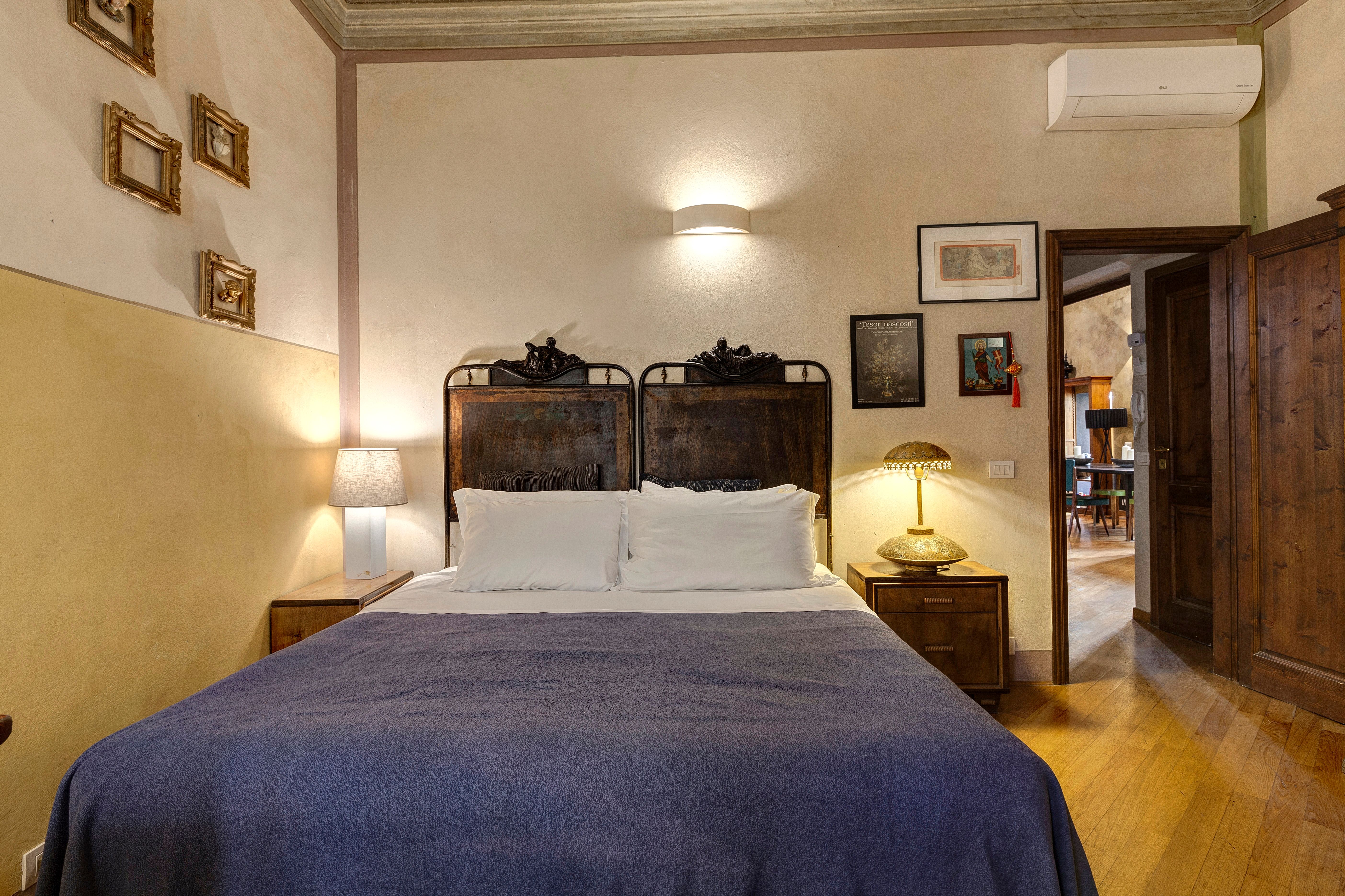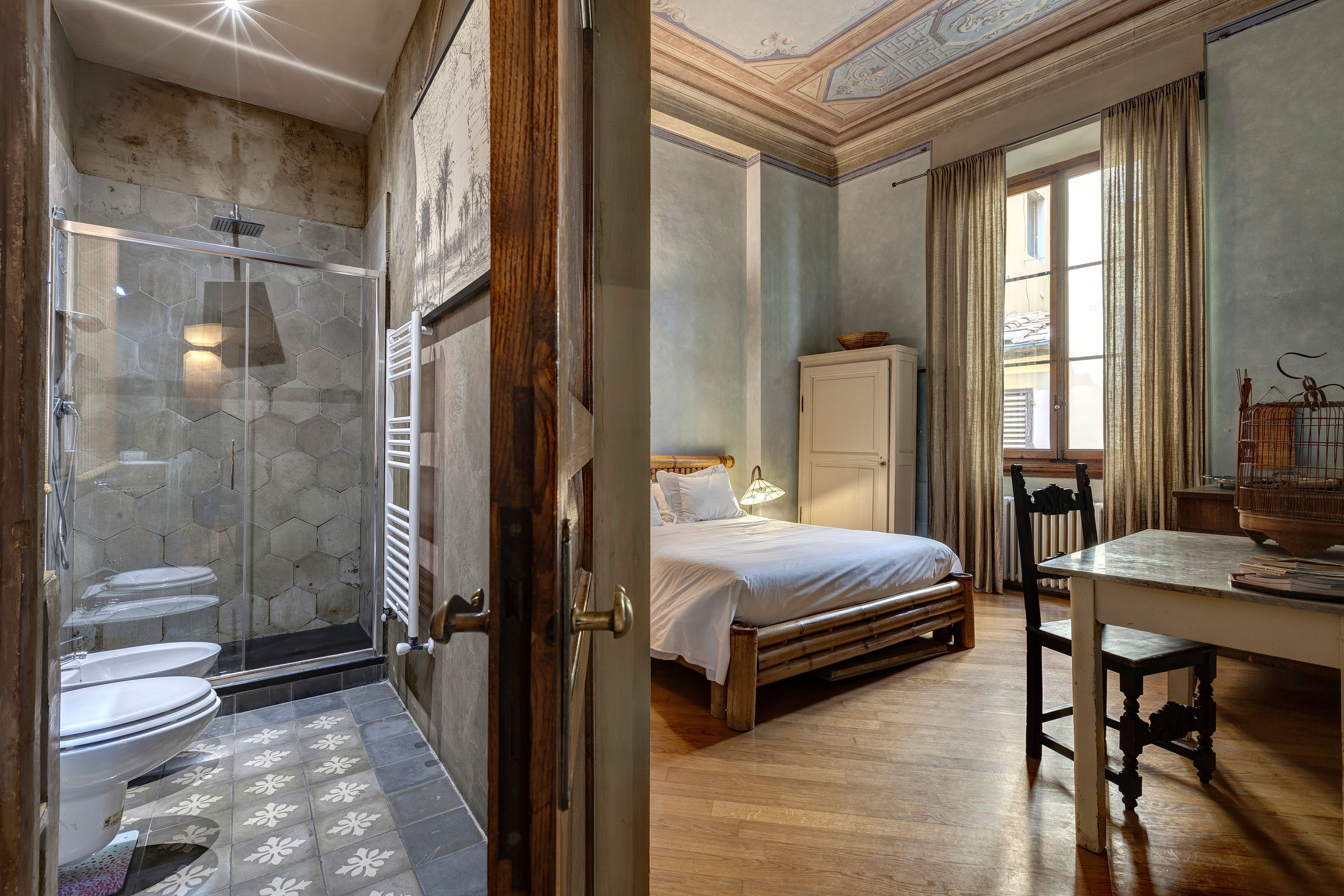 Housed in a historical building, just a stone’s throw from the Piazza di Santa Croce, this apartment mixes original architectural fixtures like double-height ceilings with antique furnishings, intricate frescoes and the occasional swipe of colour. We were particularly fond of the Venetian plaster walls and the king-size bed dating back to the 1800s.