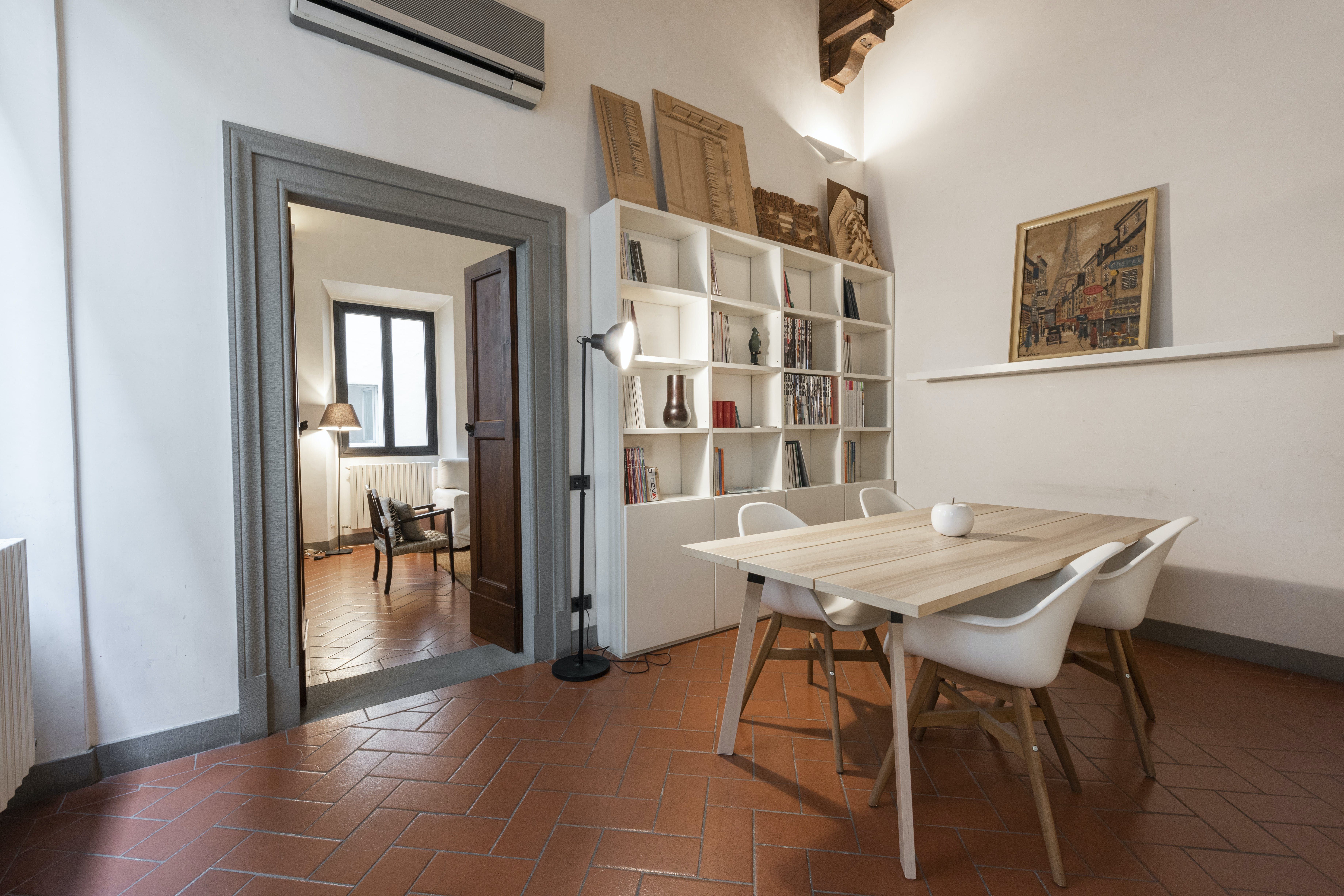 Gather together for sociable breakfasts in the dining room as you peruse the books here over an espresso and spend evenings curled up on the sofas in conversation over a glass of Italian wine. At night, the pared-back bedroom is ready to ease you into a dreamy night’s slumber, certain to leave you rested and raring to go for another day of Florentine adventure.