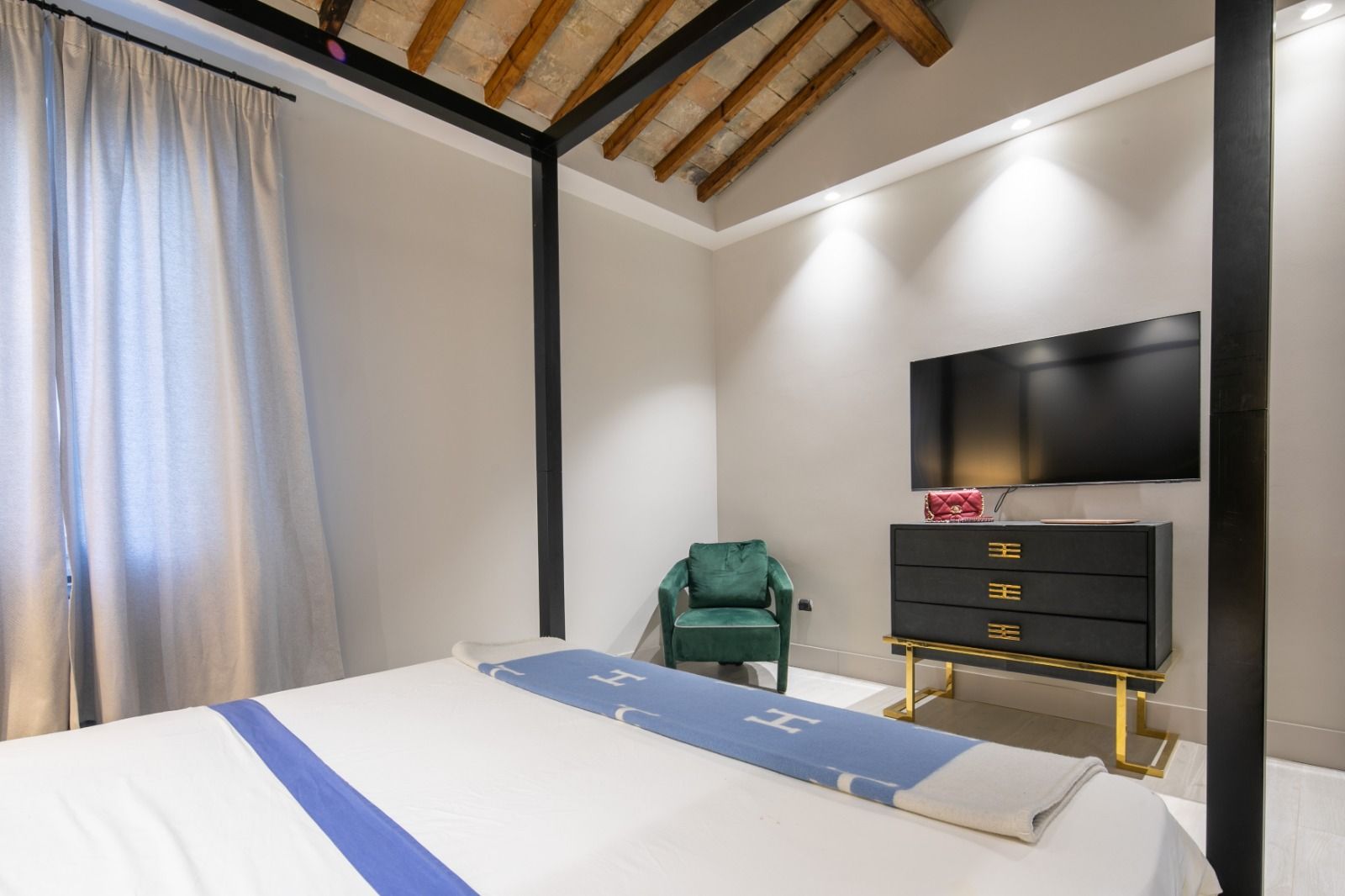 In the heart of Florence, you’ll find this apartment opens its doors to a refreshing city base. There are two private terraces, a barbecue and a Jacuzzi – perfect for long soak after a day of exploring. Inside, the rooms are well suited to families and groups in search of space to rest, relax and savour quality time together. Weekly housekeeping is provided and your host can help organise a range of extra services – including spa treatments and excursions. You’ll also be perfectly placed for explorations across the city. From here, it’s a short walk to Ponte Vecchio, the Duomo and the Uffizi Gallery.