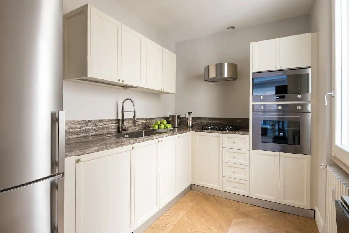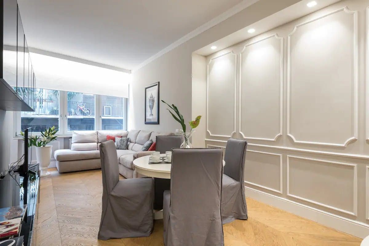 Elegance meets comfort in this bright apartment located just across from Florence’s historic Ponte Vecchio. From its parquet flooring to its detailed wall panelling and contemporary furnishings, this home oozes subtle sophistication at every turn. Snuggle up on the sofa with a glass of Italian wine after a day of sightseeing or gather around the smart dining table for a celebratory feast cooked up in the sleek kitchen.