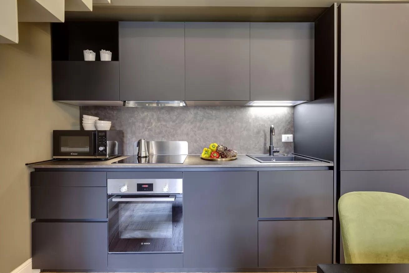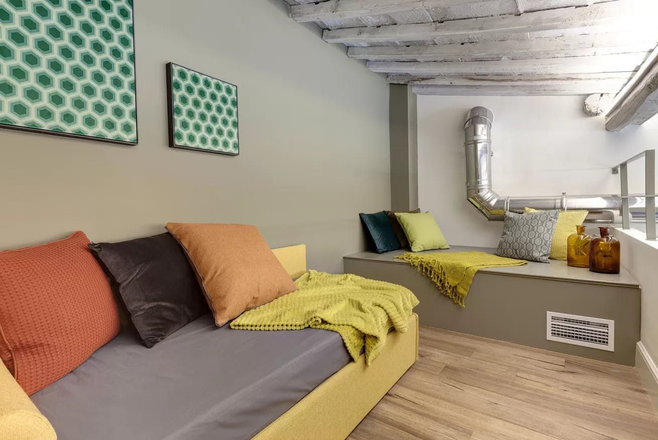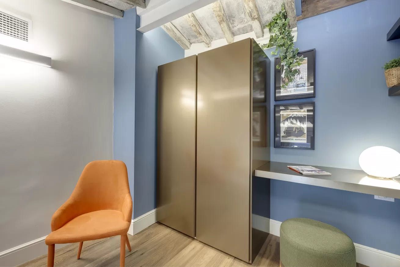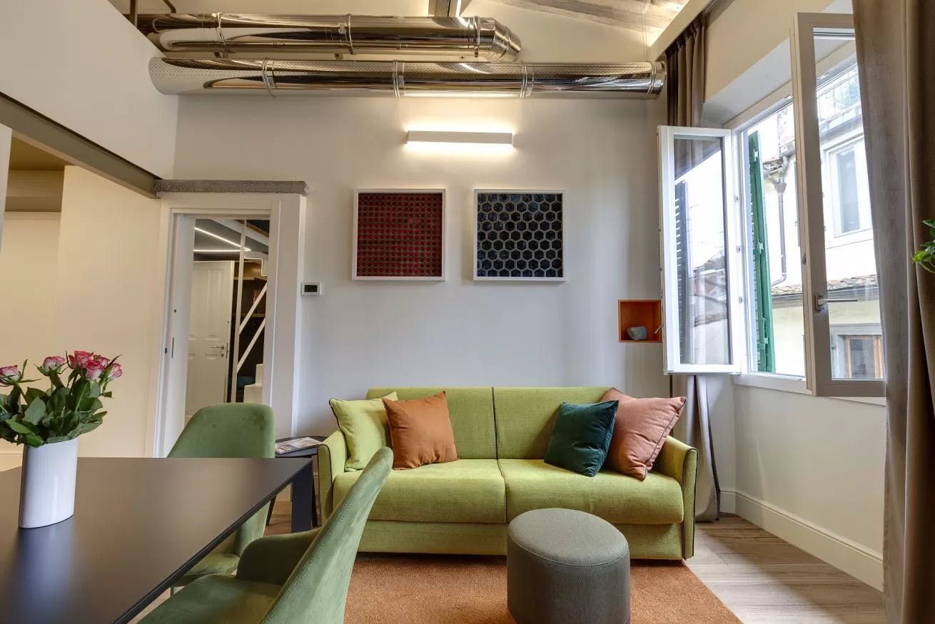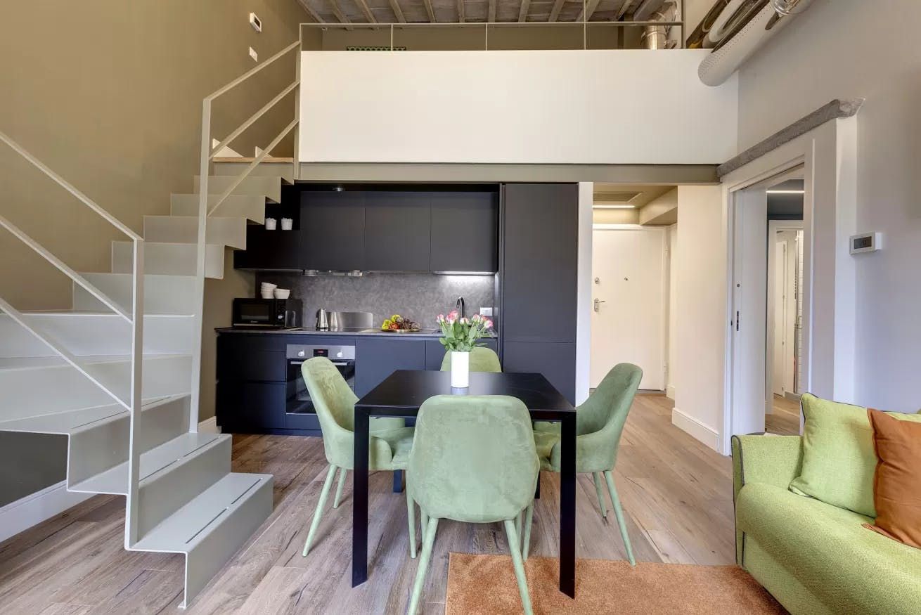 With views of the narrow Tuscan streets below, this sleek home’s interior is as pretty as the renaissance art the region is known for. Warm wood and shades of green sit in sharp contrast with the black of the kitchenette, and pop against the white that dominates most of the rest of the space. It’s modern and efficient, and for dreamers, the mezzanines will feel like creative hideaways in which to really flex the artistic muscle.