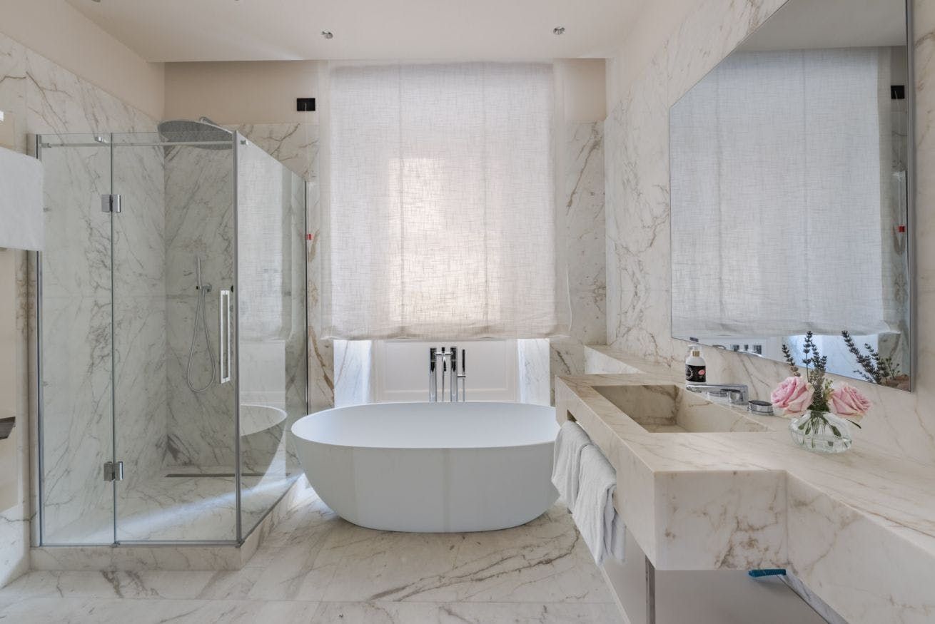 Step out the door and straight onto Piazza della Signoria at this apartment in the heart of Florence. Home to the Fountain of Neptune and a replica of the famous David statue, this is one of the busiest squares in the city, making it an ideal base for sightseers. You'll want to pack earplugs, though – a location as central as this doesn't come noise-free. The traditionally-styled living room offers piazza views and sumptuous seating. Our favourite features are the lush soaker tub and the communal terrace, both excellent spots to unwind after a busy day. The kitchen is a little small here, but that's no bother, as nearby restaurants are abundant.
