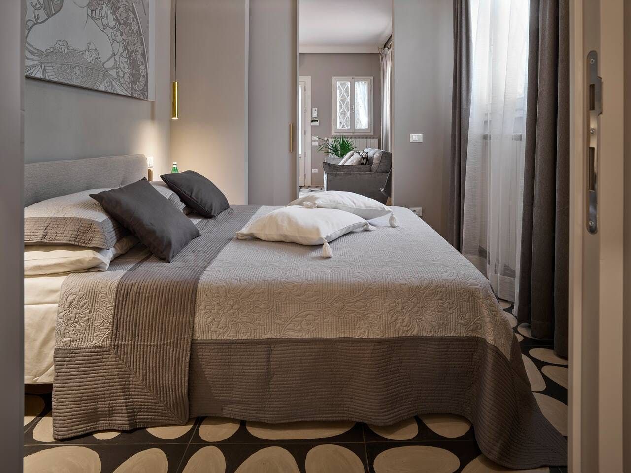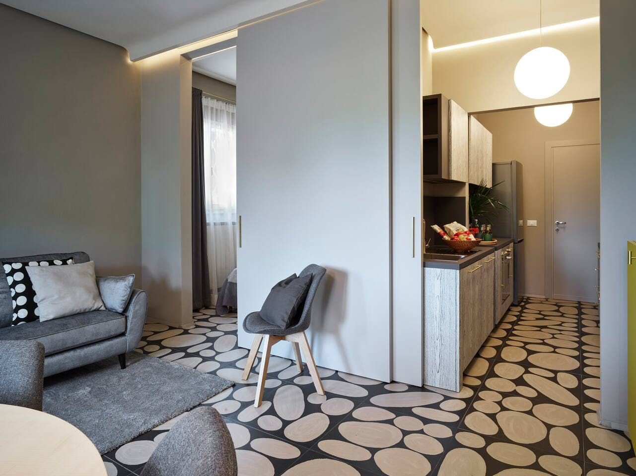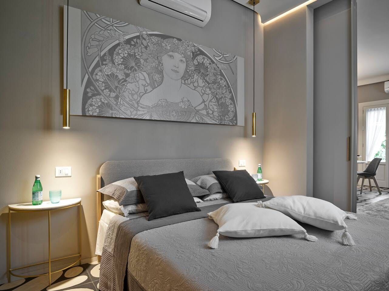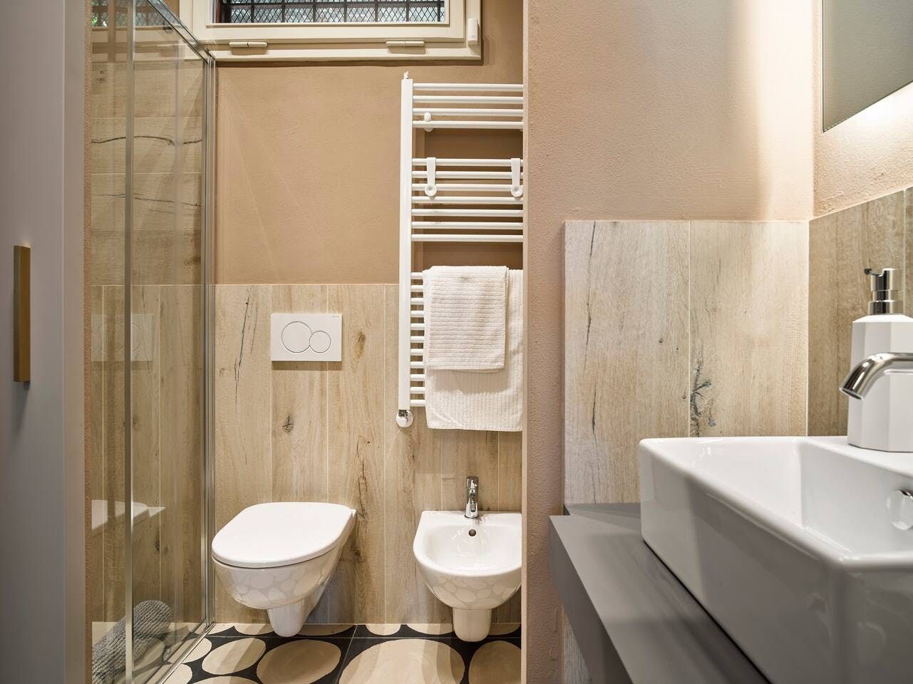 In contrast to this home's traditional façade with its pretty shutters – the inside draws inspiration from the 70s with its sunny yellows and retro furniture. We love the funky monochrome floors here. Outside, in the stylish, private garden, you'll find sun loungers, as well as a hot tub – perfect for watching the sunset with a glass of Prosecco, then enjoy dinner under the lights of the gazebo. This home has a fantastic location in one of Florence's most sought-after residential areas. Piazzale Michelangelo, a sixteen-minute stroll away, is situated on a hill on the south bank of the Arno River – it has stunning vistas of the city and a bronze replica of Michelangelo's David. Accademia Gallery, which displays the actual statue, as well as Botticelli's Madonna and Child, is a twenty-minute saunter, while the Ponte Vecchio and Palazzo Pitti are both under a thirty-minute walk.