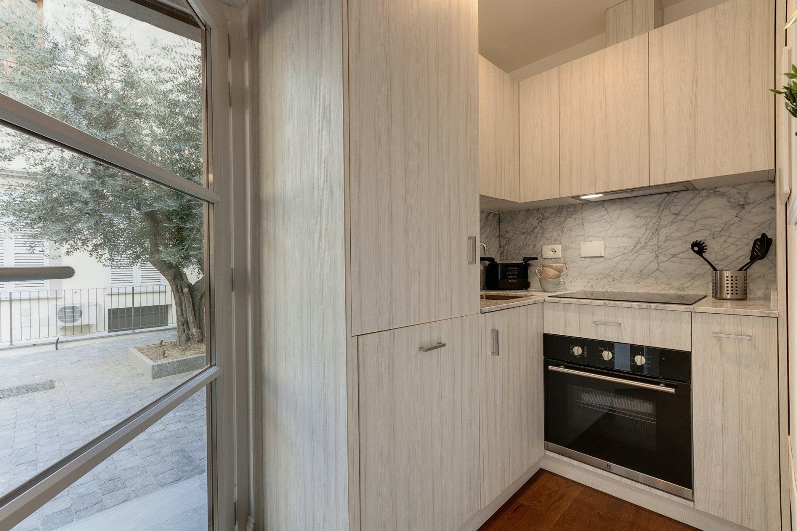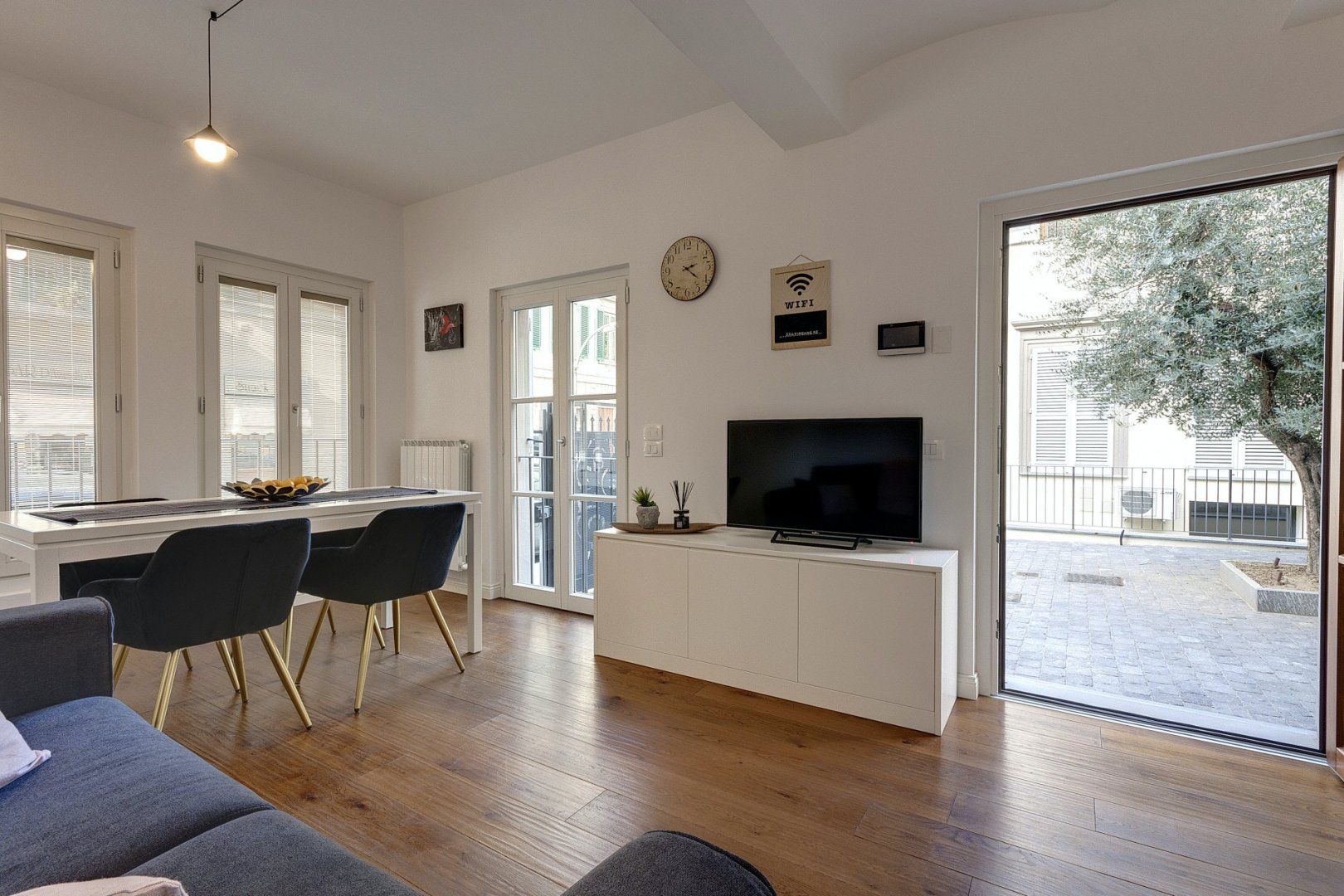 This pretty apartment makes for a wonderful base for city breaks in Florence. It’s bright and welcoming, with huge windows that flood the space with light and lead into the sheltered courtyard outside. After a long day exploring the city, it’s lovely to be able to open the doors and bring the outside in.