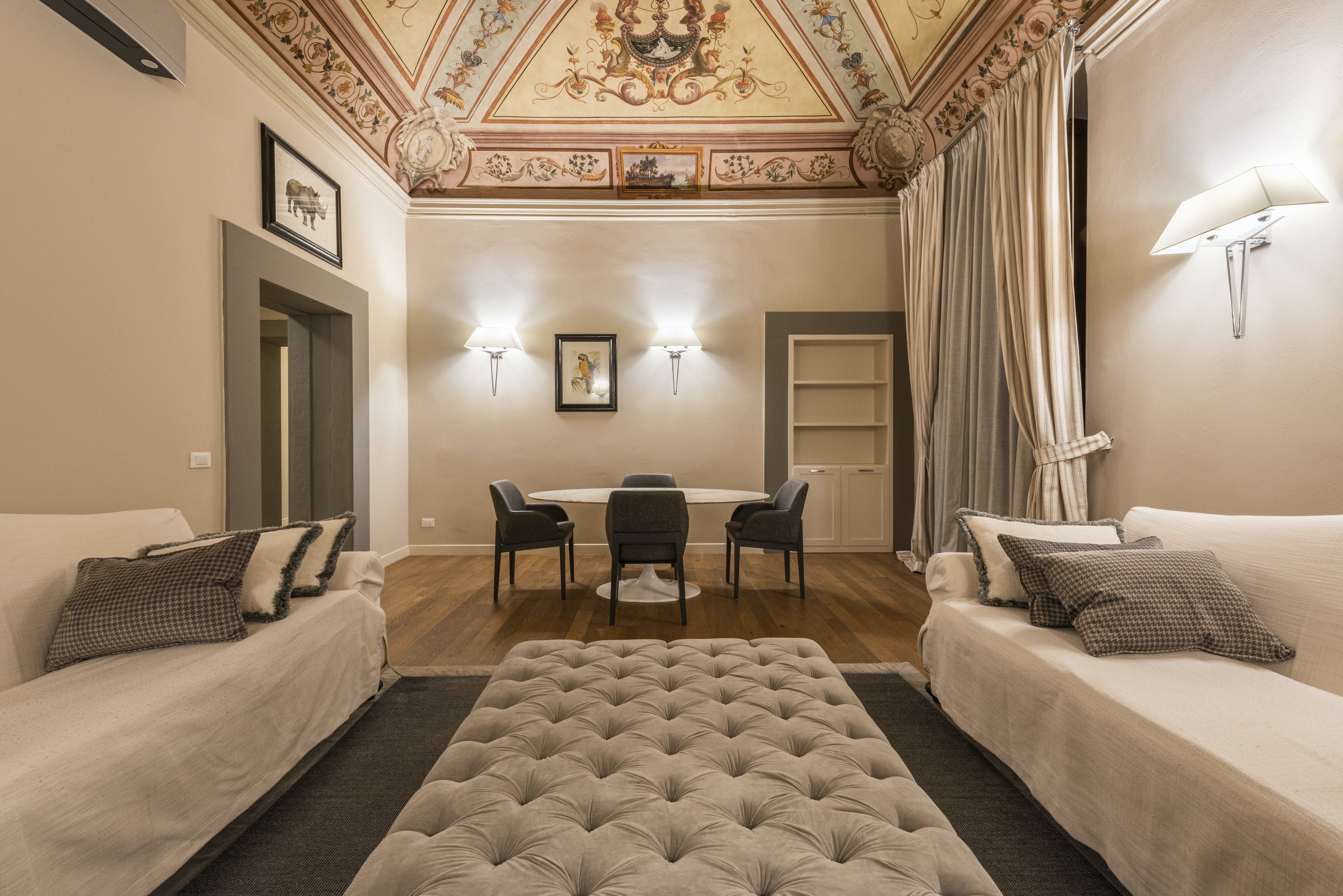 Nestled in a beautiful historic building in the heart of Florence, this charming apartment exudes elegance and sophistication from every corner. Without doubt, the standout feature is the frescoed ceiling – to say it’s a work of art feels like an understatement. The detail is exquisite, and you’re likely to spend many hours lying back on the comfortable sofas, gazing up and simply admiring its beauty. Dressed in neutral colours and with a unique selection of animal artwork adorning the walls, this apartment will quickly become a calming haven to retreat to after a busy day exploring the picturesque city on your doorstep.