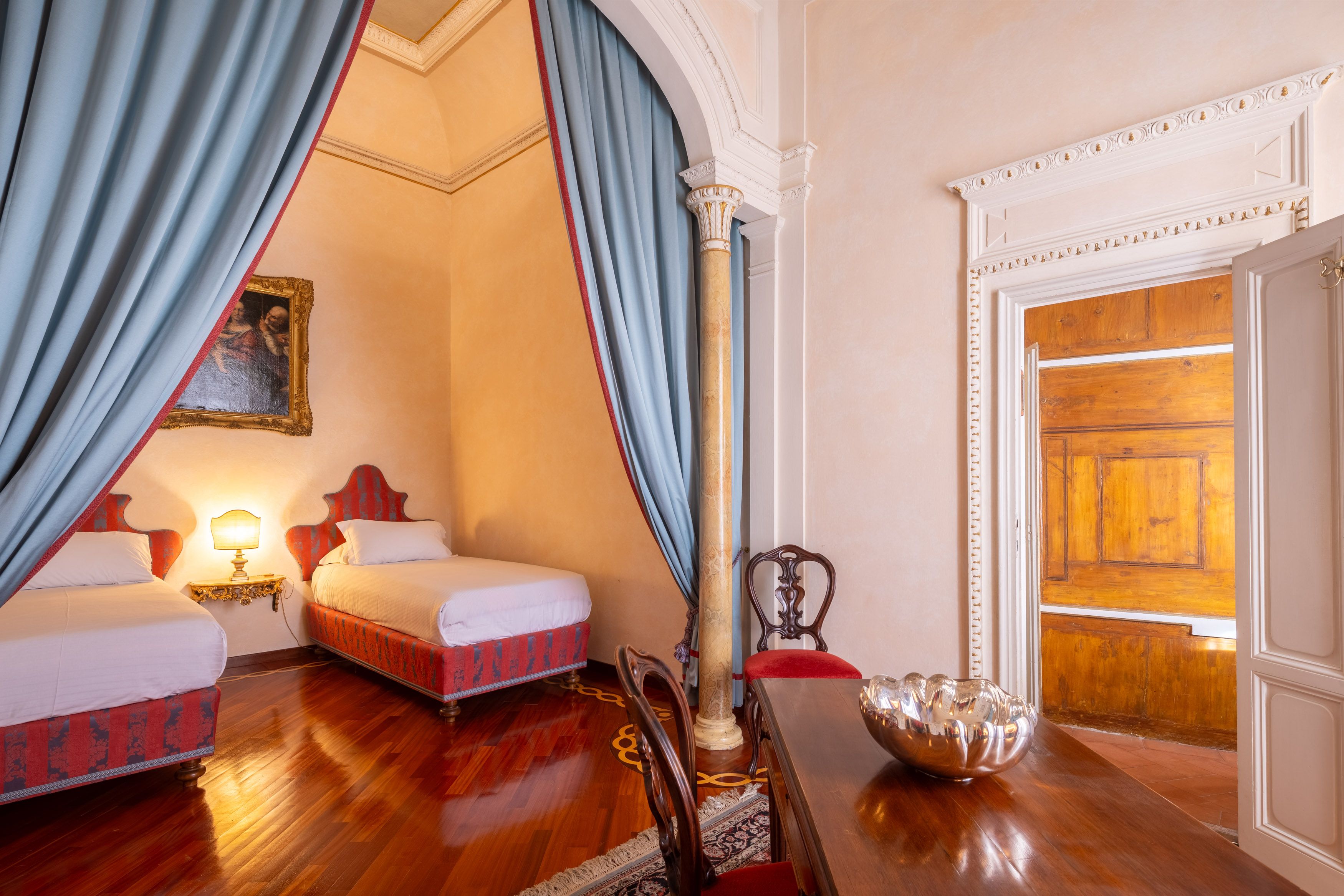 Step into centuries of Florentine elegance in this unique apartment set within a prestigious palace in the heart of Oltrarno. Built around 1470, every room tells a story, with grand frescoes, soaring ceilings and antique furnishings. Three lavish living areas, a formal dining room, and richly decorated bedrooms offer a truly regal experience. You’ll even enter through a majestic inner courtyard adorned with statues. While the kitchen and bathrooms feel compact and dated compared to the grandeur elsewhere, they serve their purpose – and you’re unlikely to mind. After all, it’s not every day you wake up surrounded by history, art and architecture this spectacular. This is a one-of-a-kind stay you won’t forget.