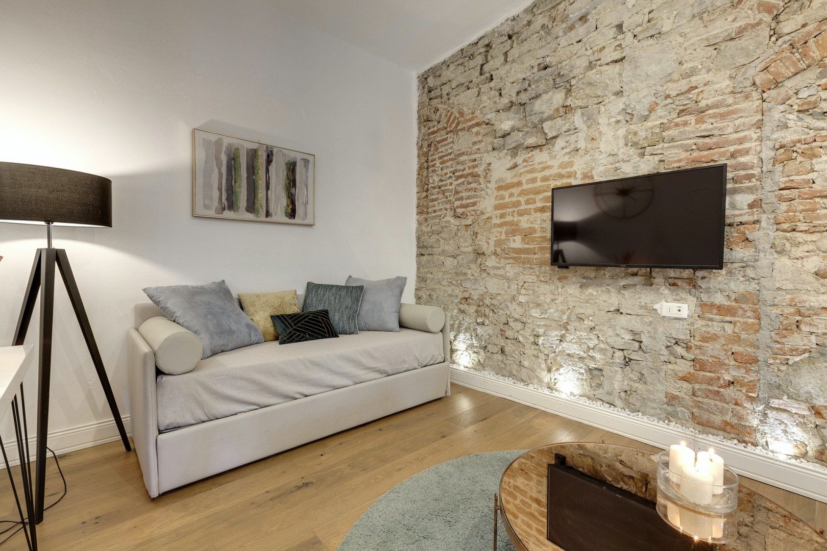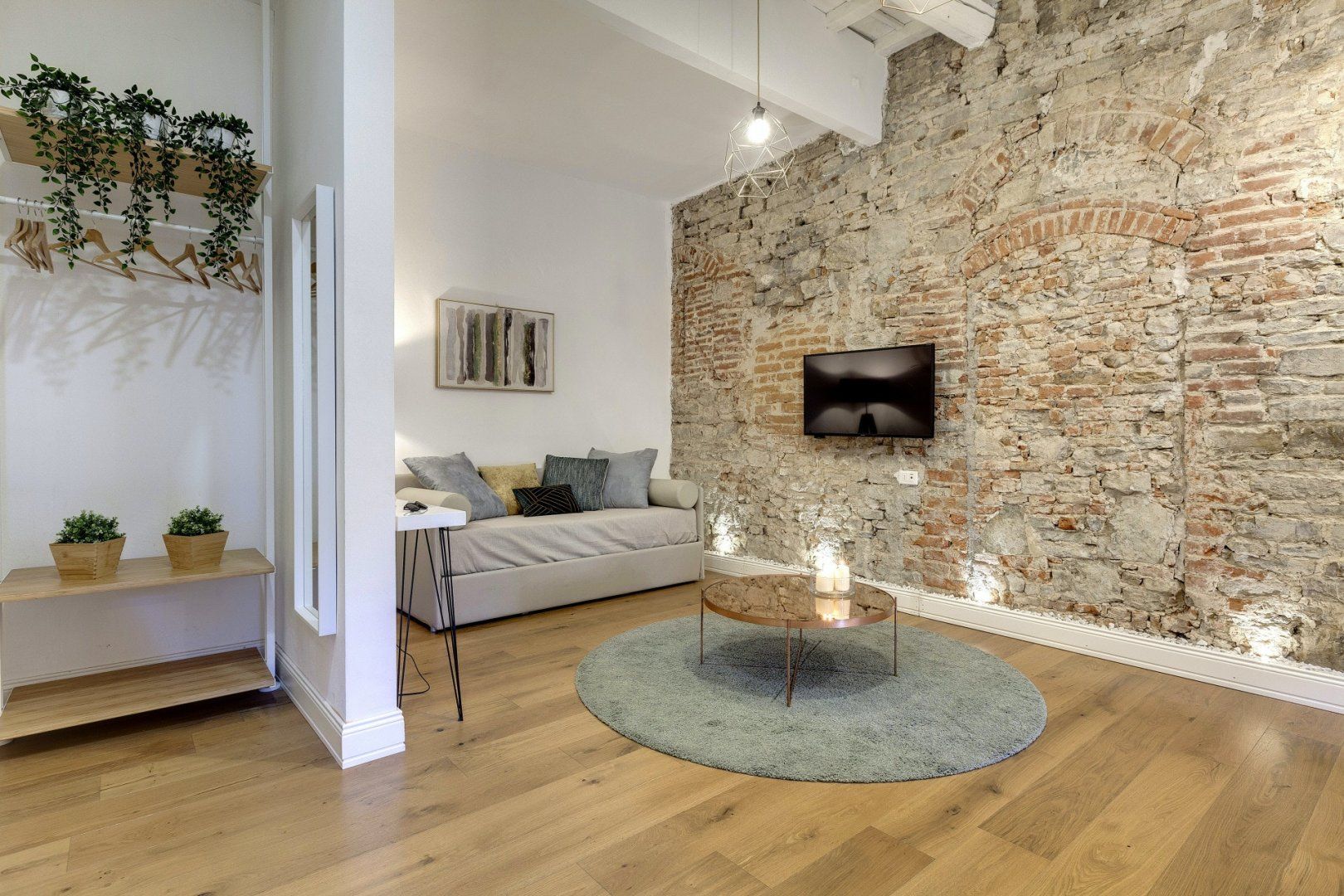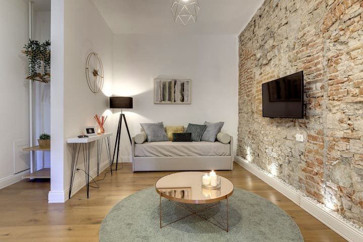 Snug and intimate, this stylish apartment oozes character. A stone wall faces into neutral tones and deluxe furnishings, lacing the home with an authentically Italian vibe. Suitable for solo travellers, couples or friend groups, it's a restful home in the heart of Florence.