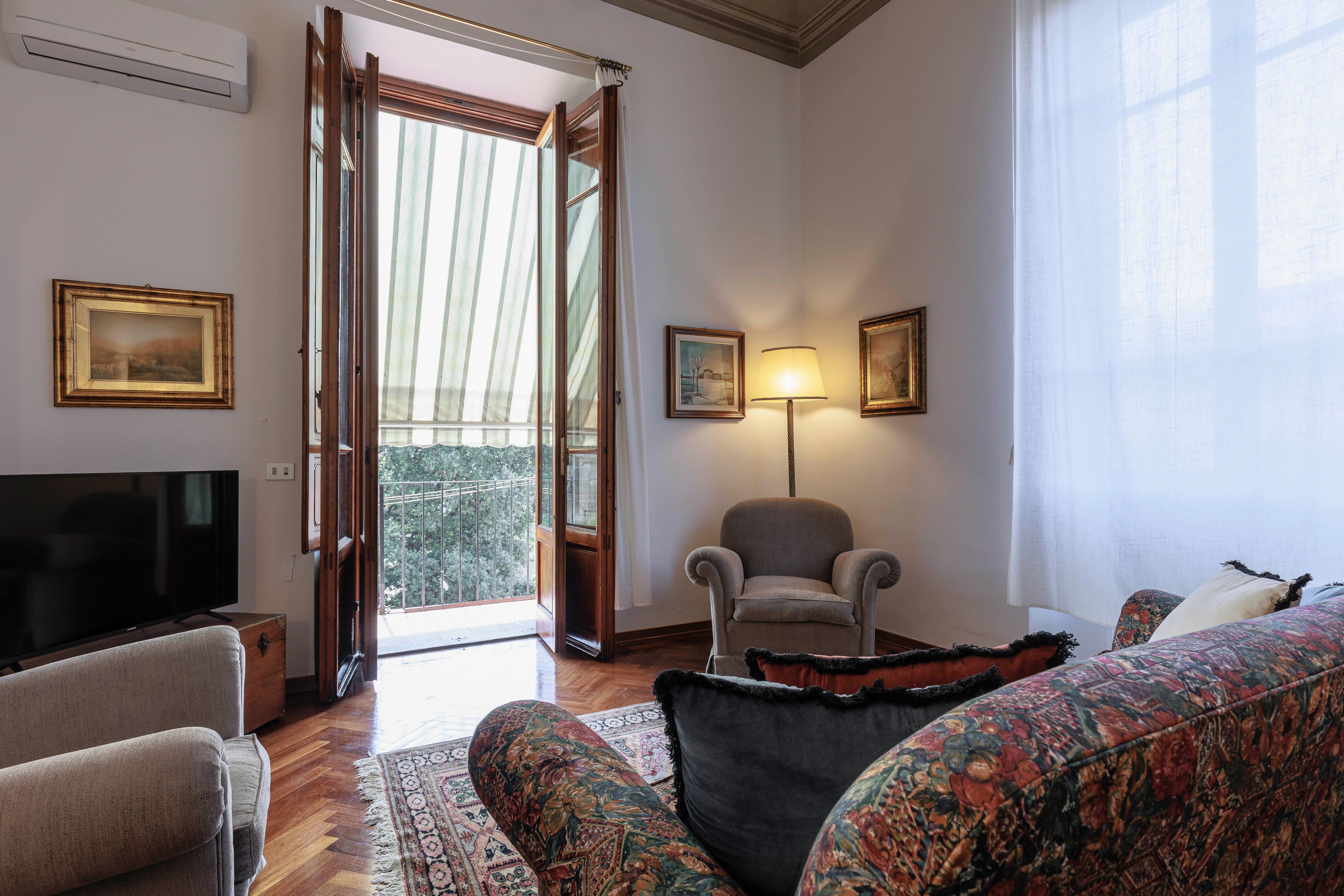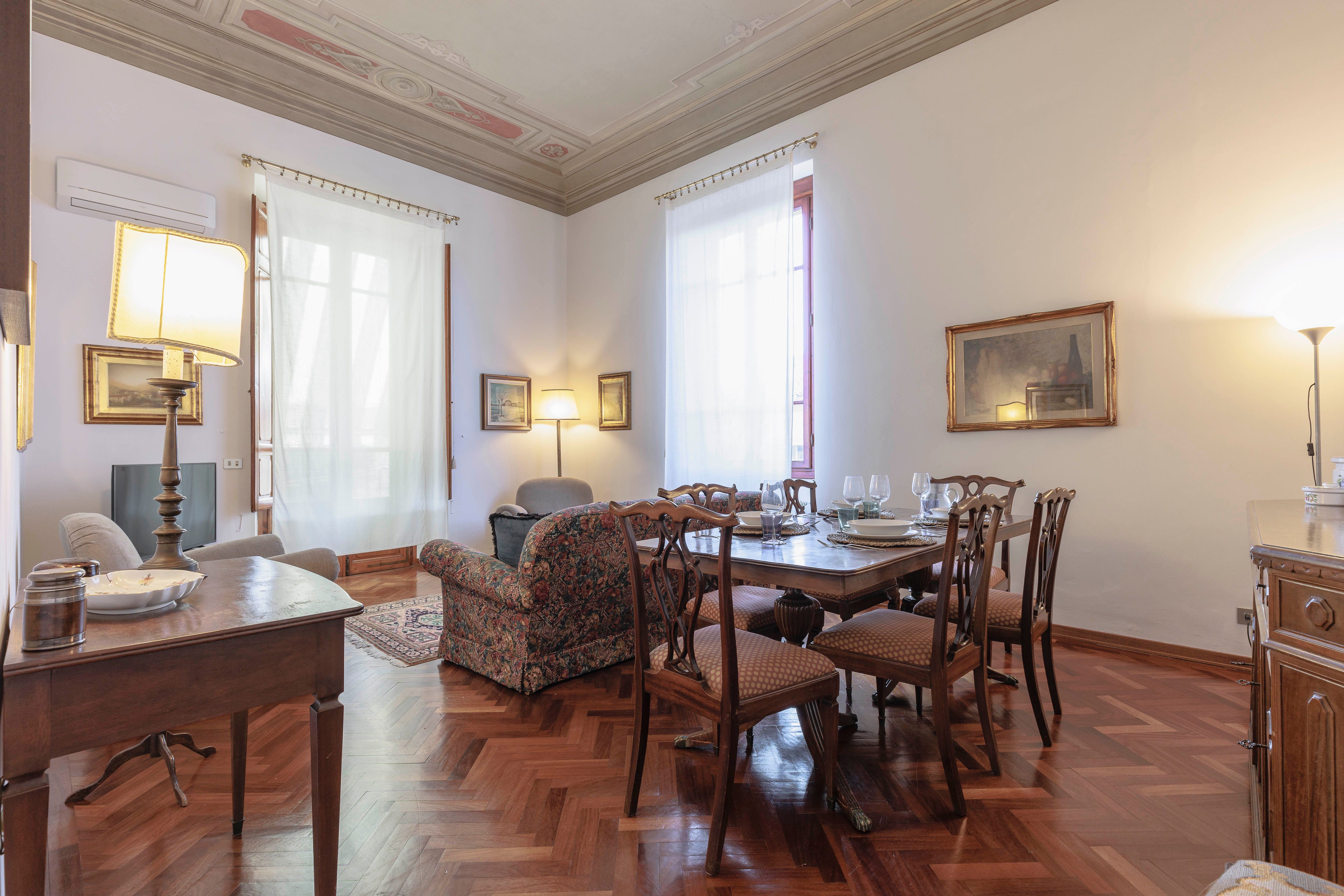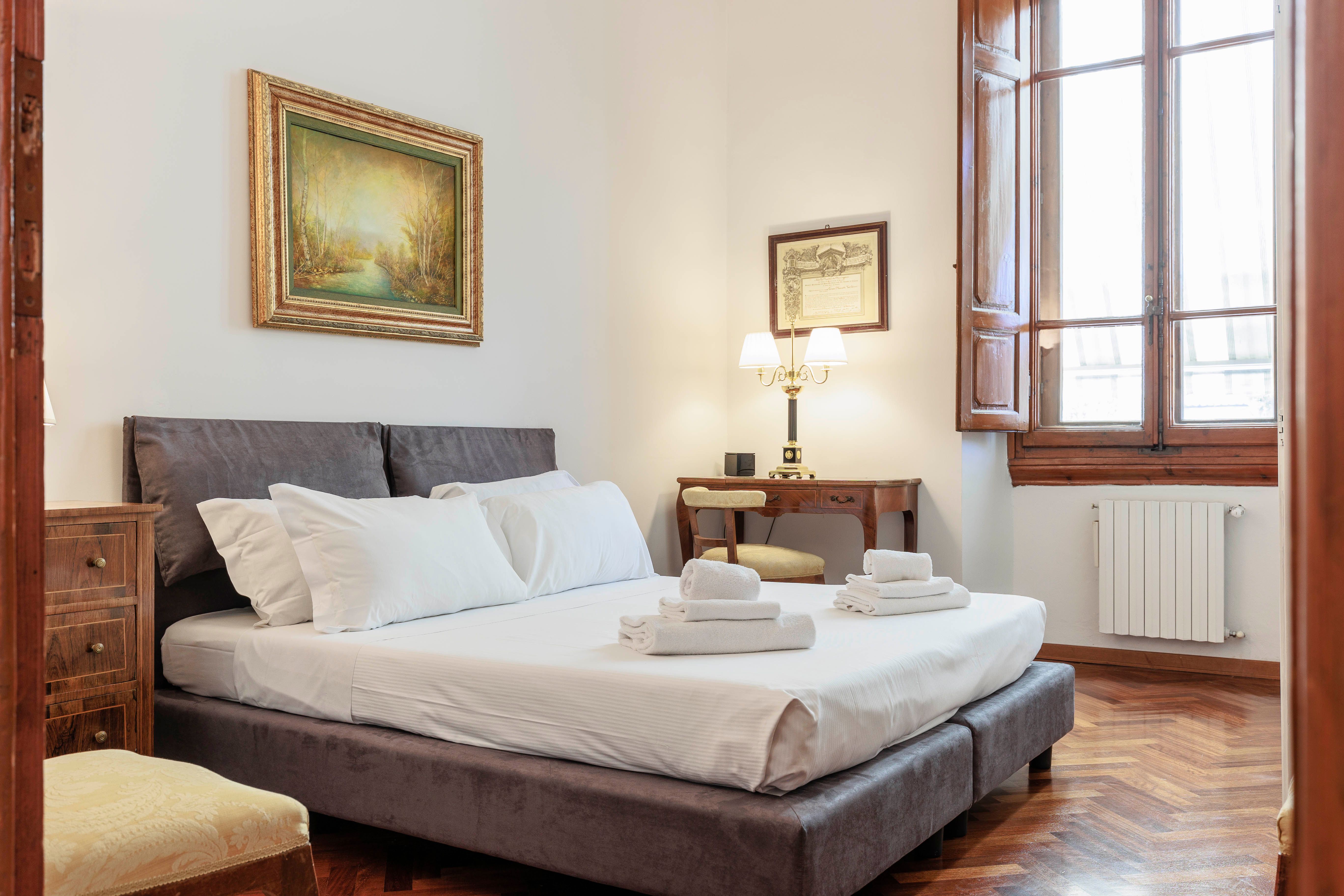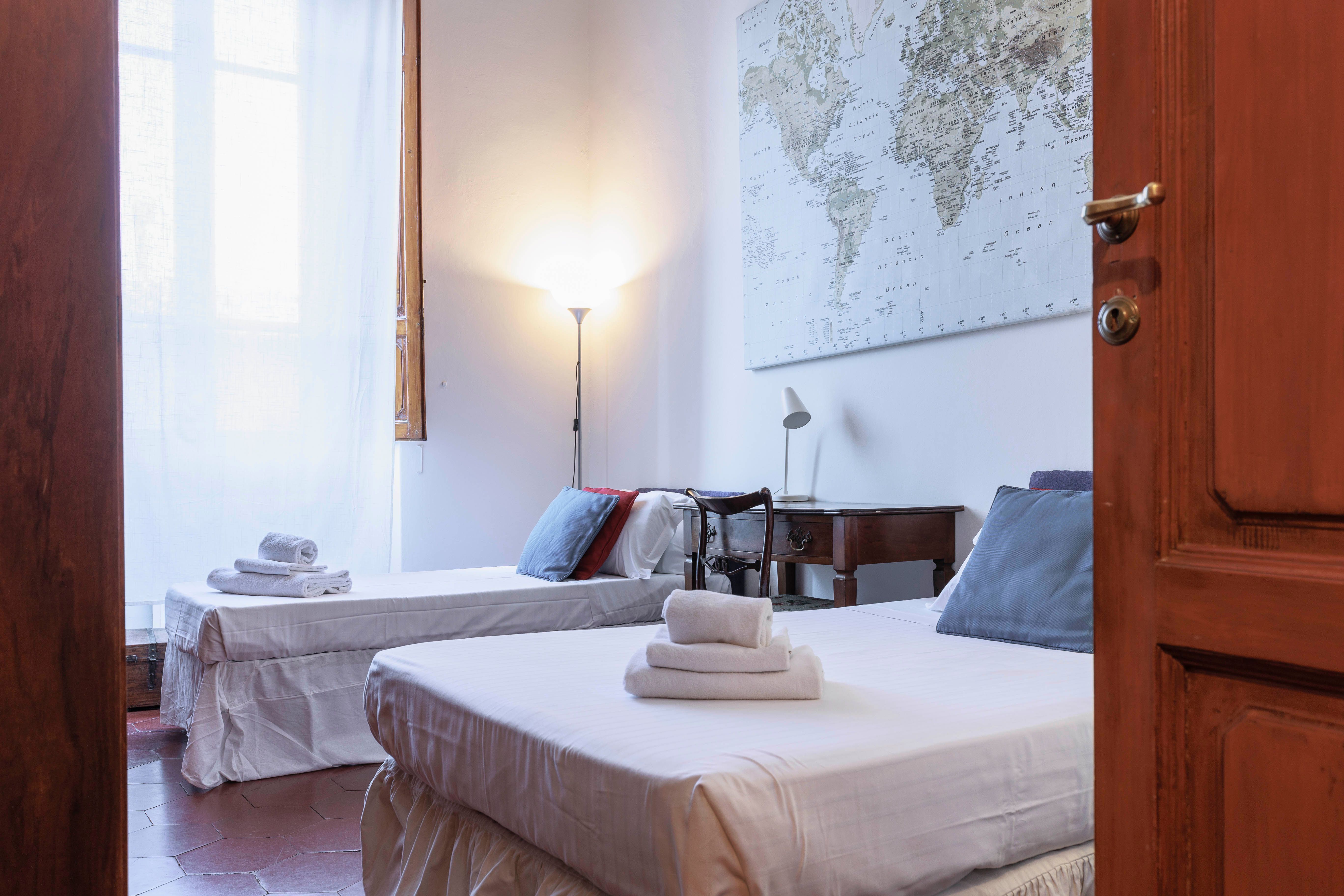 If your dream trip to Florence includes brushing shoulders with the locals, being within walking distance to tonnes of attractions, and staying in a quaint homestay, this could be the one for you. And, while the decor is a little dated in parts, the apartment has everything you could need for a fuss-free stay. With a desk for working, a balcony ripe for people-watching, and various bed setups, it would work well for business travellers and families hoping to be in the heart of it all.