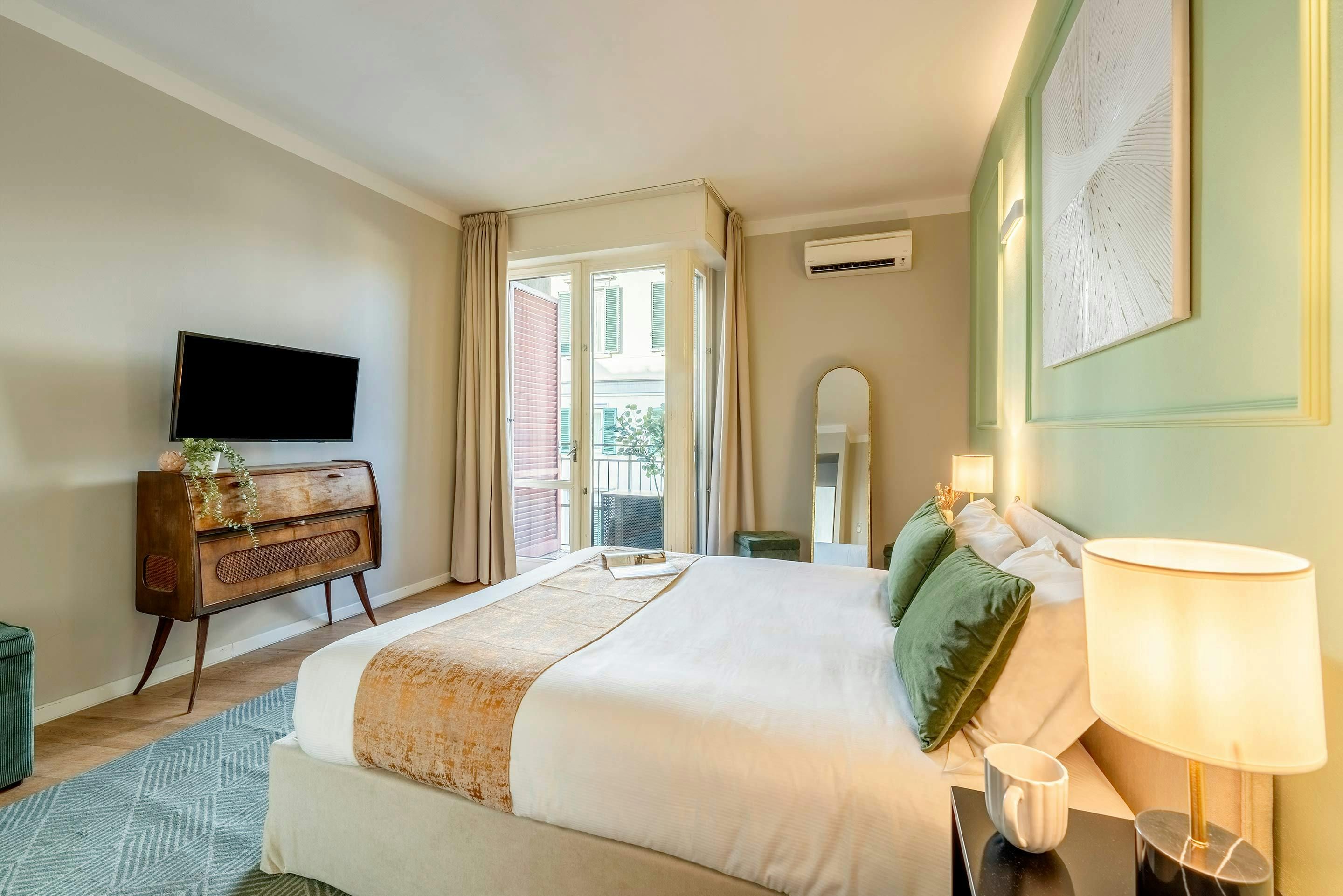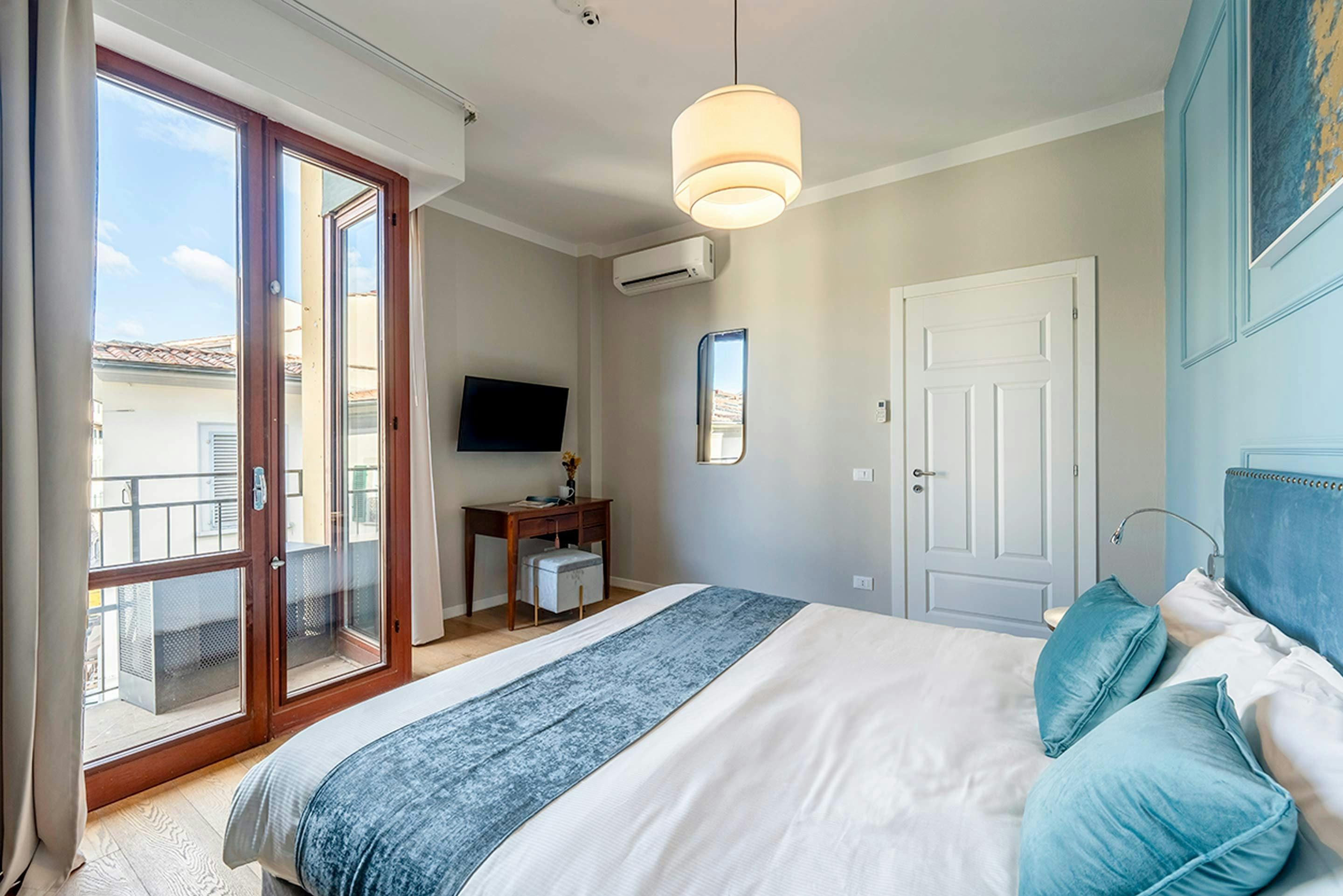 Marrying contemporary design with Italian flair, this apartment is a stylish base in the heart of Florence. The living space boasts modern artwork and a small kitchen. That said, with delicious eateries nearby, dining out will likely be on the cards. Three bedrooms and three bathrooms ensure there's plenty of privacy, too. However, the location is what makes this place a real star. A stroll in one direction will take you to Piazza della Signoria and the Uffizi Galleries. Head the opposite way to see the striking Basilica di Santa Croce and historic Teatro Verdi. Exploring on foot is a breeze here – it's perfect for those keen in the centre of the action.