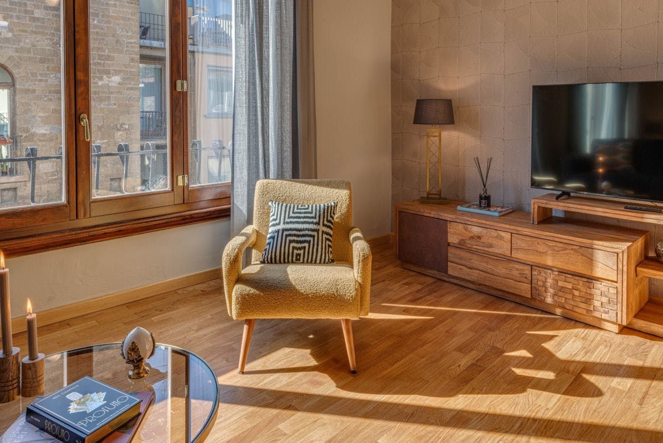 Just a stone’s throw from the banks of the River Arno and the beautiful Ponte Vecchio, this stylish apartment puts you in a prime position to explore Florence’s most fascinating historic sights.