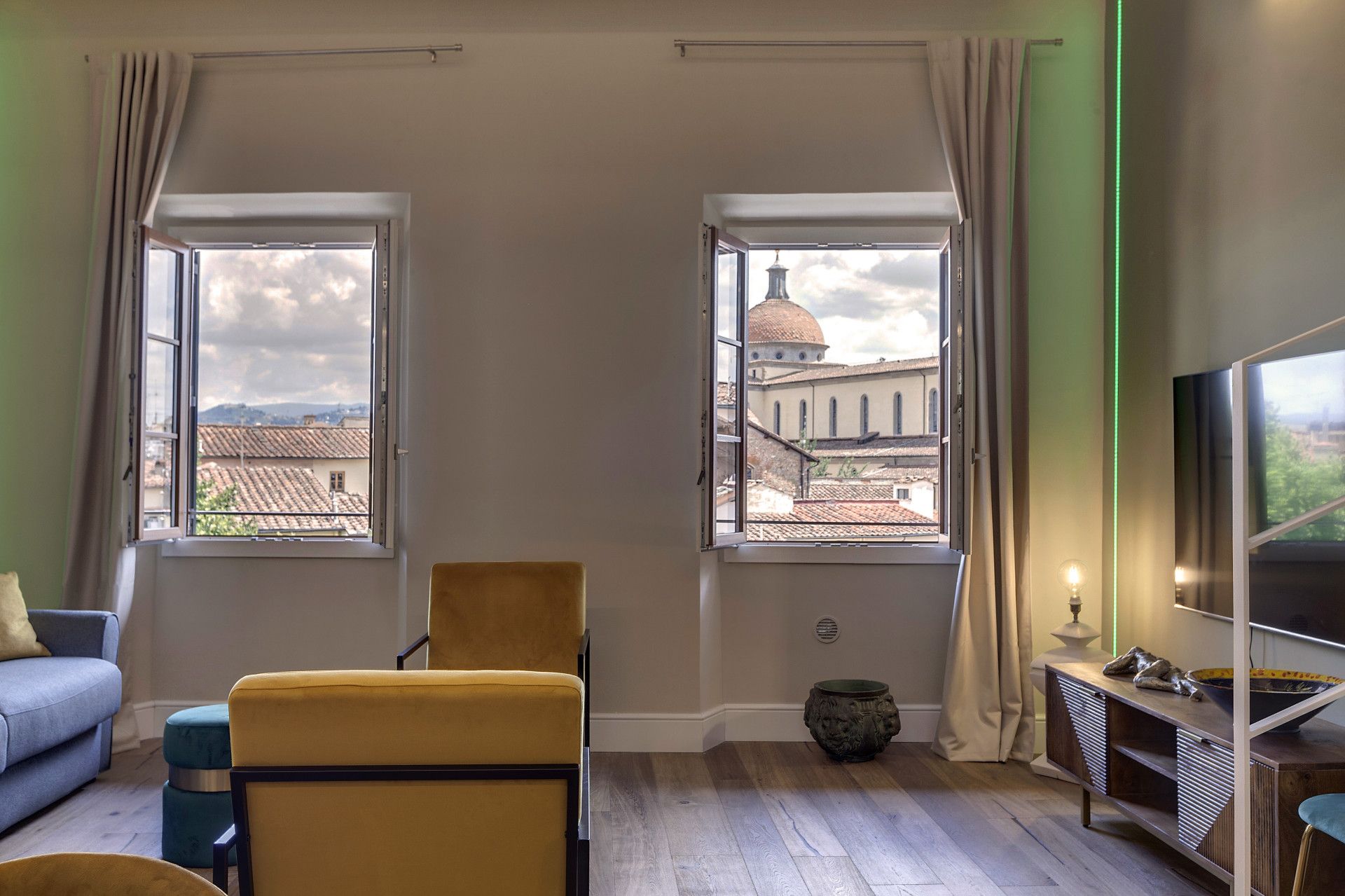 It feels like you can almost touch the Church of Santo Spirito from the windows of this apartment – we love the vistas here. You also get glimpses of the cathedral from the living room (which also sleeps guests seven and eight on a sofa bed). One bedroom is on a mezzanine, the second overlooks the same views while the third has a courtyard outlook. Located in the heart of the vibrant Santo Spirito district, you’ll be just a few steps from the square and the Boboli Gardens, while Florence Cathedral is within walking distance.