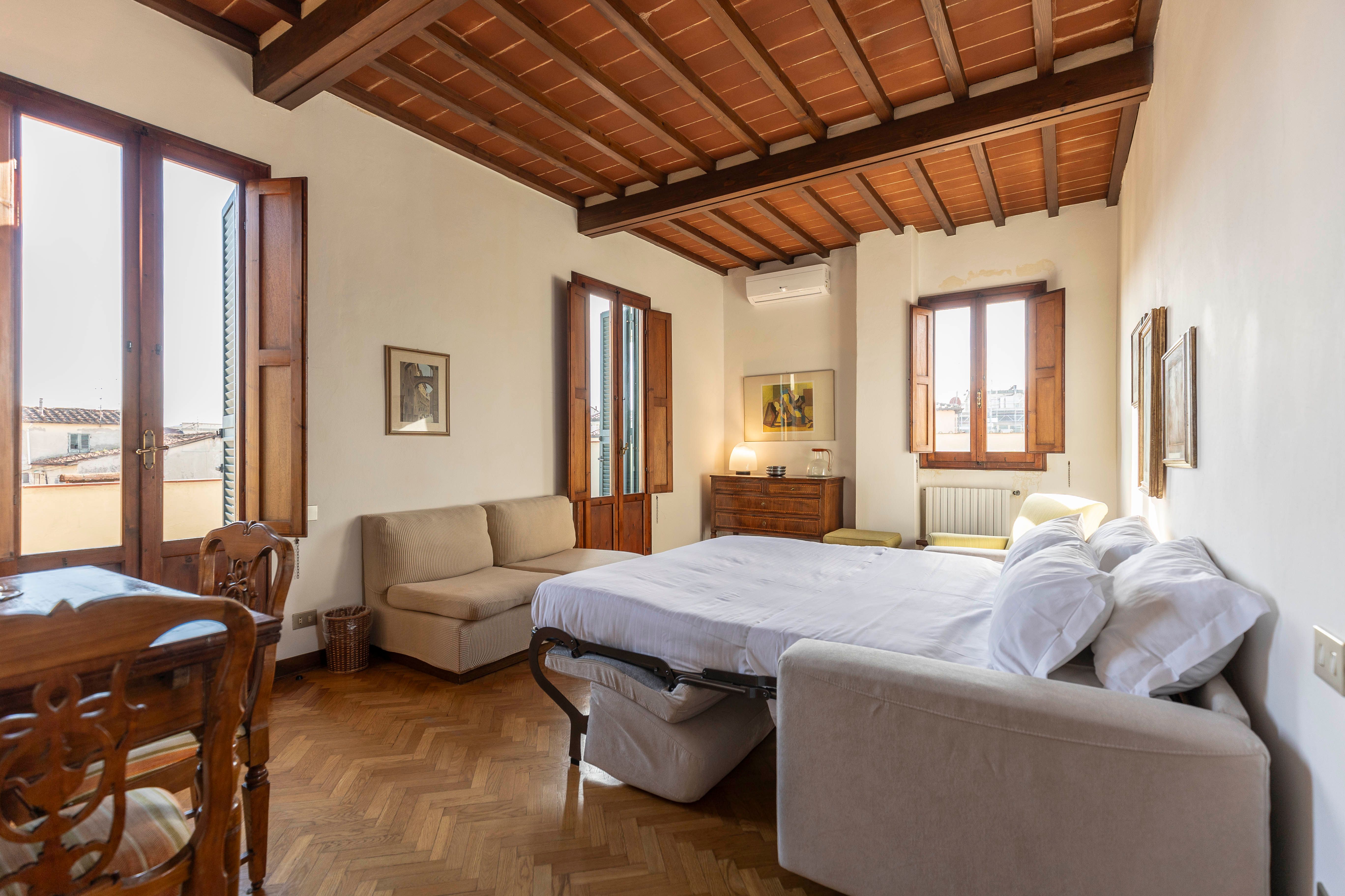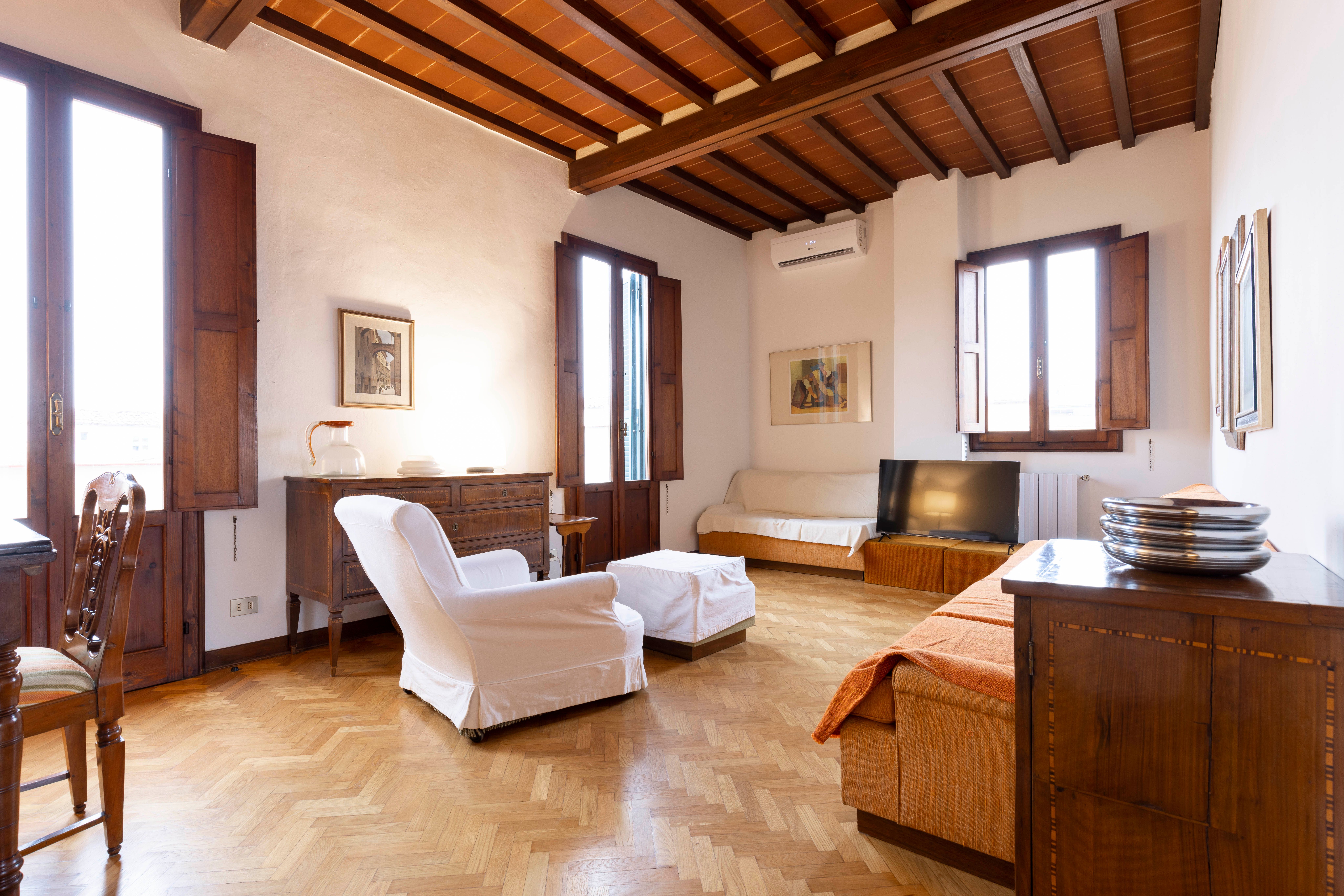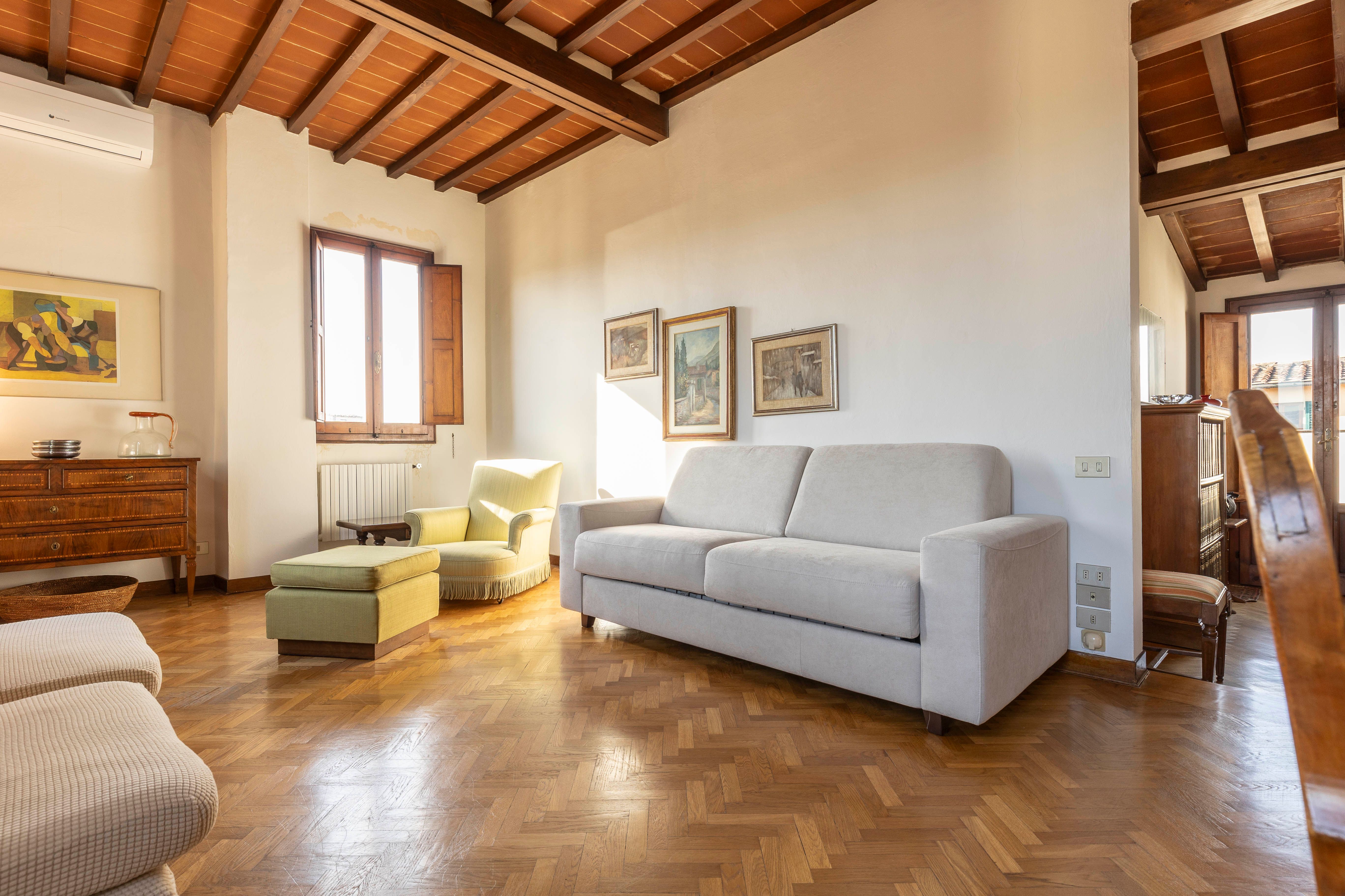 Fancy staying in a palazzo full of old Florentine flair? Step forward this two-storey, central penthouse with two private rooftop terraces to take it all in. Filled to the rafters with heirloom antiques, some of the interiors will feel traditional for some, but it’s all beautifully cared for. And there are all the modern-day comforts, including a large dining kitchen and two sitting rooms featuring a sofa bed for the last two guests. Set in the Santa Croce district, you’re within easy walking distance of the renowned Accademia Galleries, the historic Basilica of Santa Croce, and the iconic Piazza della Signoria.