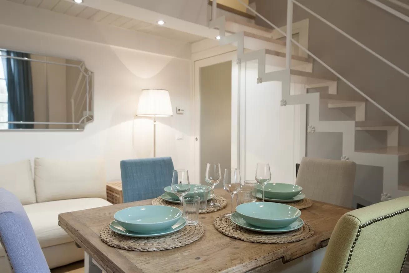 Tall ceilings, wood floors and minimalist yet stylish furnishings set the scene in this compact yet comfortable home. We love the beamed ceilings that add a touch of Old World charm here, as well as the carefully selected artworks on the walls adding a homey feel to the proceedings. The two bedrooms – one of which is up a flight of stairs on the mezzanine floor – are ready to drift you into a peaceful night’s sleep after a day of touring the city, while the bathroom’s rainfall shower promises a relaxing start to any day.
