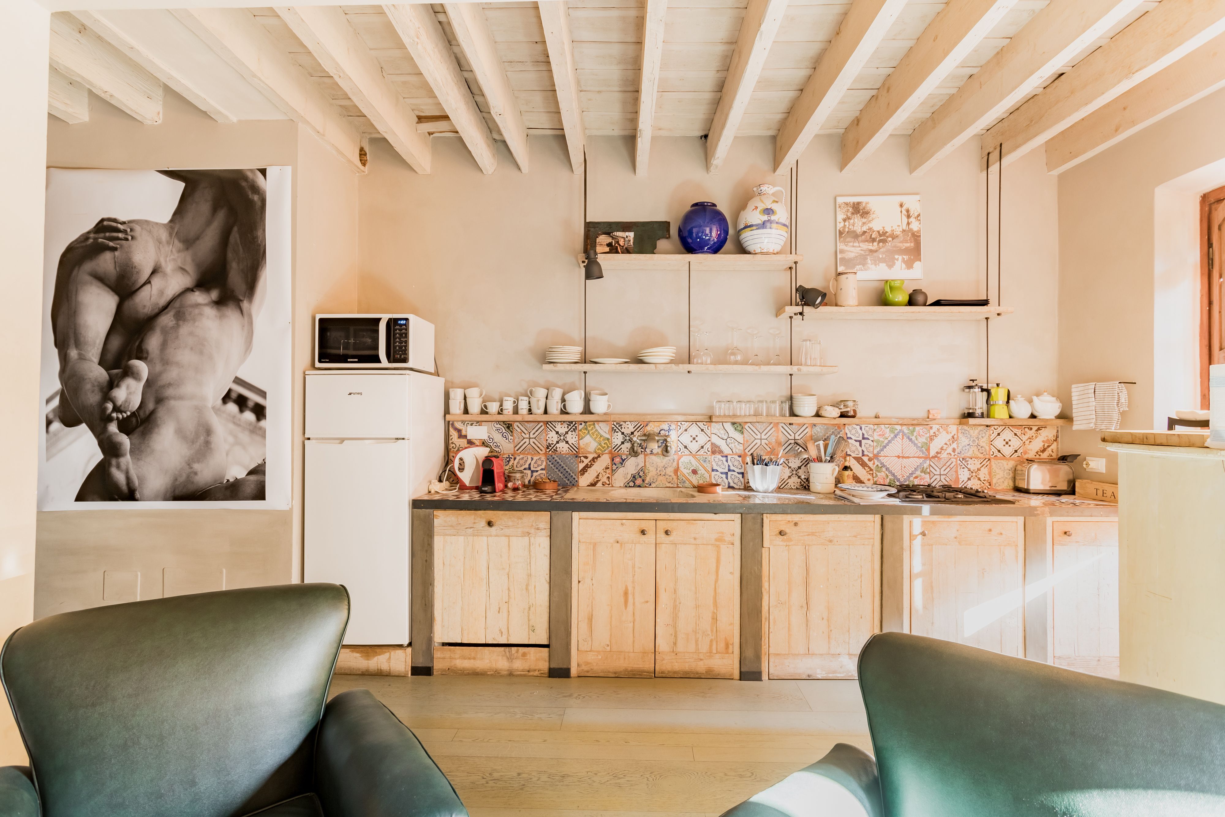 From the traditional features and antique furnishings to the art and books, this is the kind of space that uplifts and inspires. With a bright living area and kitchen alongside two bedrooms and bathrooms, there’s ample space to socialise, relax and share quality time together. And whether you’re enjoying a quiet morning coffee by the open window, sipping golden-hour drinks on the little balcony or dining around the rustic table, it’s easy to savour the magic of Italian living.