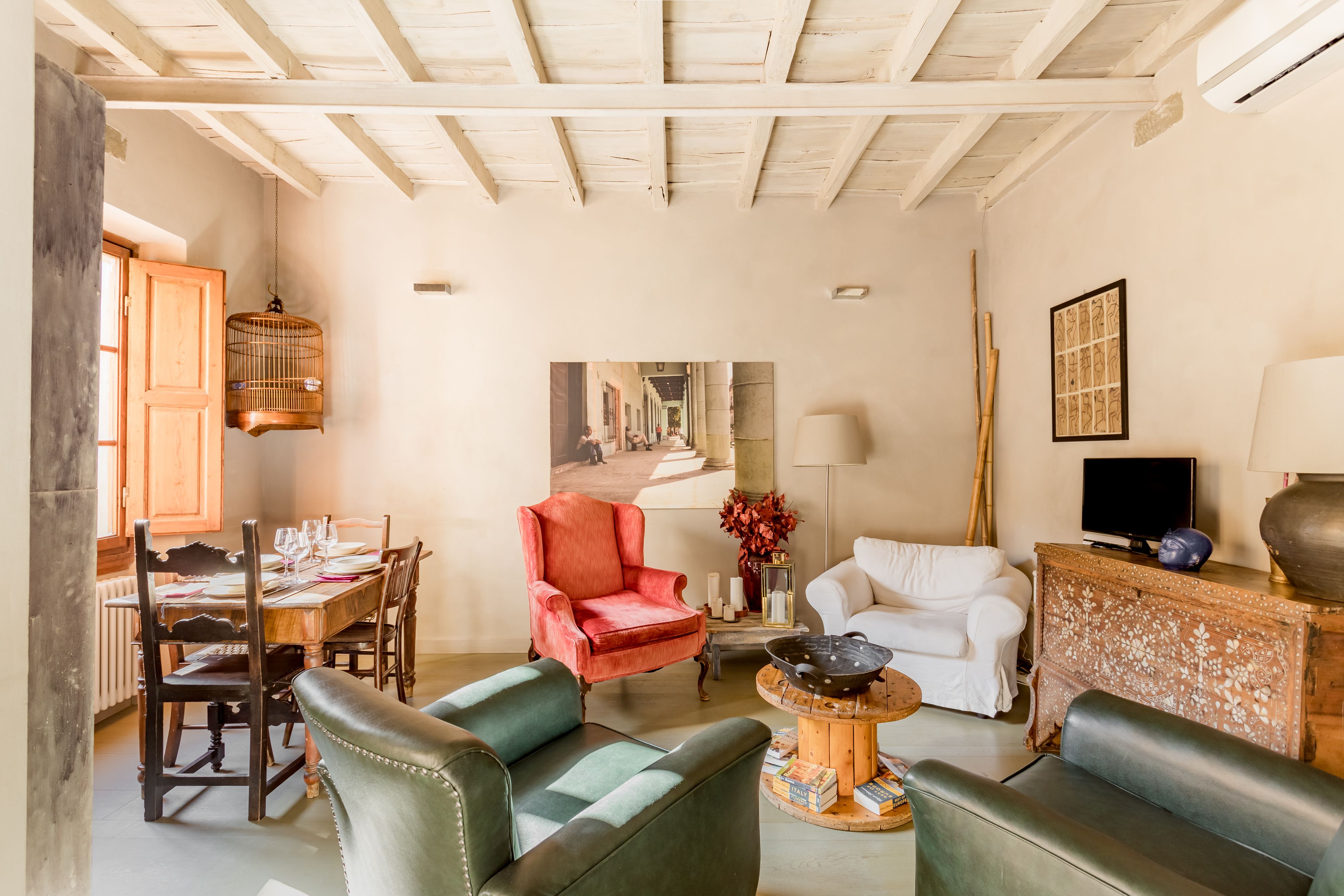 Sitting in a palazzo (dating back to 1200), this unique apartment has been thoughtfully restored into a stylish sanctuary – a serene space filled with the artistic charm of the city.