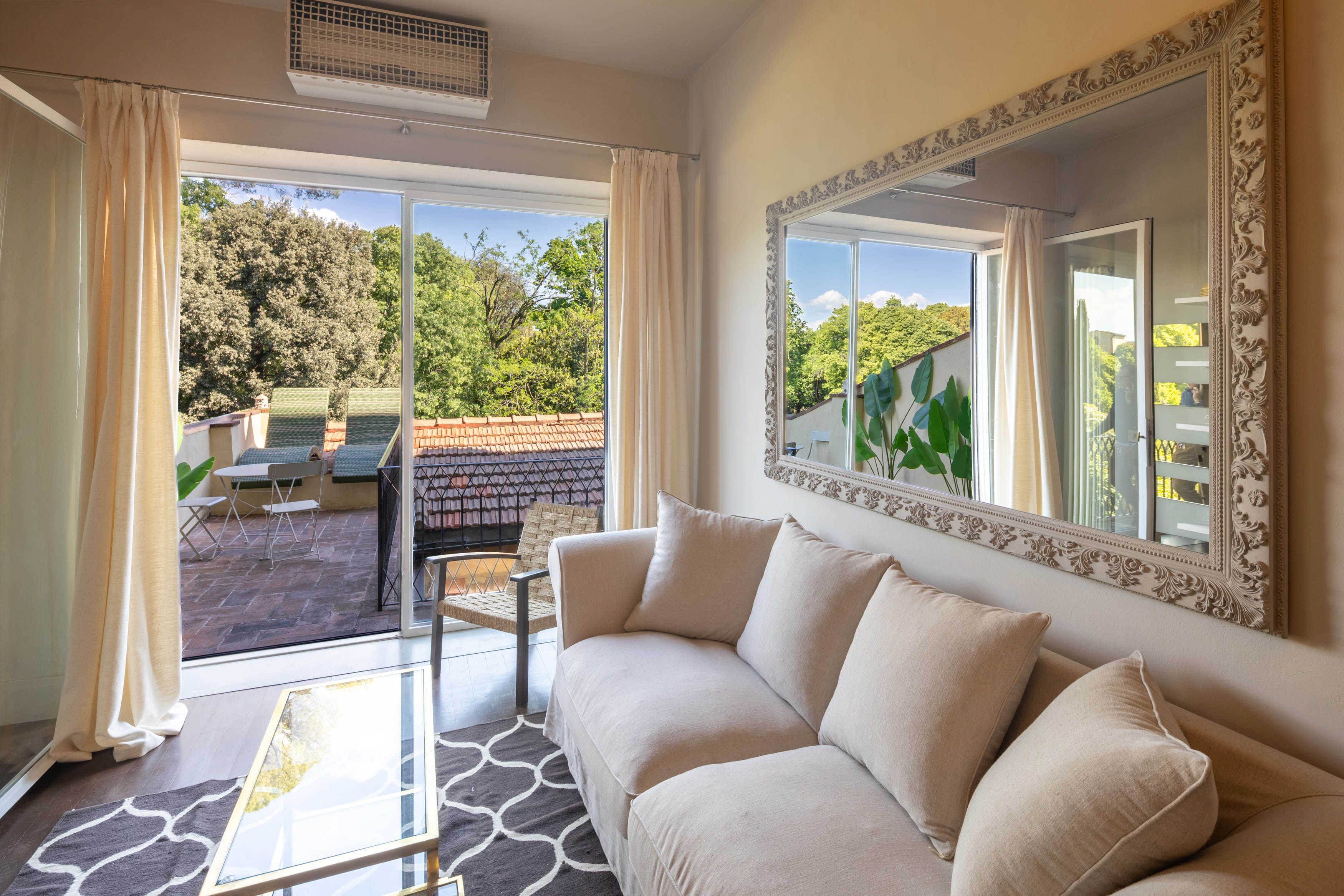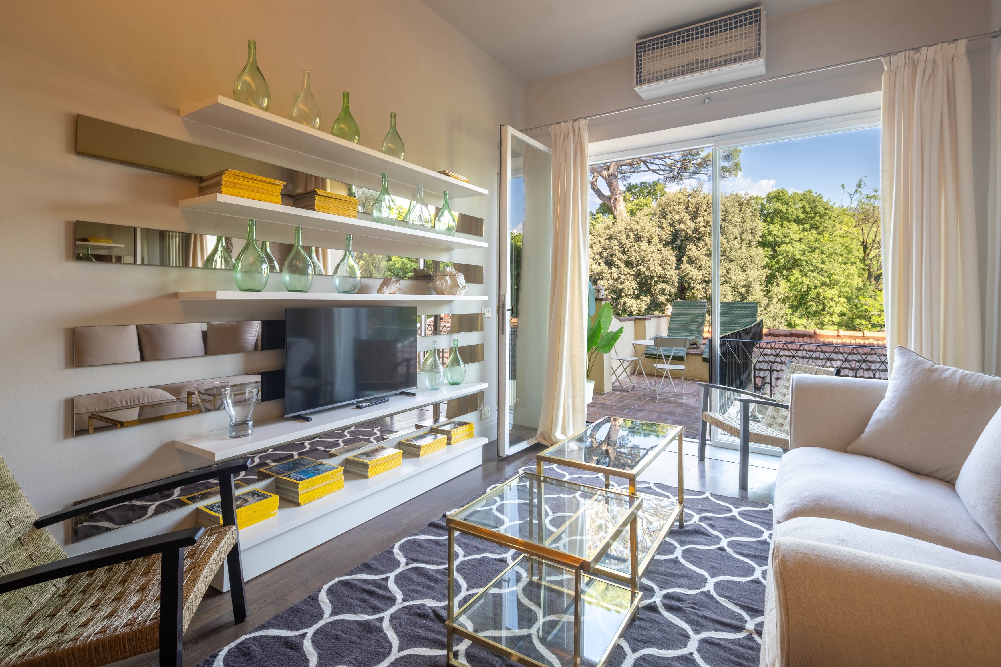 Location is the name of the game at this one-bed in Florence. It's near Piazza Santissima Annunziata, away from the tourist throngs, but close enough to the action that you can do a lot on foot. The area is also a hive of activity with artisan shops and studios dotted around the streets, as well as cafes, bars and restaurants aplenty. And, with a large, private terrace at your disposal, you can cap the day off with a cocktail or meal alfresco, with views over the landscaped gardens below.