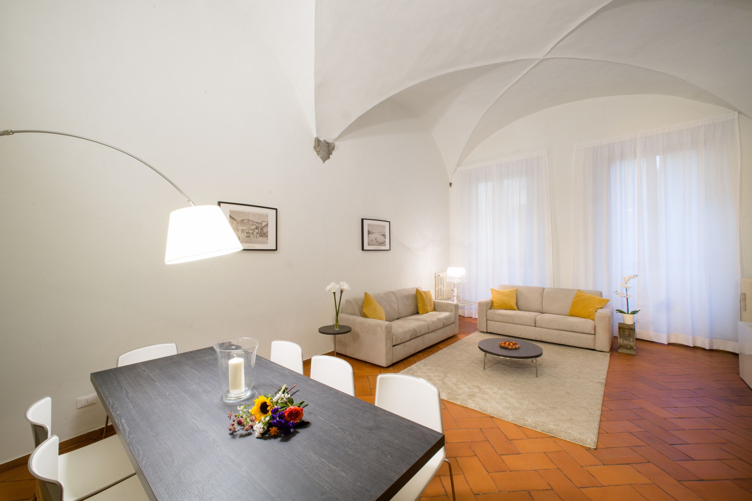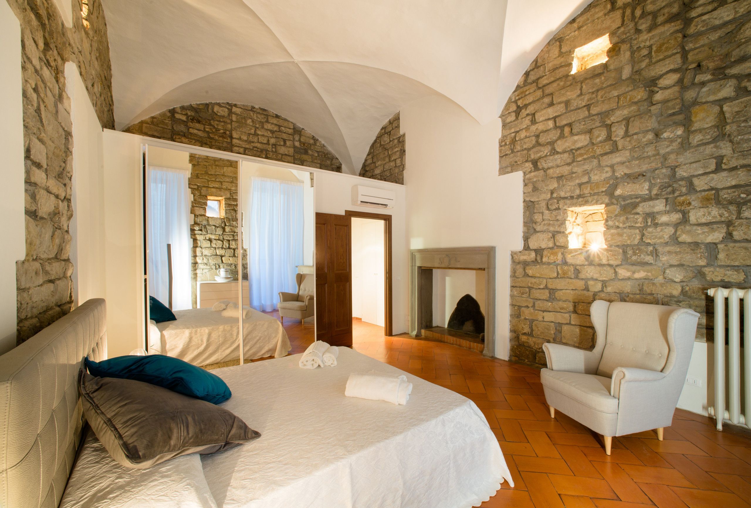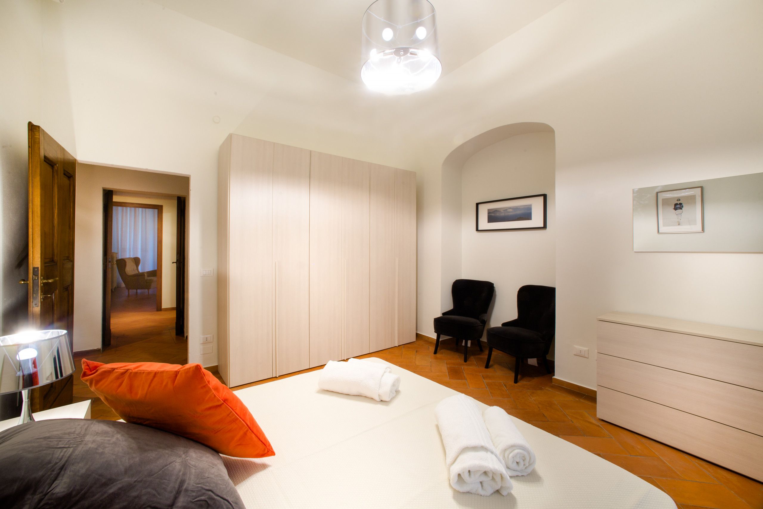 You couldn’t dream up a better location for this central Florence apartment. All the must-sees, including Ponte Vecchio, Piazza della Signoria, and the Duomo, are footsteps away. The iconic river is also around the corner to join the locals in their favourite evening pastime – passeggiatas. Set in a historic Florentine villa of grand proportions, while the arched ceilings remain, everything else has been brought bang up to date. Both bedrooms have private bathrooms, and air conditioning is throughout. One thing to point out here – if six of you stay, the last two guests will share a sofa bed in the living room. But for a home with such an unbeatable location, we think it’s worth the compromise.