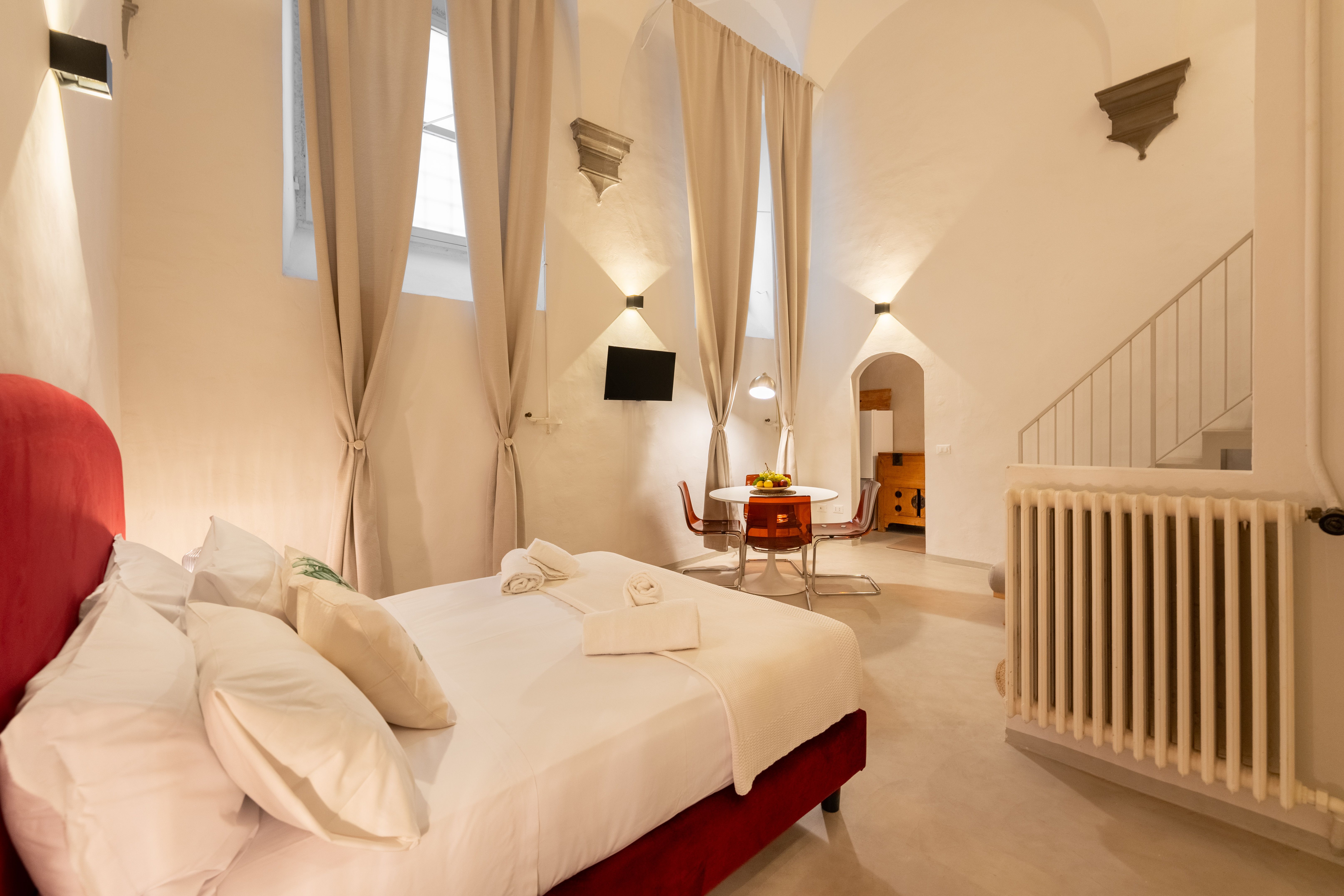 Looking for a Florence bolthole that's as unique as it is central? This Santa Croce district apartment, set in a fresco-adorned palazzo and within walking distance of all the must-see sights, is spot-on. With ceilings soaring nearly six metres high in the open-plan living and bedroom space, and a mezzanine level providing access to an additional single bedroom and bathroom, the layout is a tad quirky. But we think this only adds to the charm. It’s worth noting that the kitchen is on the small side and better suited to lighter meals and breakfast. But with so many traditional Florentine restaurants just around the corner in the Santa Croce Piazza, we suspect you’ll be eating out alot.