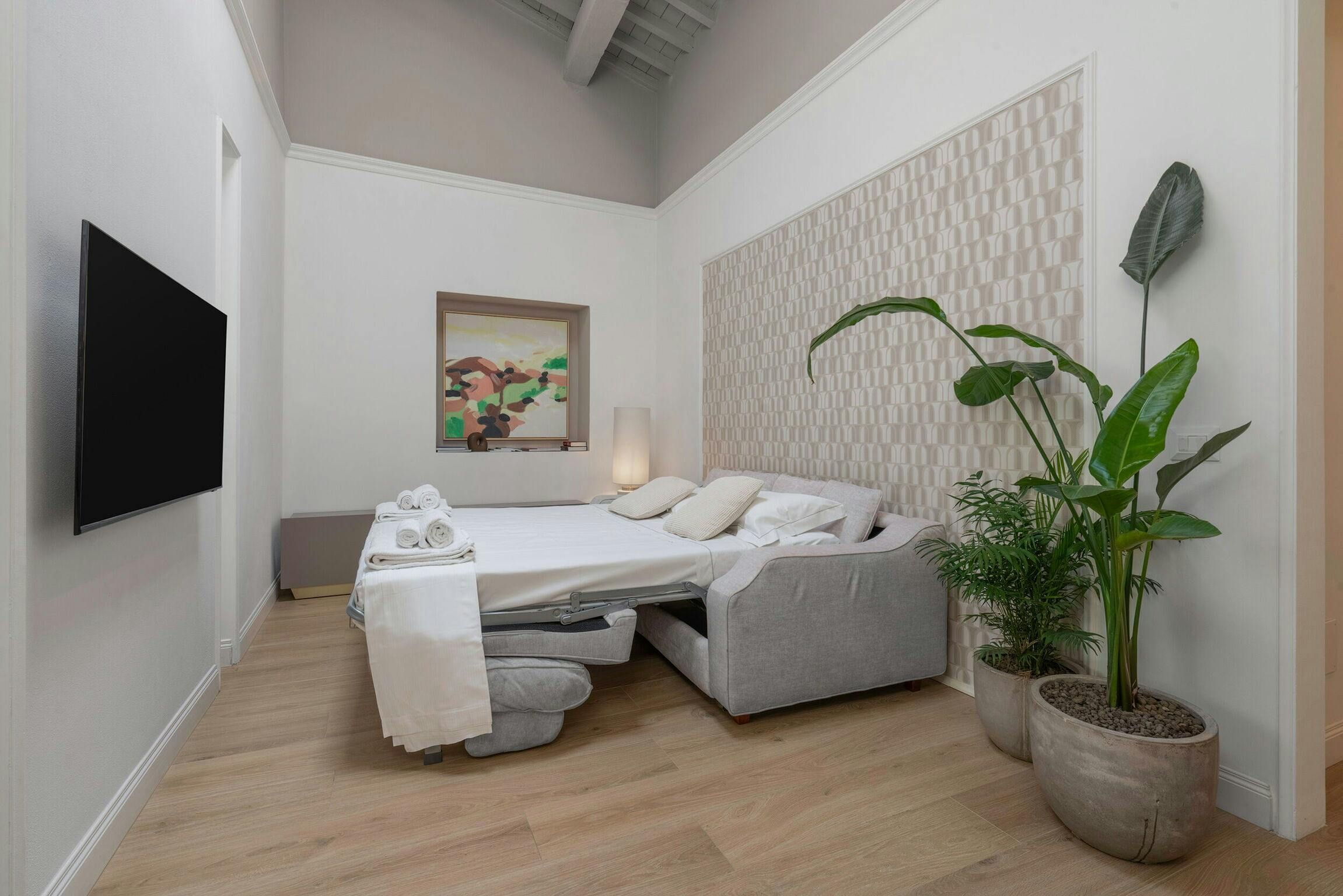 Searching for a Florentine hideaway? This apartment near the Duomo is just what you need. We love how the recent makeover has preserved the building’s timeless charm (hello vaulted ceilings) while adding all the essentials for a seamless stay. And the location? Unbeatable. Step outside and you’re just moments from Florence’s iconic cathedral, buzzing piazzas, and artisan boutiques. Whether you’re here for art, food, or romance, this retreat makes an ideal base for soaking up the beauty of Florence.