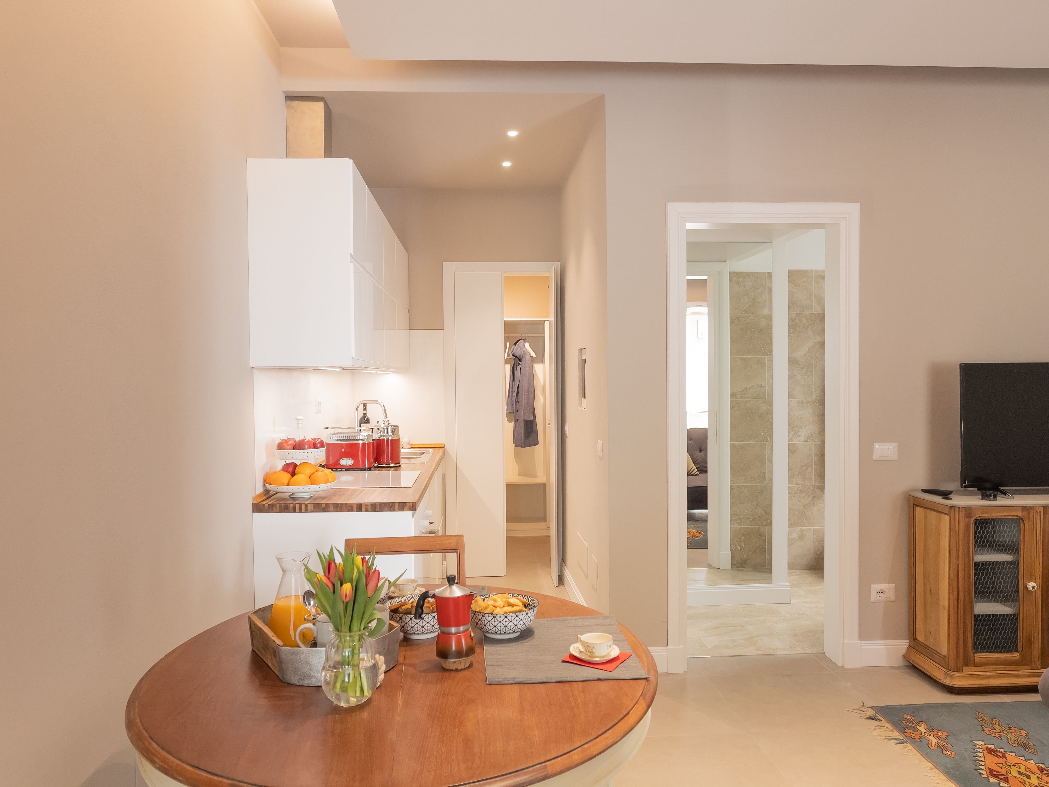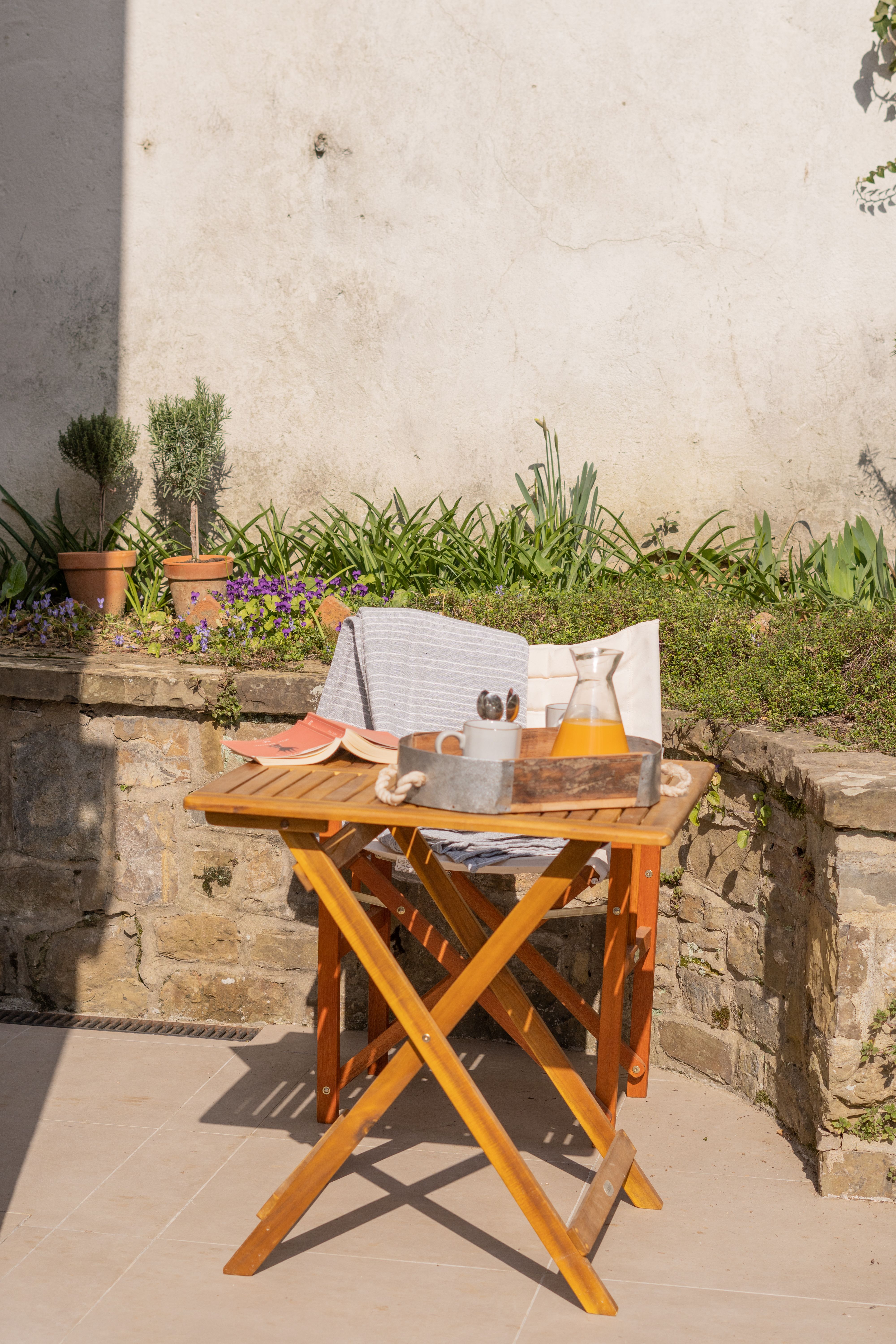 This Florentine apartment offers the perfect blend of privacy and comfort. It’s located in a quiet residential neighbourhood just two minutes from Porta Romana and a short walk from the beautiful Boboli Gardens. You can walk into the centre of Florence in twenty-five minutes. There’s a petite kitchen to cook in – though we recommend discovering the city’s excellent food scene – and a garden where you can unwind between sightseeing, provided you’re happy to share the space with the homeowner’s dog.