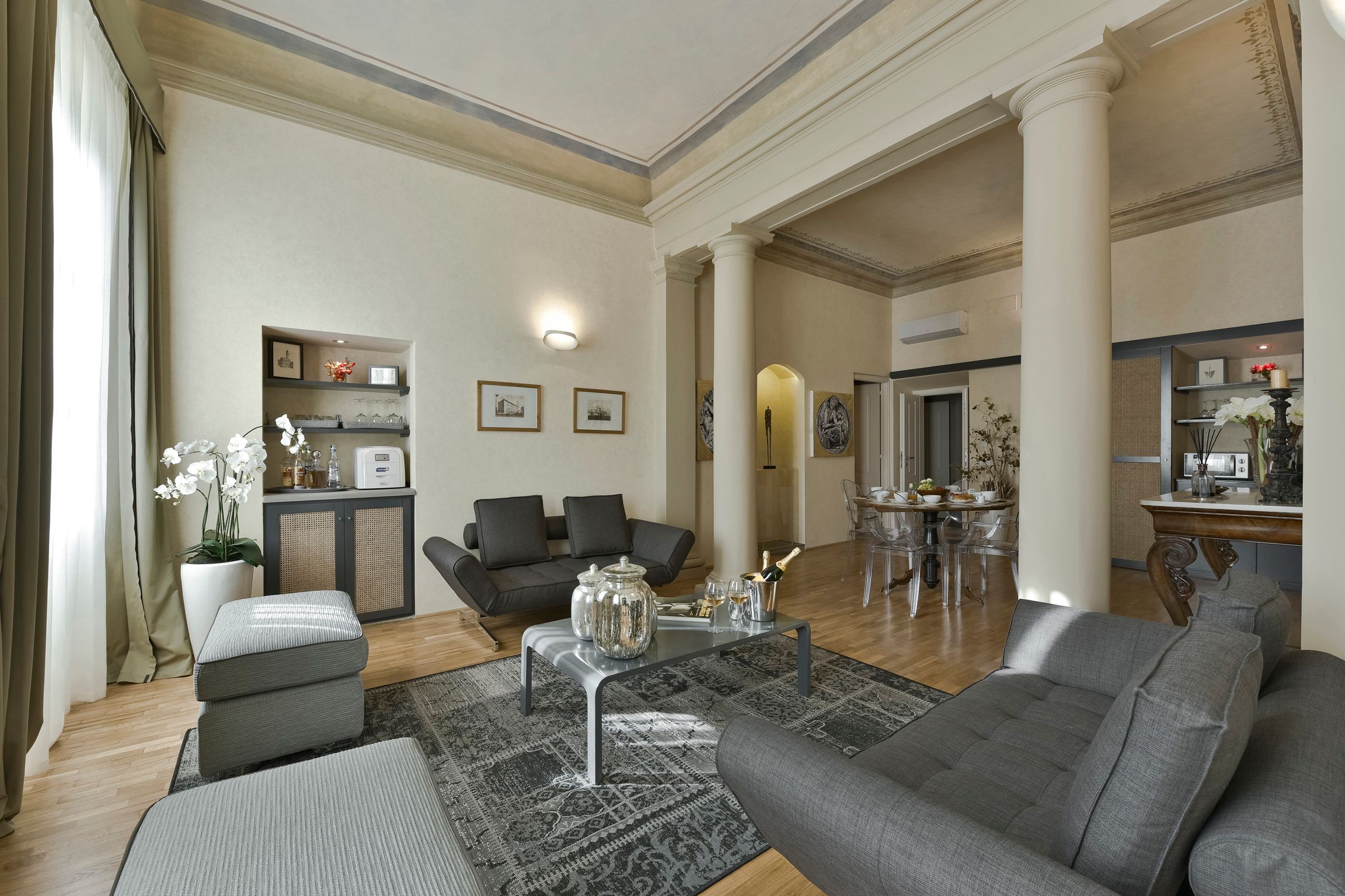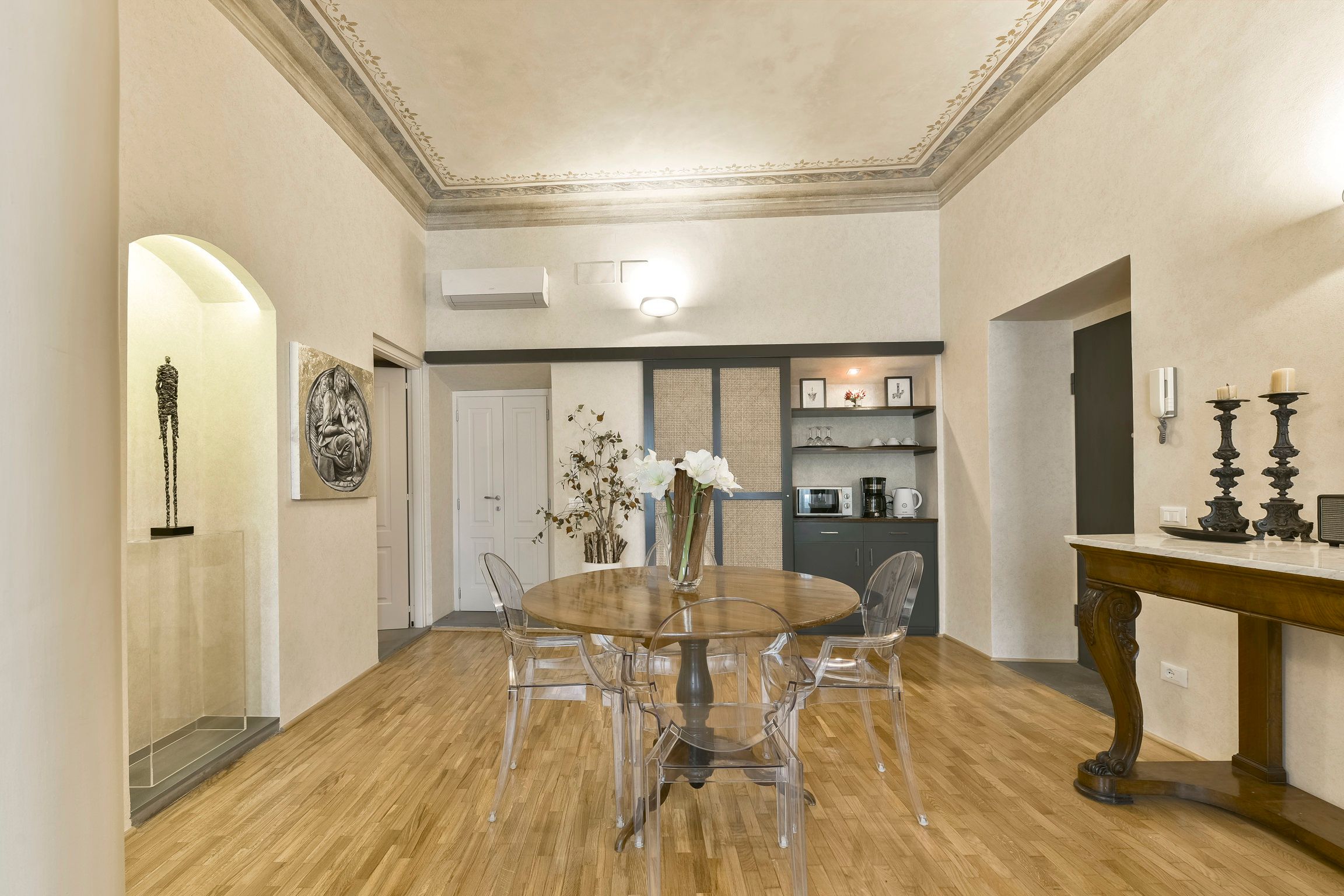 Tradition and comfort go hand in hand in this Oltrarno apartment. Tucked within a Renaissance building, just moments from Ponte Vecchio, this is a great option for those seeking ease in a vibrant location. You’ll be spoiled for choice when it comes to restaurants, bars and shops. Plus, there are a range of extra services available – including private chefs and organised excursions. Housekeeping is included in your stay and your host provides complimentary wine and a welcome pack with basic essentials to get your started. At full occupancy four guests will be sleeping on sofa beds, but there’s plenty of room to relax, unwind and socialise. The infrared sauna is a nice touch too.