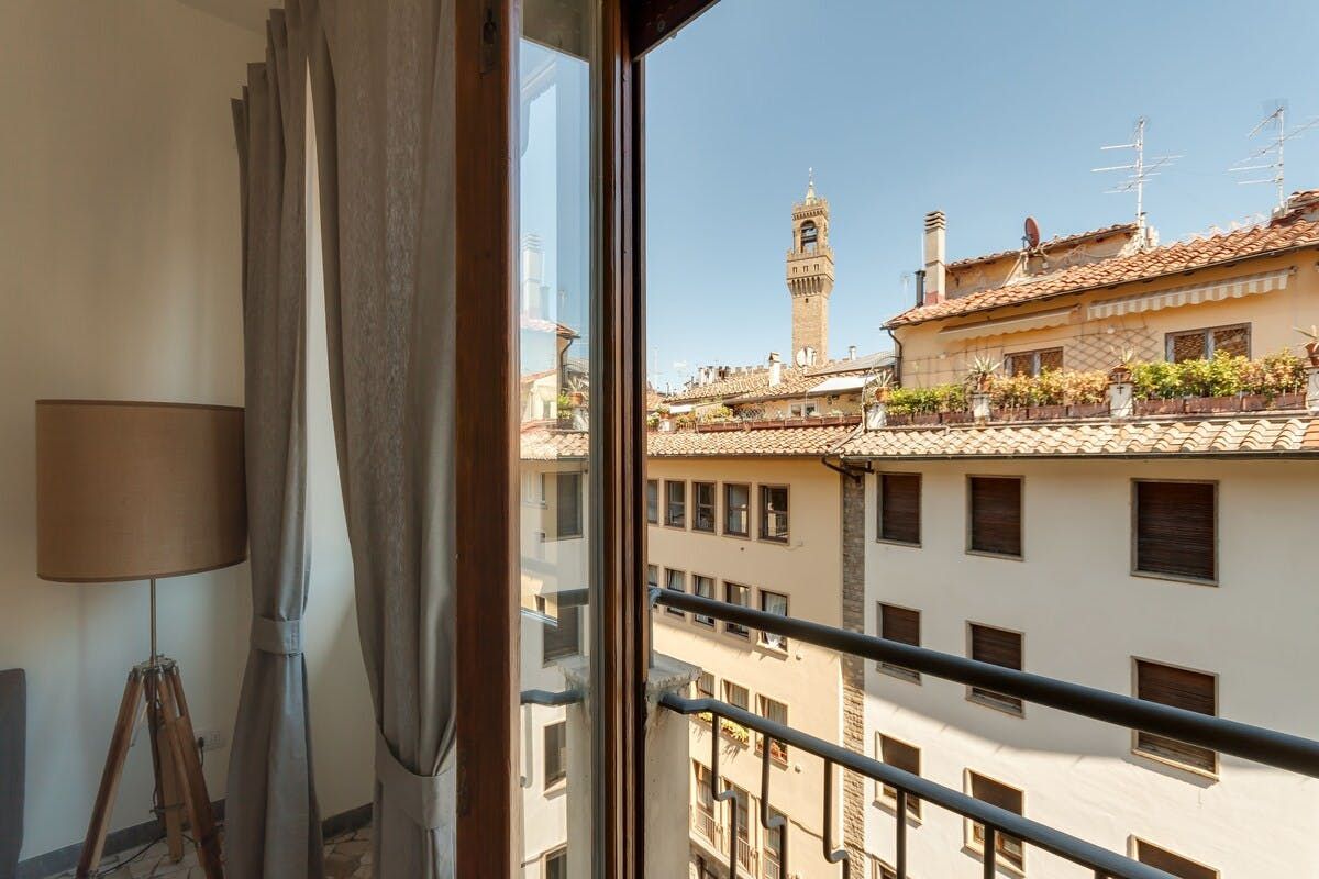This apartment caught our eye with its central location and private roof terrace – a rare treat in the heart of Florence. It’s also family-friendly with plenty of socialising space across the open plan living and dining room. With three comfortable bedrooms, this is a sweet option for groups in search of practicality and ease in a great setting. From here, it’s just a two-minute stroll to Ponte Vecchio and the Uffizi Gallery. Plus, you’ll be spoiled for choice when it comes to restaurants, bars and shops.