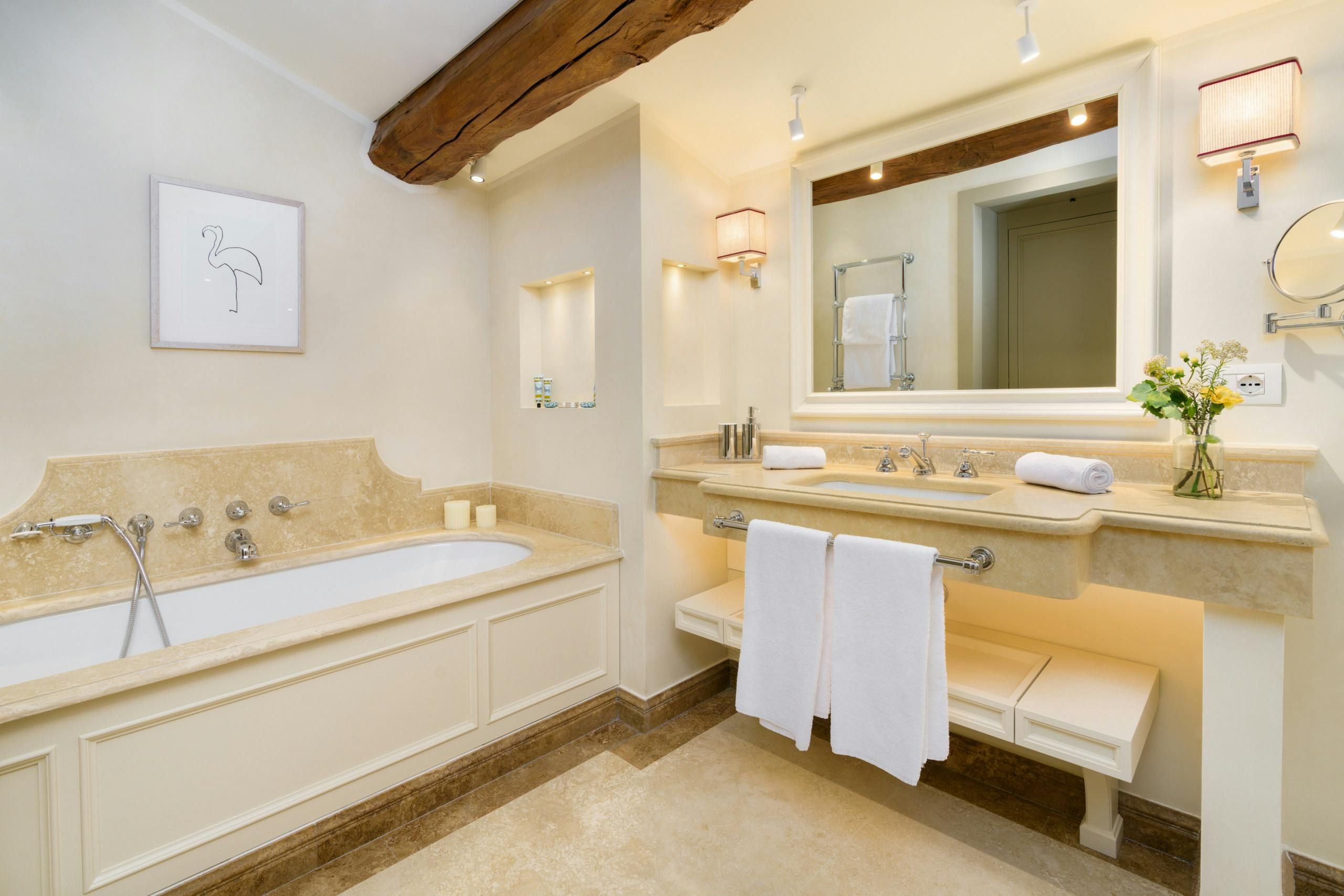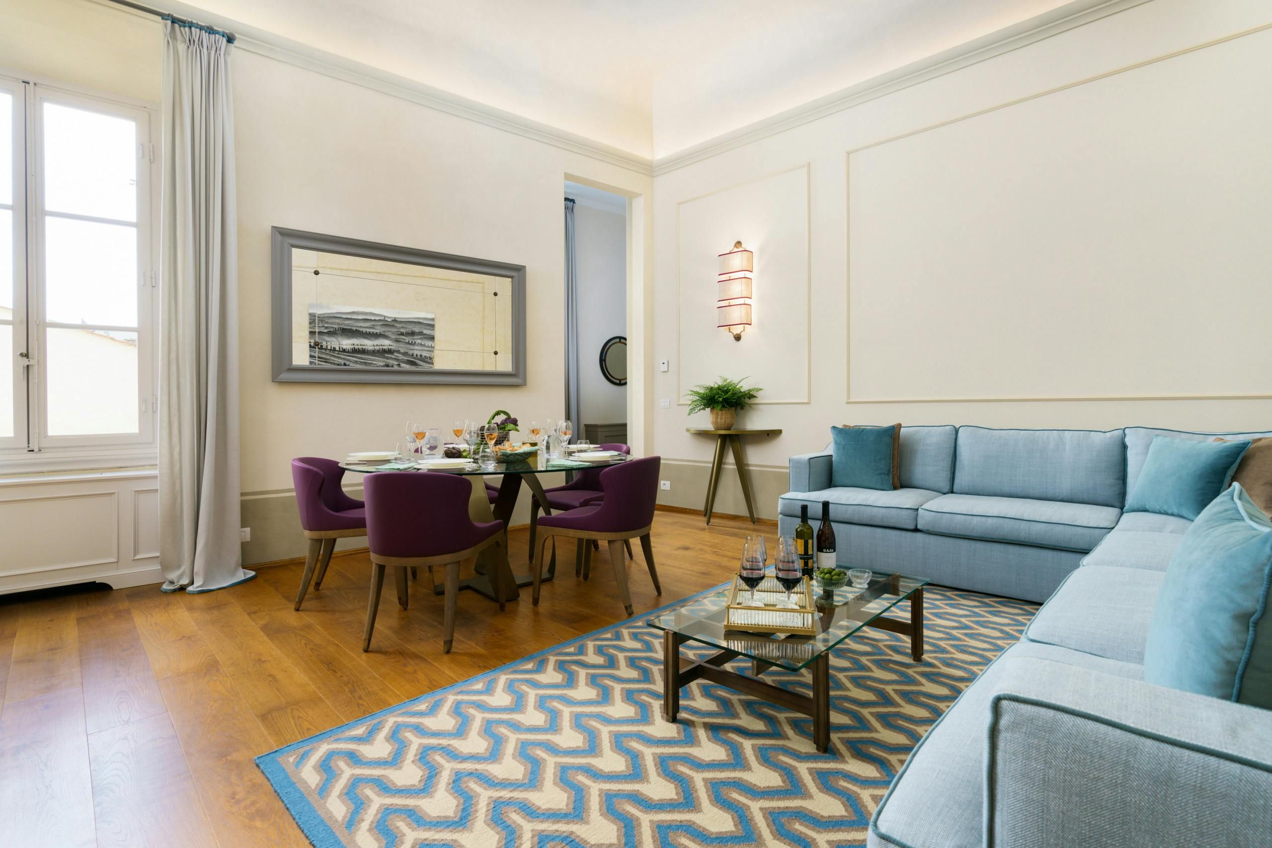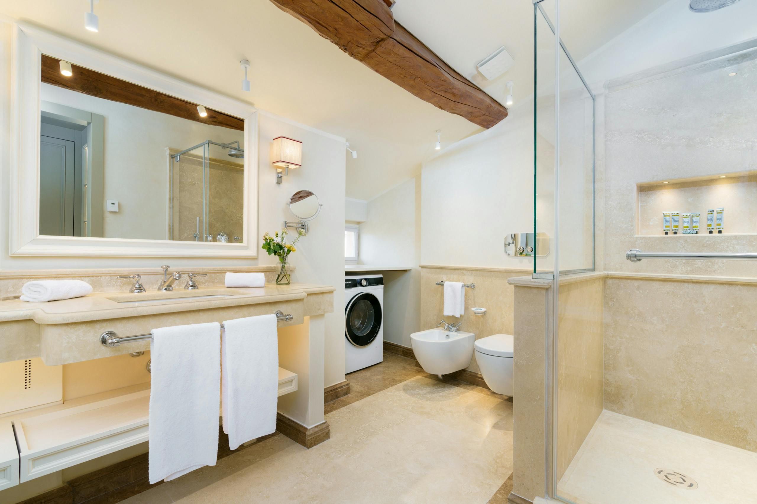 History lovers should consider this elegant apartment, set in a 19th-century palazzo. The Santa Croce district puts famous landmarks like the Uffizi Gallery just a stone's throw away, as well as a variety of places to eat and drink. Though the lift doesn't quite reach the fourth floor, this home provides a thoughtful space with a desk for business travellers, and roomy bathrooms for relaxing soaks. After a busy day of Florentine sightseeing, the terrace is a lovely spot to retreat to.