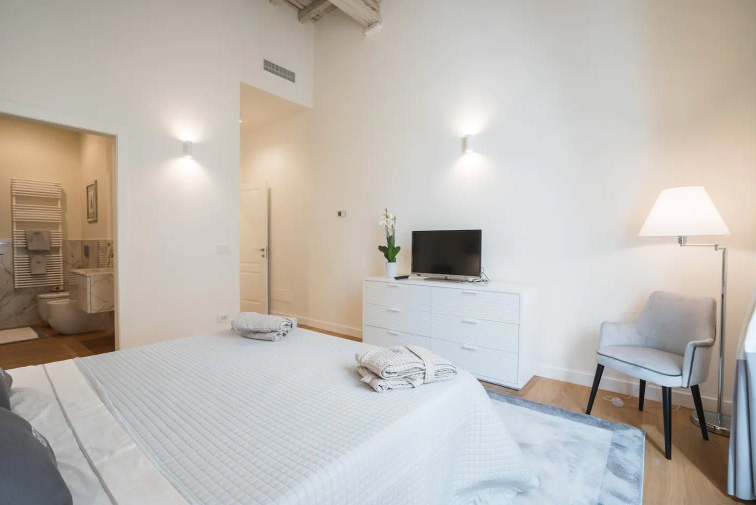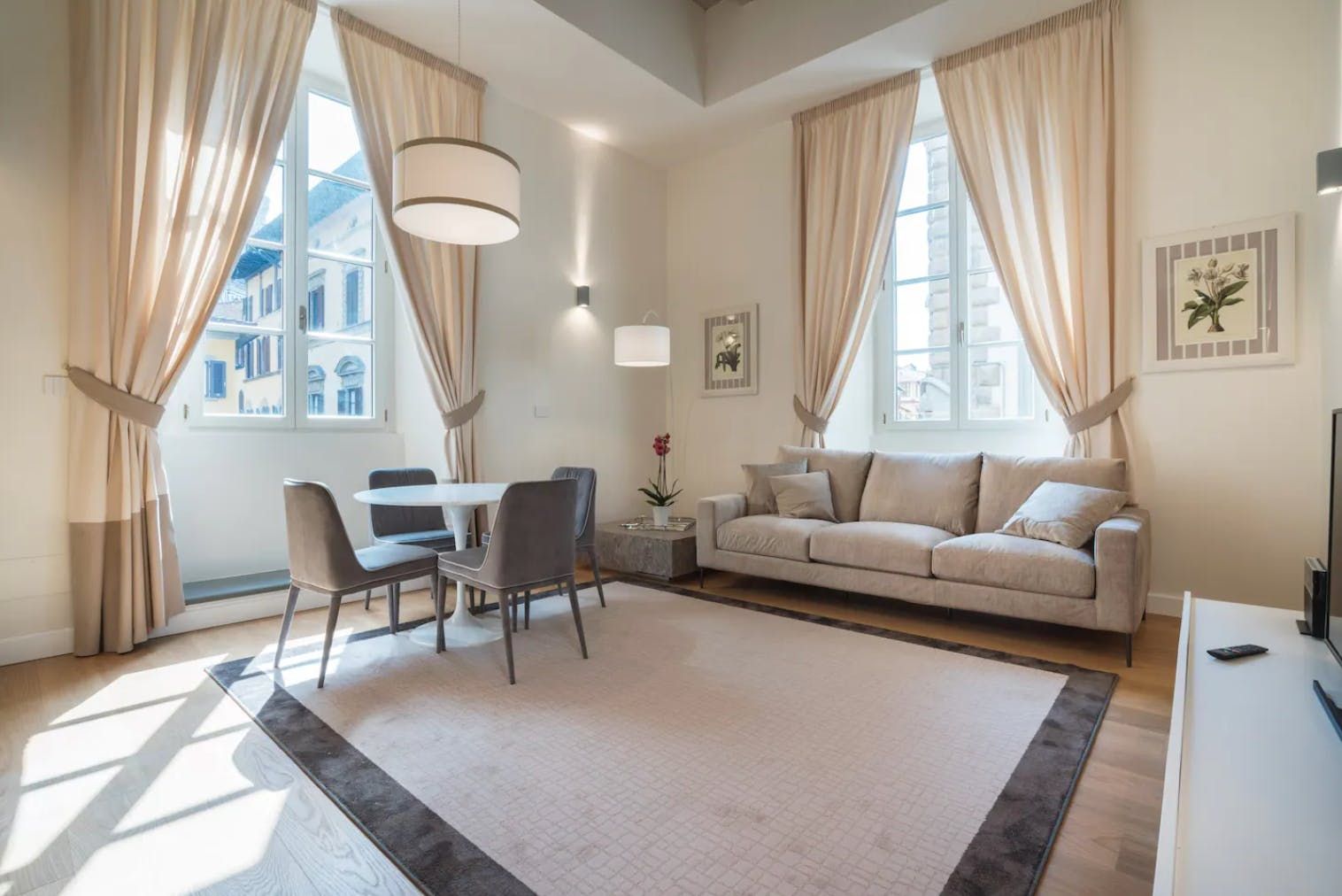 Gaze out at the iconic domed cathedral from the comfort of this spectacular city-centre apartment. Set within an eye-catching period building, complete with imposing wooden double doors, along the rather lovely Via dei Servi, which connects the Piazza del Duomo and the Piazza della Santissima Annunziata.