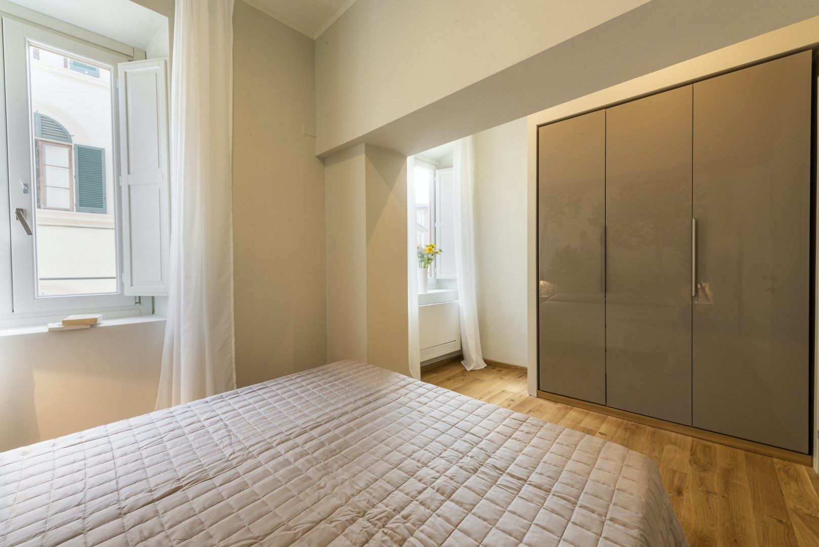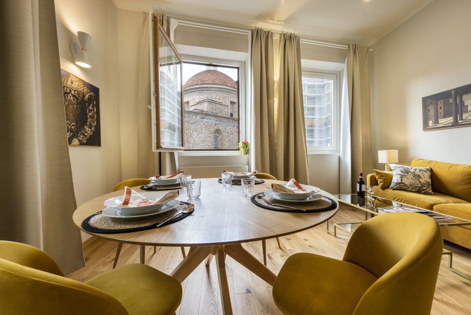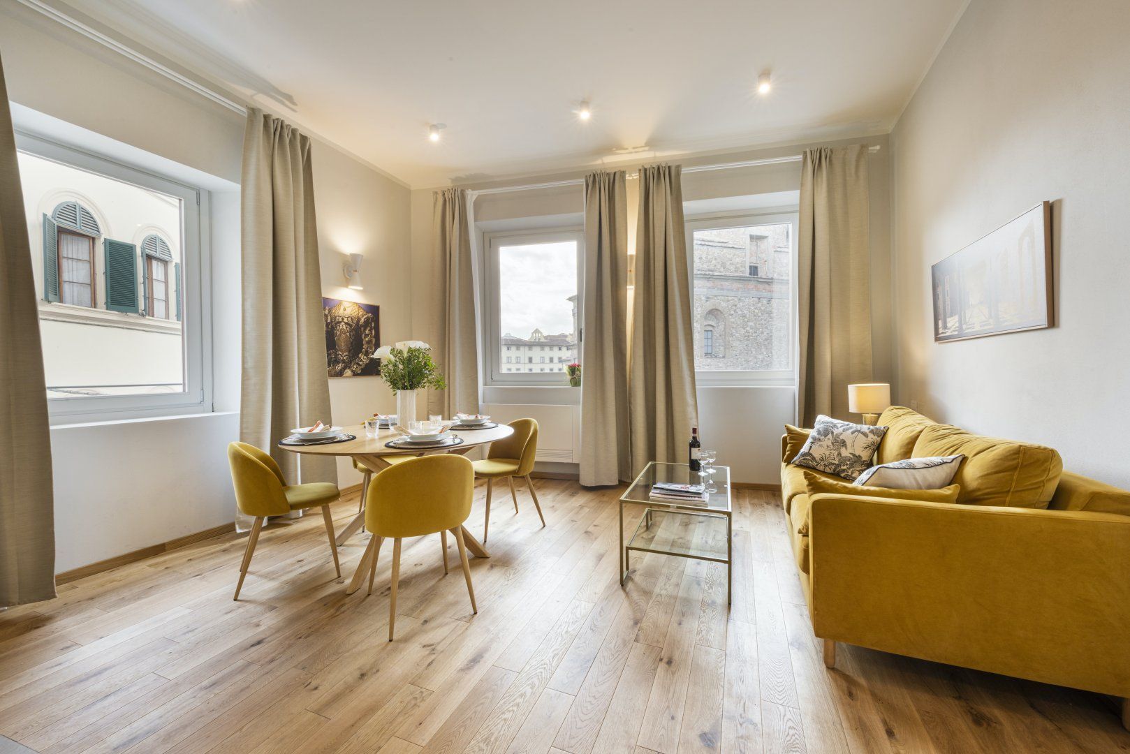 Located in the centre of Florence, one of the artistic capitals of the world, this bright and modern design places you within minutes of famous sites like the Duomo, Accademia Gallery, and Medici Palace. The combined living and dining room features a kitchenette and ample windows, allowing you to enjoy a home-cooked meal while taking in views of the Medici Chapels. Though the décor is quite minimalist, we believe this centrally located apartment makes the perfect base for a couple looking to make the most of the city’s museums, restaurants, and bars.