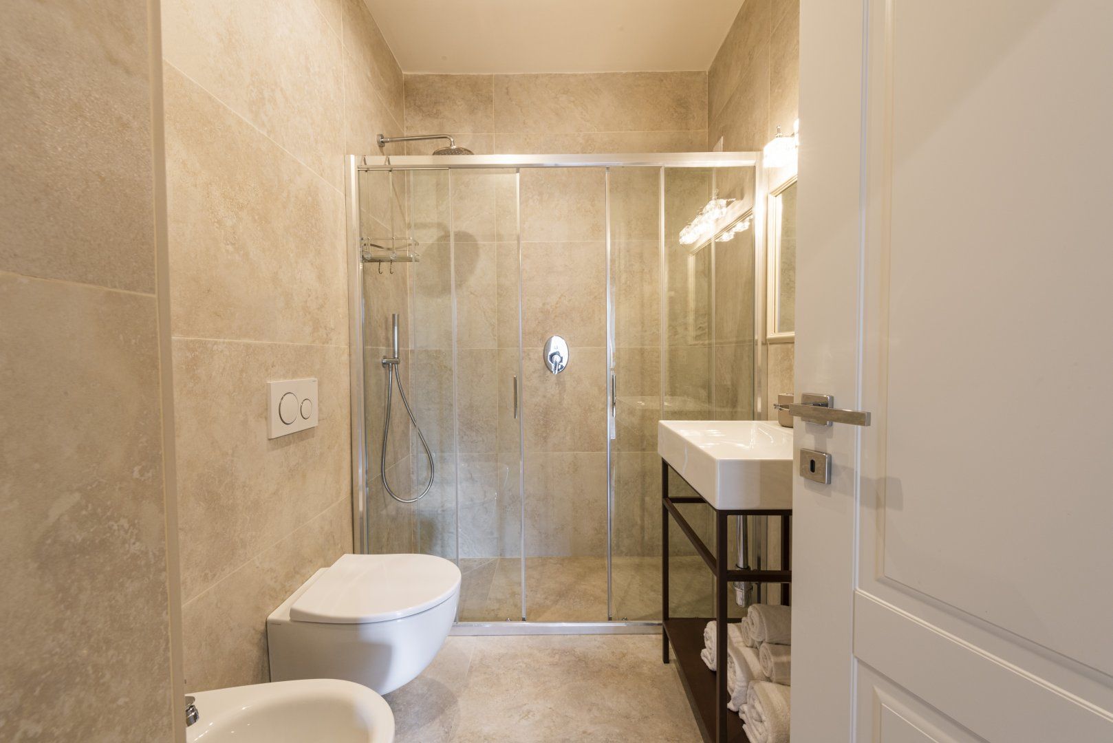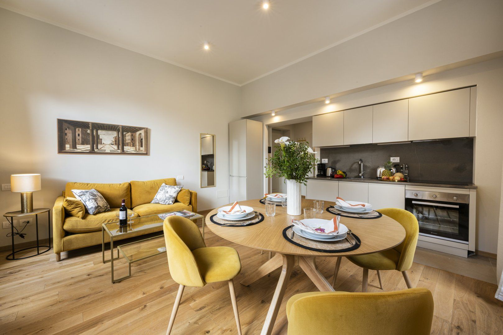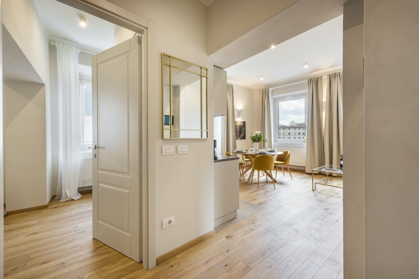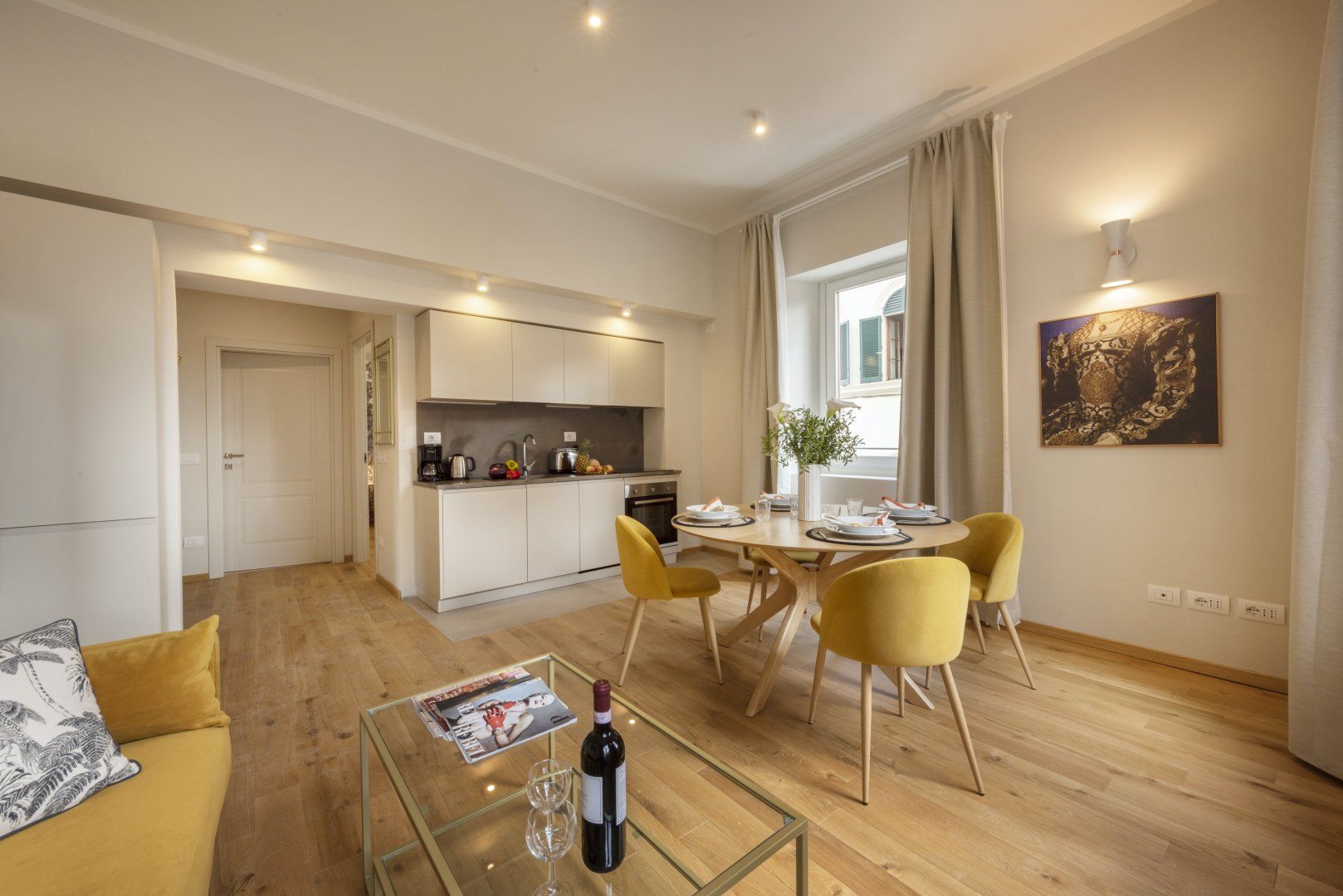 Located in the centre of Florence, one of the artistic capitals of the world, this bright and modern design places you within minutes of famous sites like the Duomo, Accademia Gallery, and Medici Palace. The combined living and dining room features a kitchenette and ample windows, allowing you to enjoy a home-cooked meal while taking in views of the Medici Chapels. Though the décor is quite minimalist, we believe this centrally located apartment makes the perfect base for a couple looking to make the most of the city’s museums, restaurants, and bars.